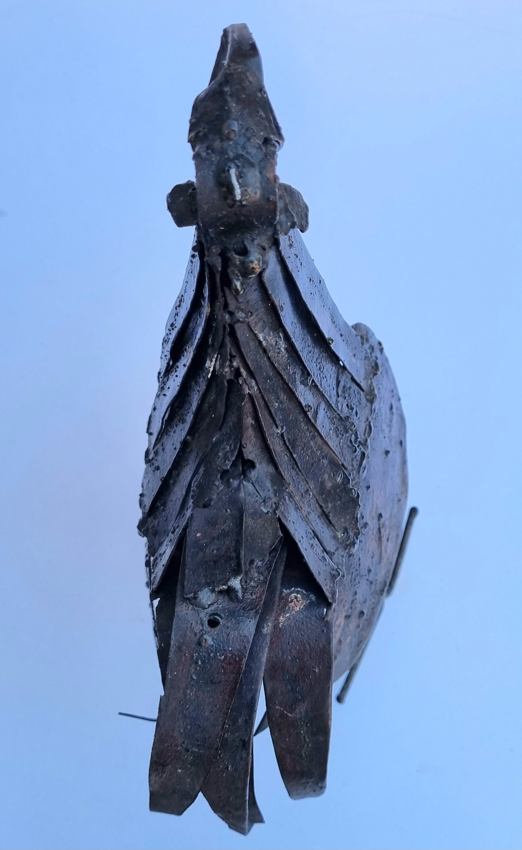 The sculptor's attention to detail and the use of metal as the primary material give this piece a rustic and authentic feel. The rooster's form is captured beautifully, making this piece a true work of art. Whether you're a collector or simply looking to add some charm to your home, this vintage sculpture is sure to impress.