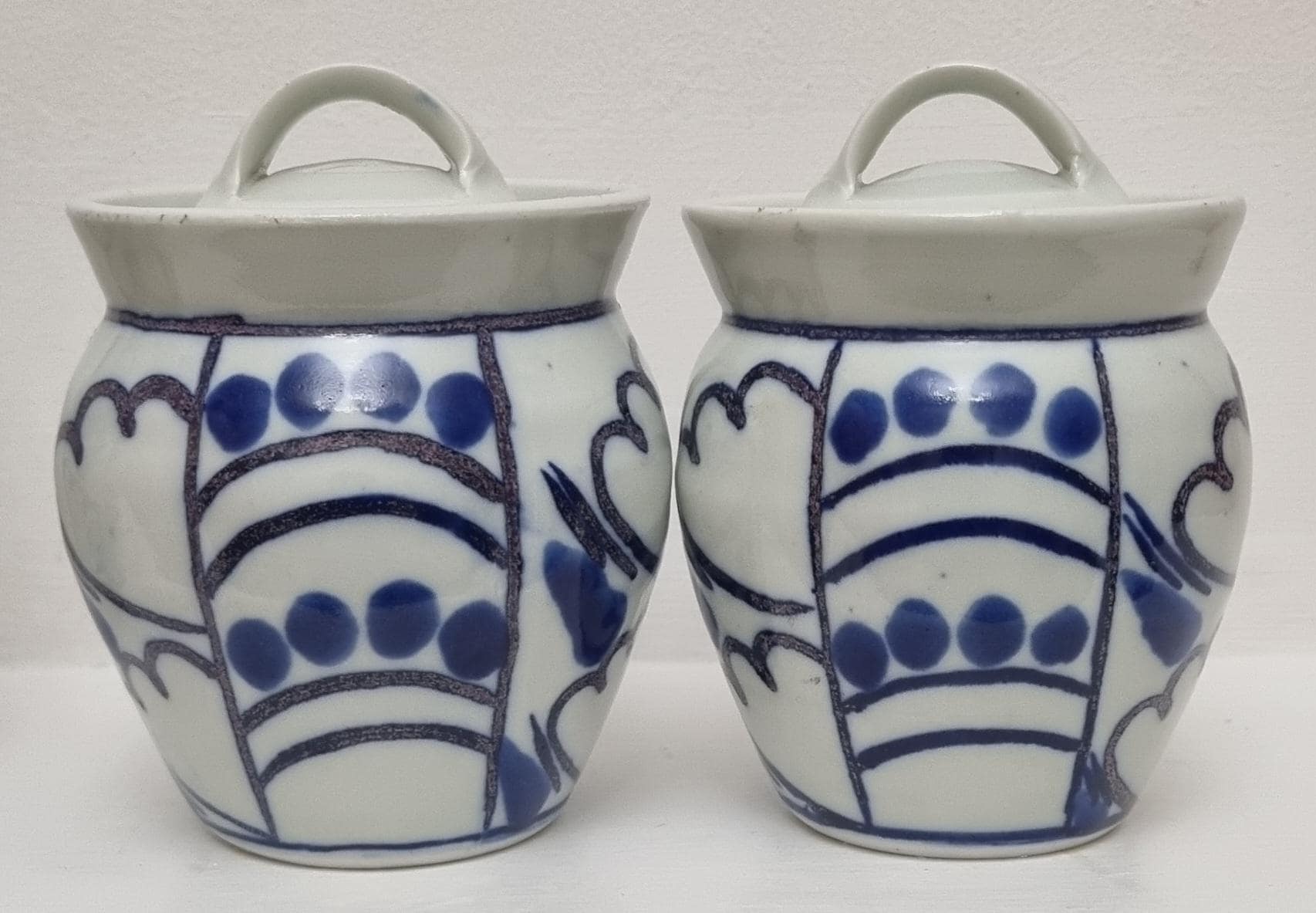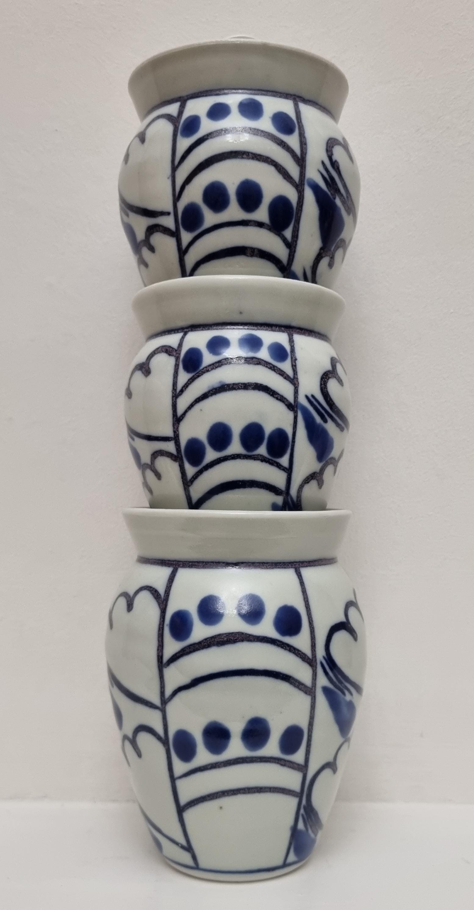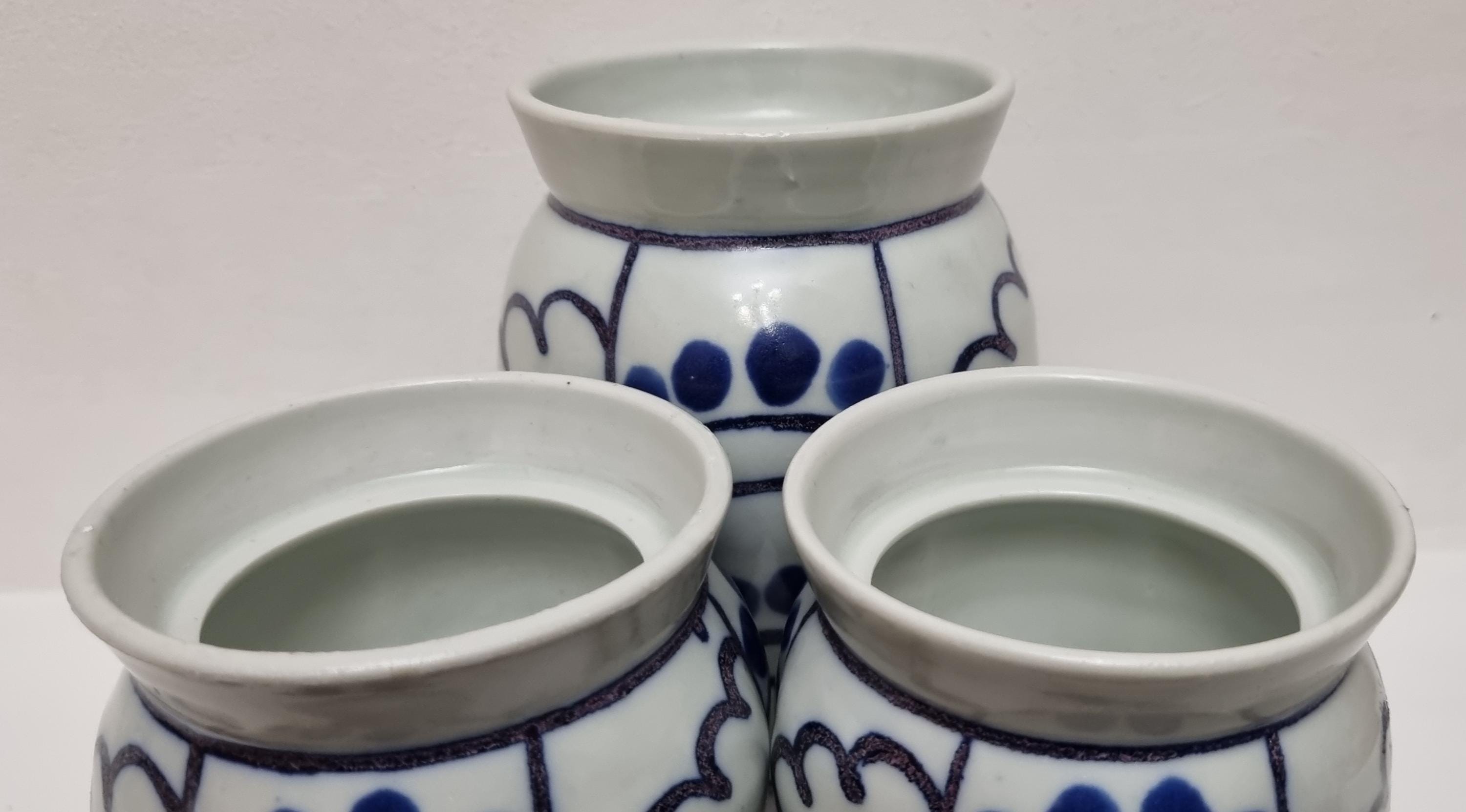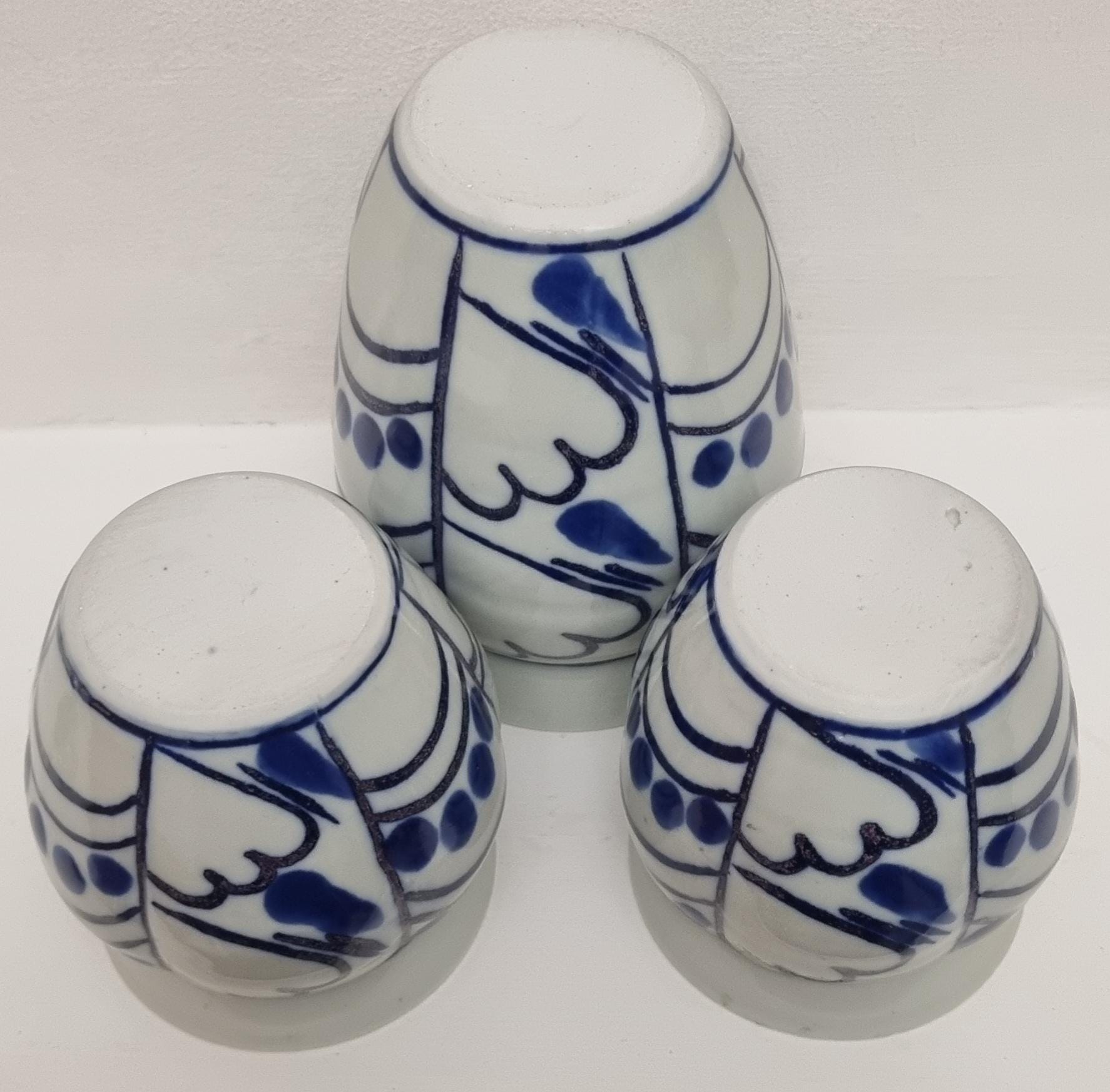 A set of 3 blue and white porcelain ginger/storage jars or can be displayed as decorative pieces.