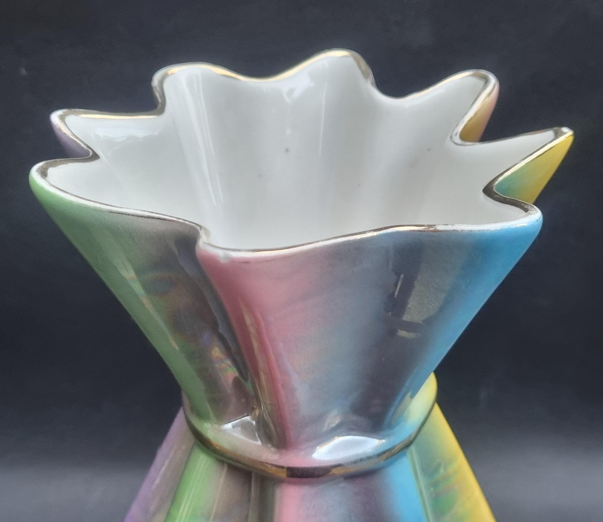 Beautiful collectible Sicas rainbow coloured lustre vase. Pre-owned and in excellent condition, without chips, nibbles or cracks.