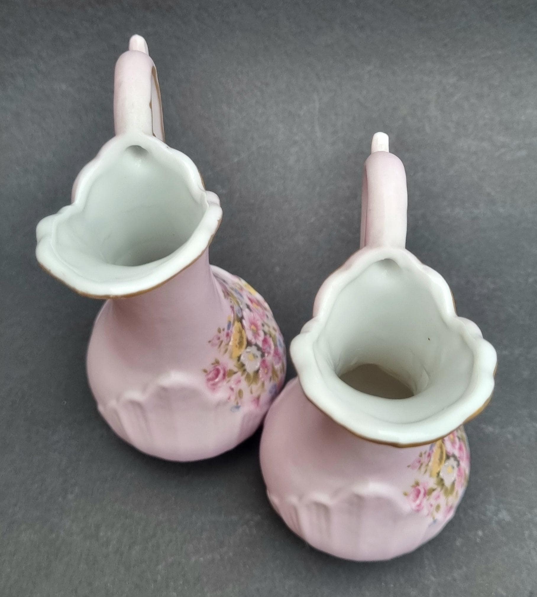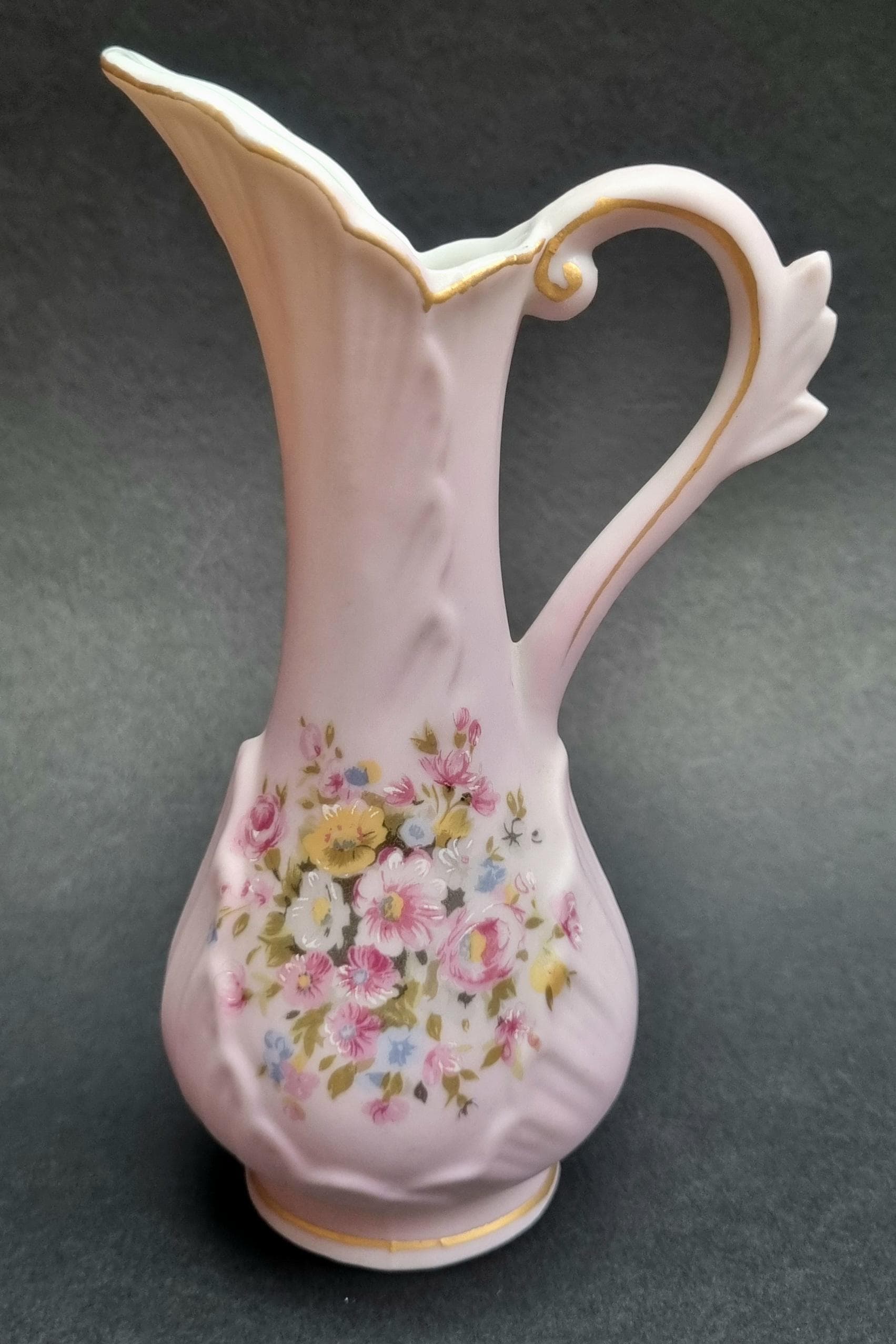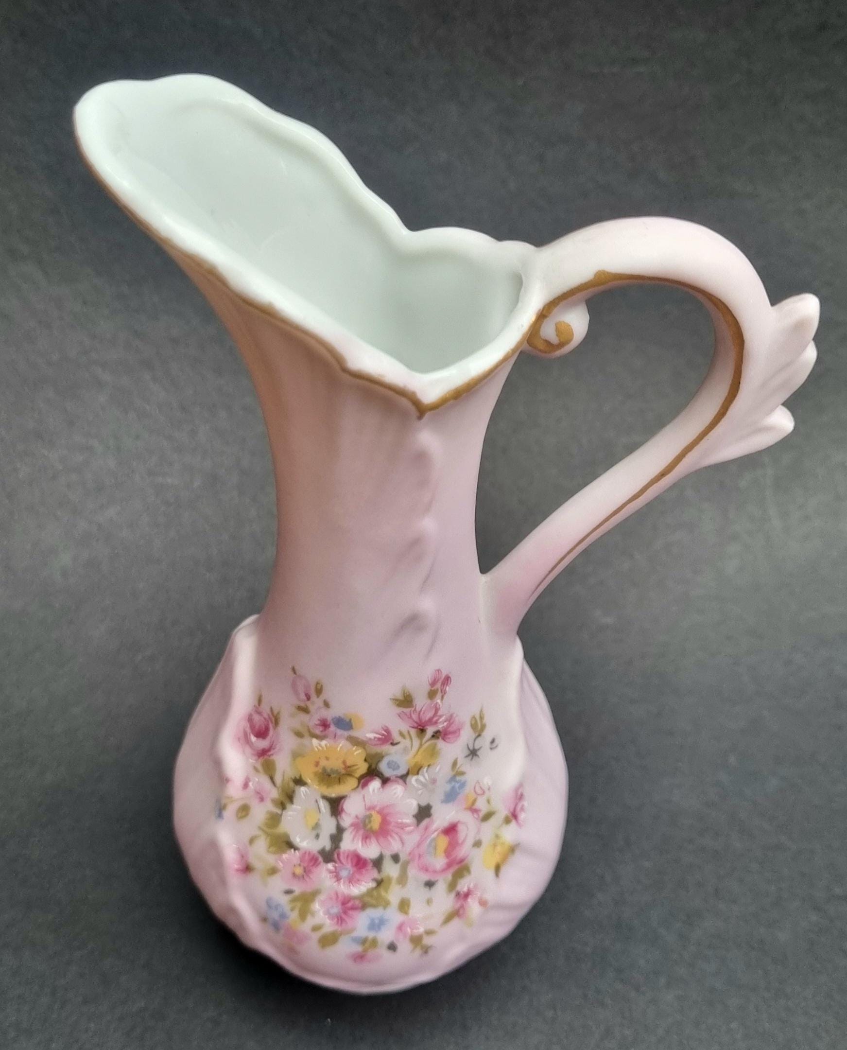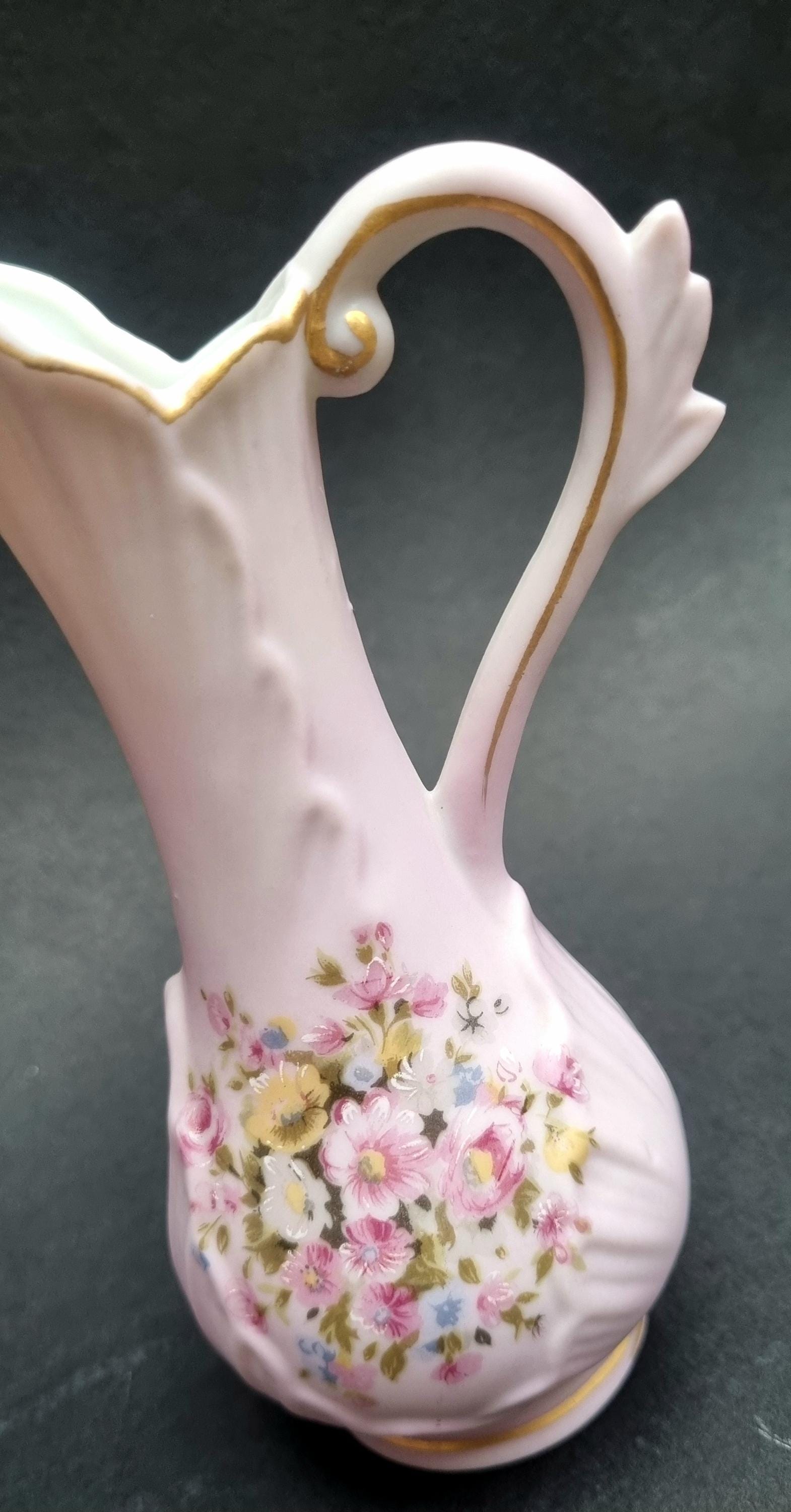 Hand-painted with a lovely floral design, with gold gilt. Can also be used as a bud vase.