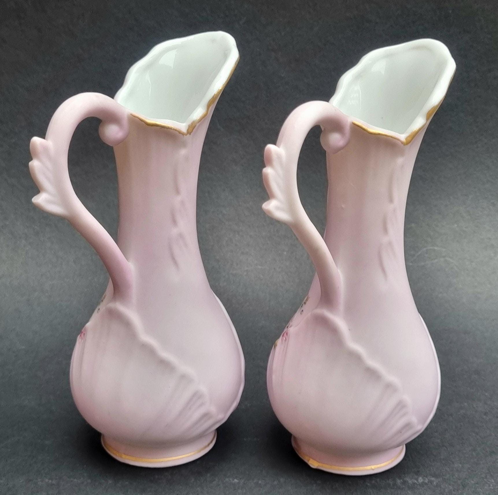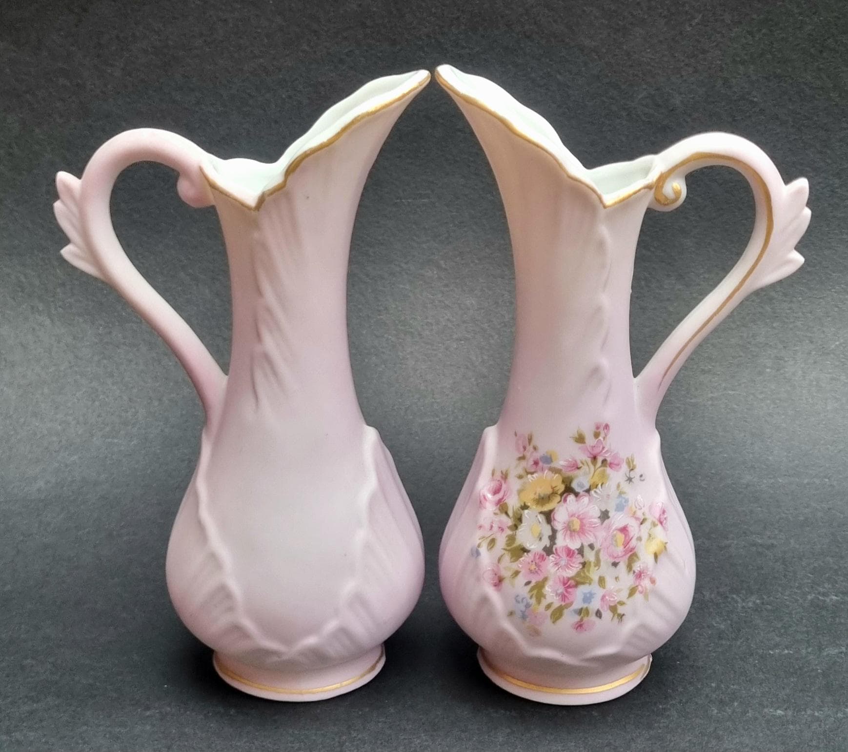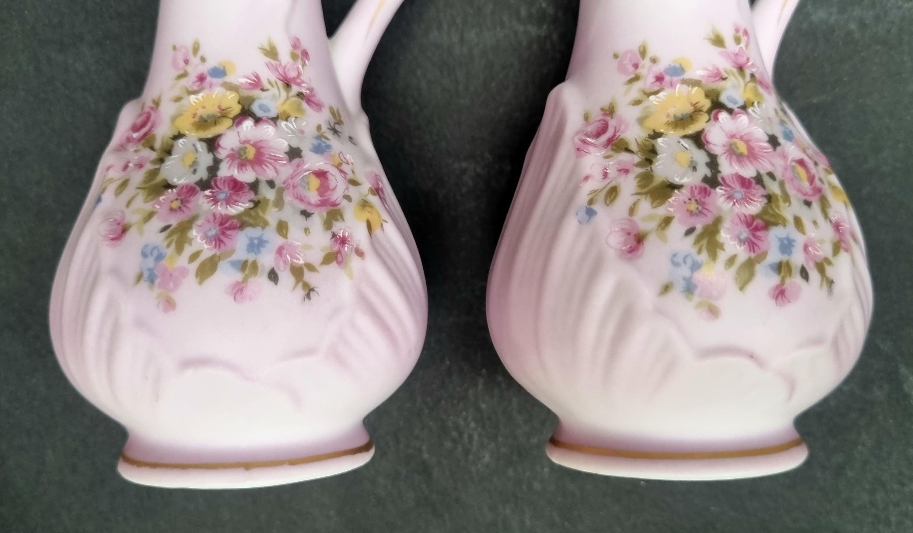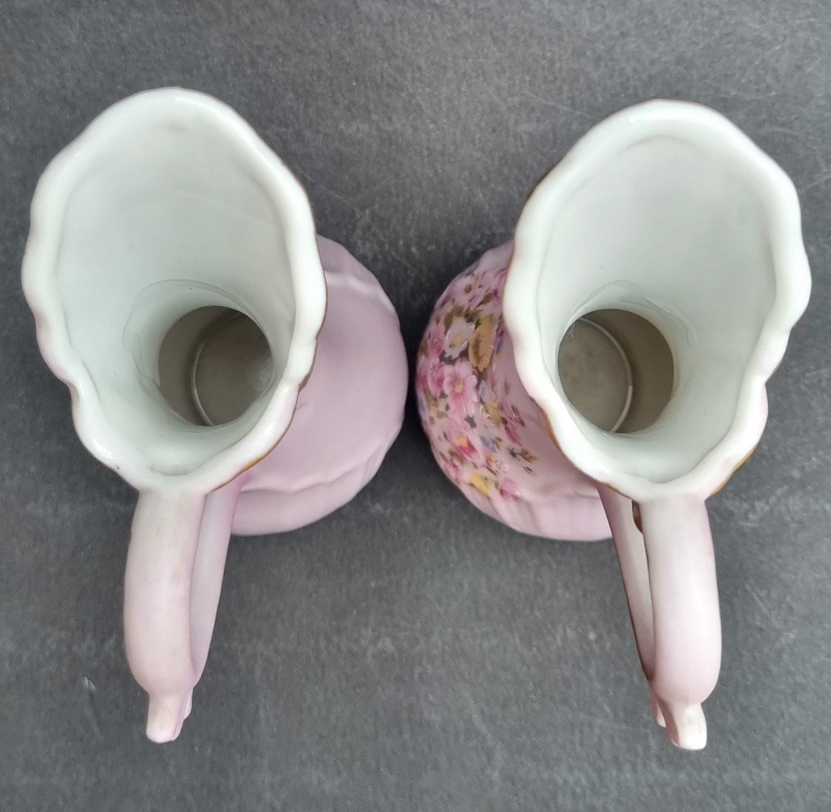 Hand-painted with a lovely floral design, with gold gilt. Can also be used as a bud vase.