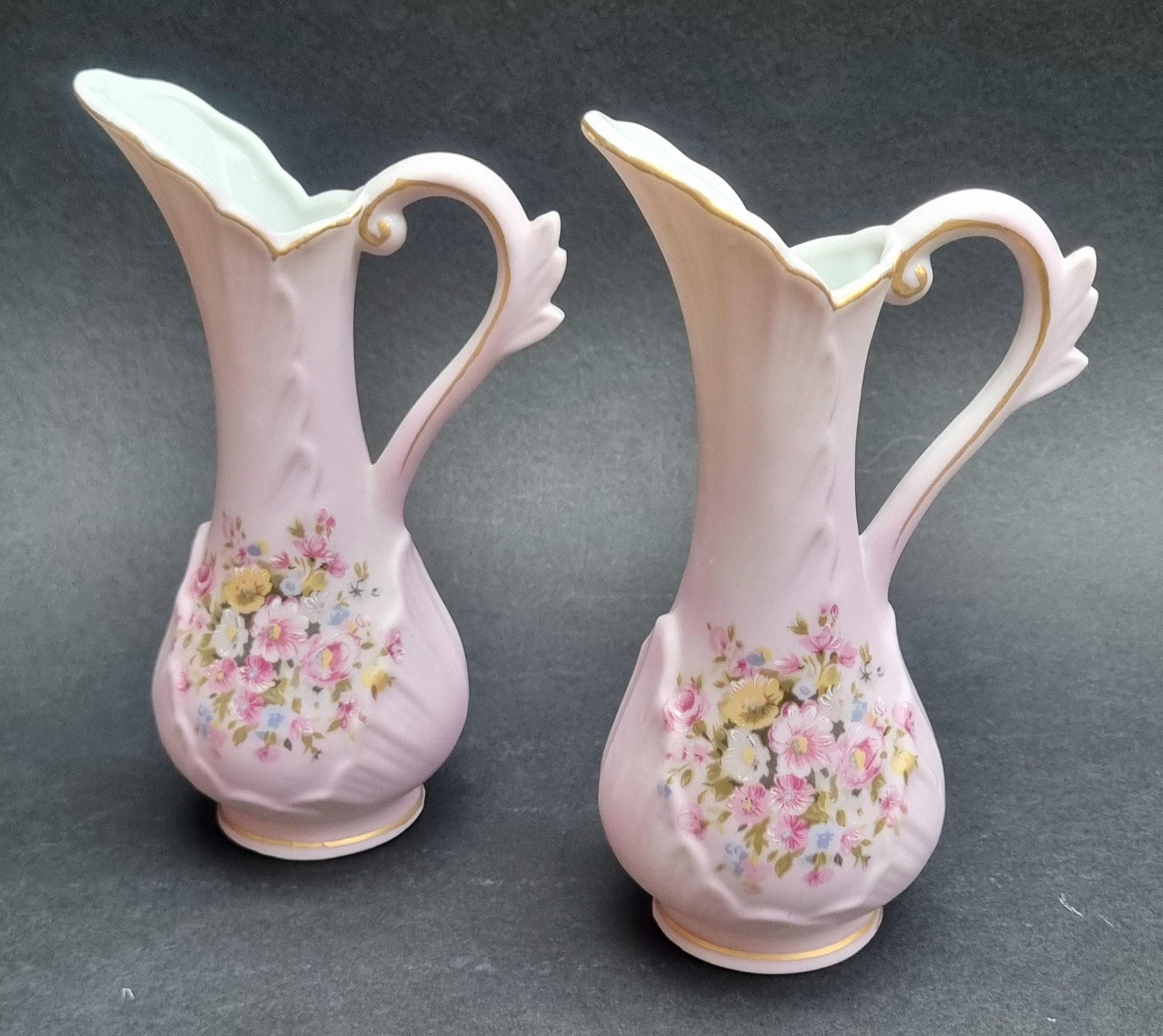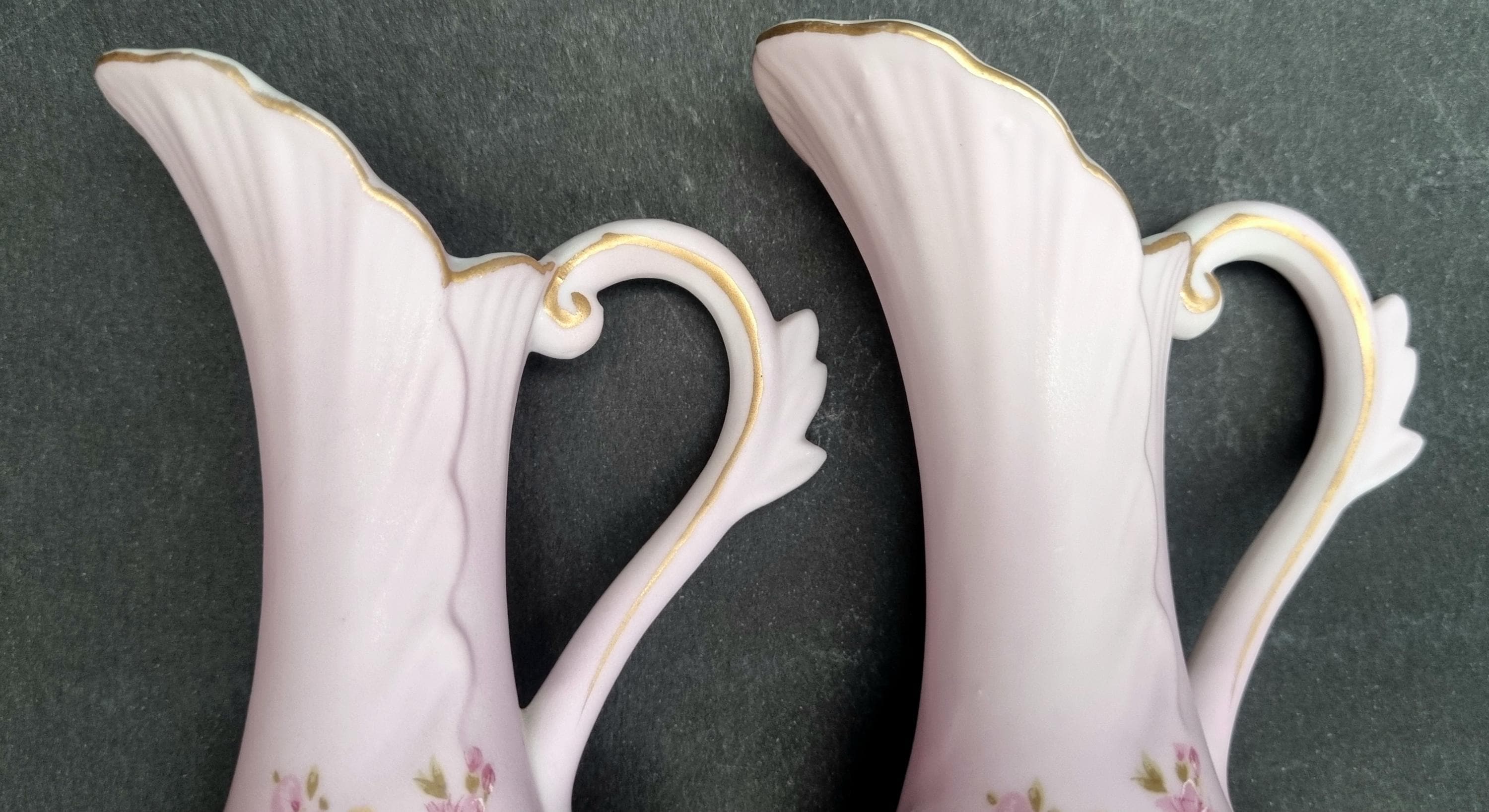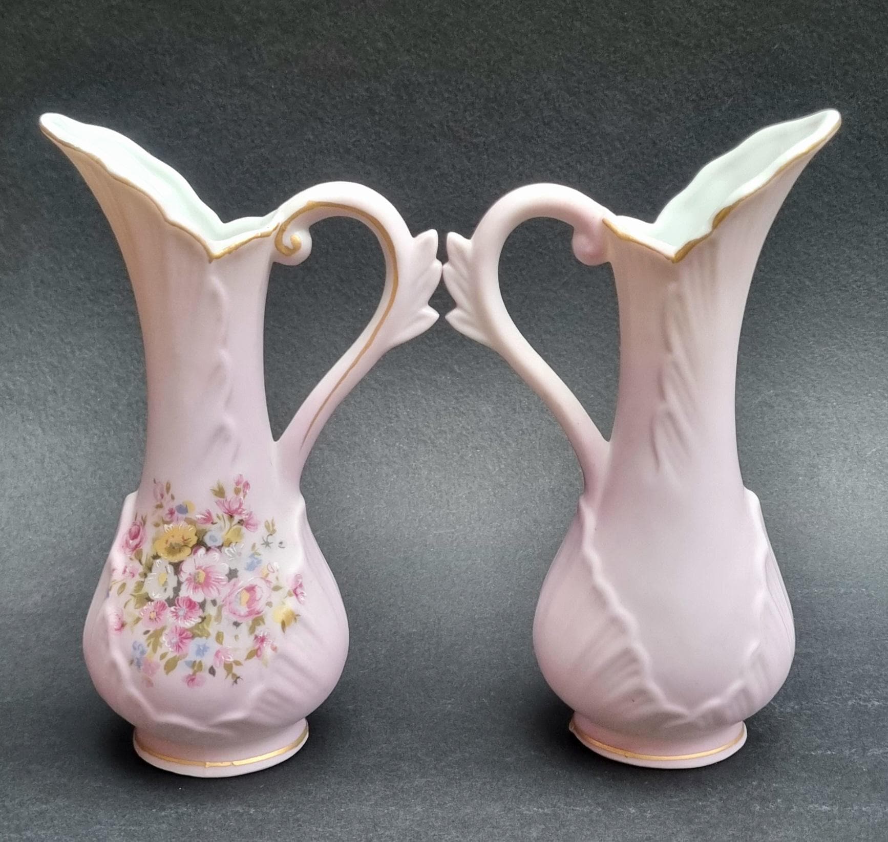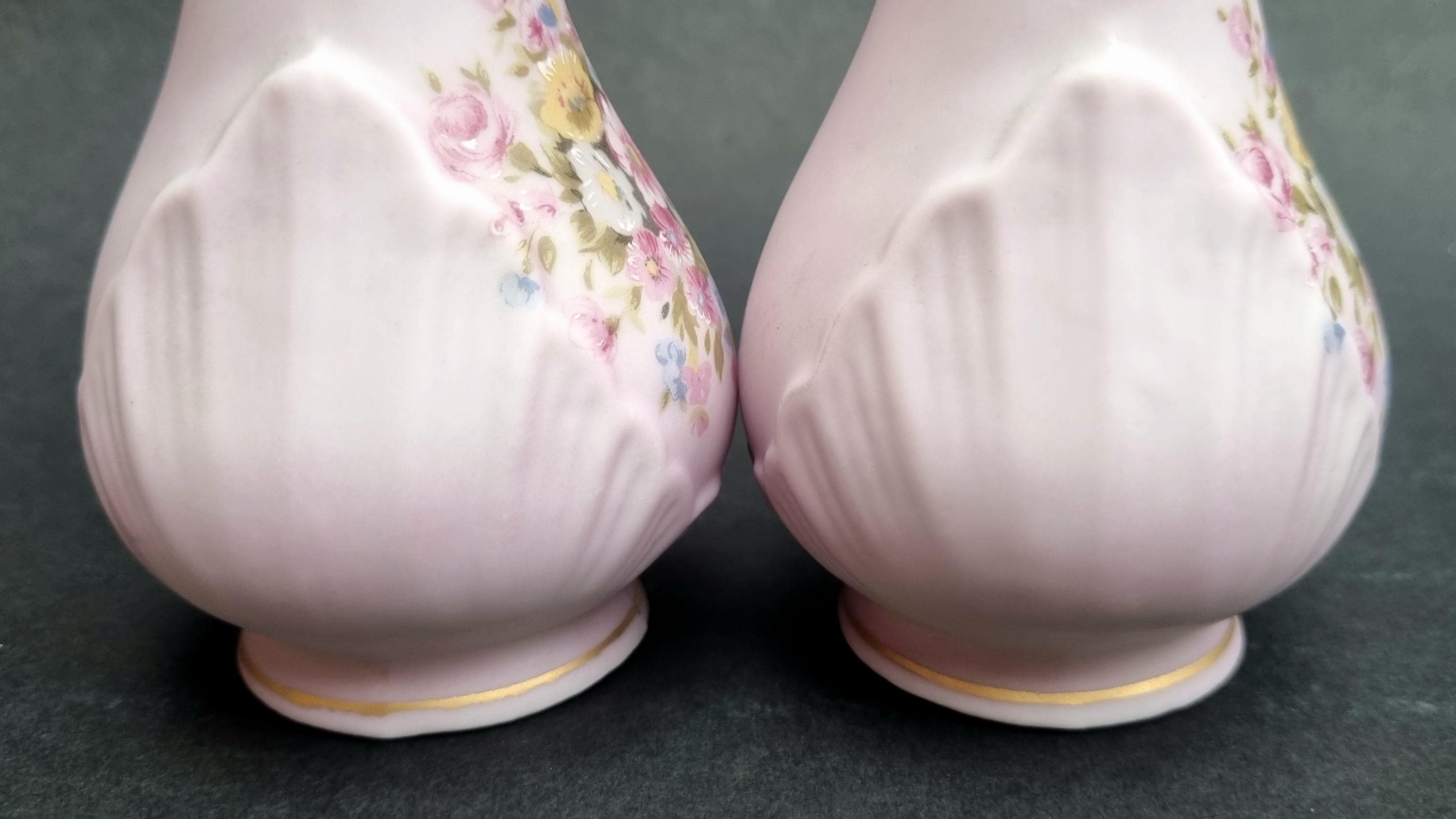 Hand-painted with a lovely floral design, with gold gilt. Can also be used as a bud vase.