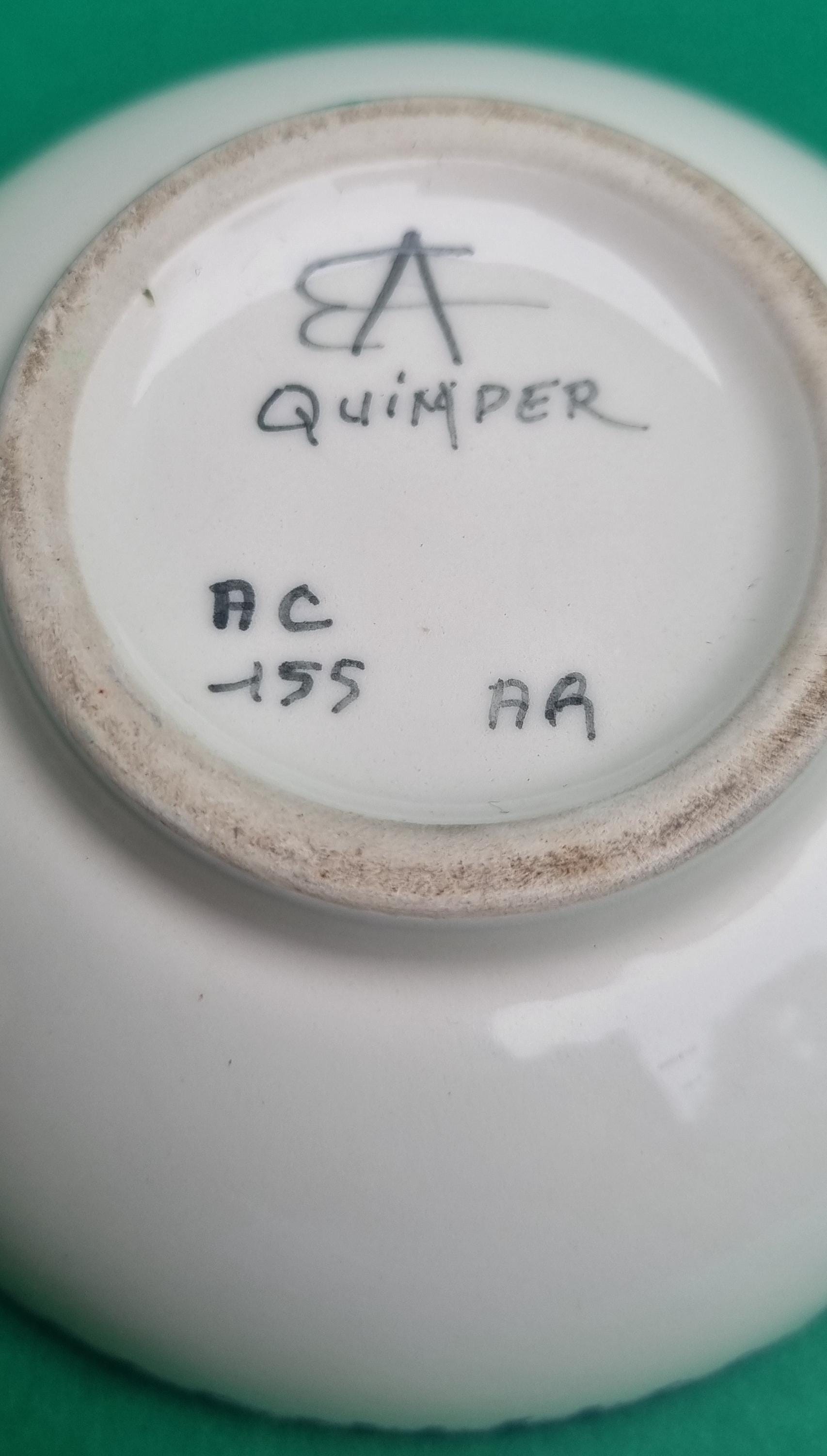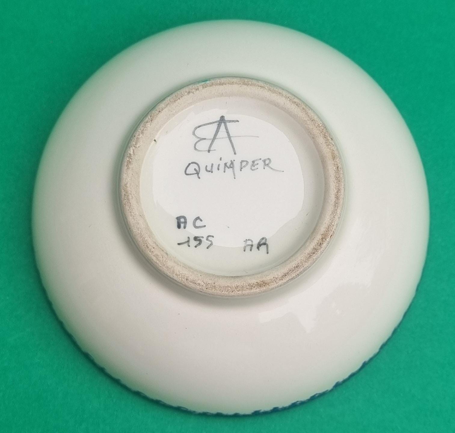 Lovely small Quimper bowl. Can be displayed as a decorative piece or used as a sugar bowl, for sweets, or any other nibbles.