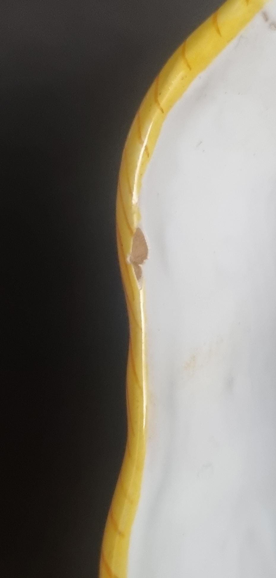Pre-owned and in great condition, but with a minor flake to the glaze on inside of the rim. Please refer to last image. Free of any cracks.