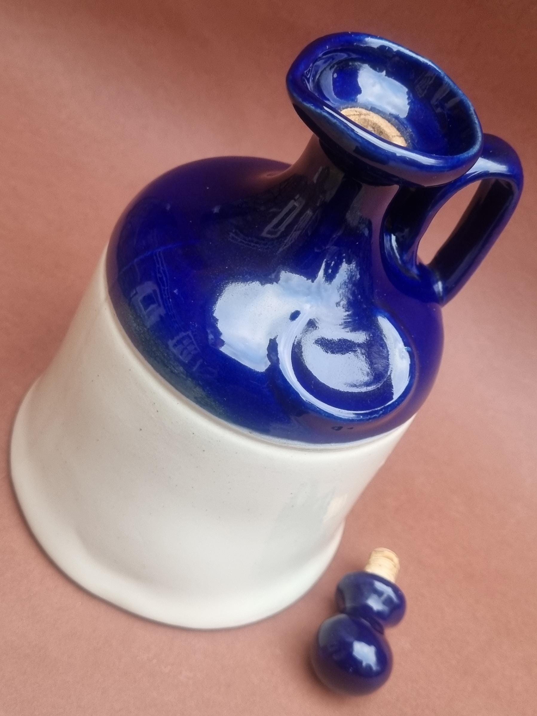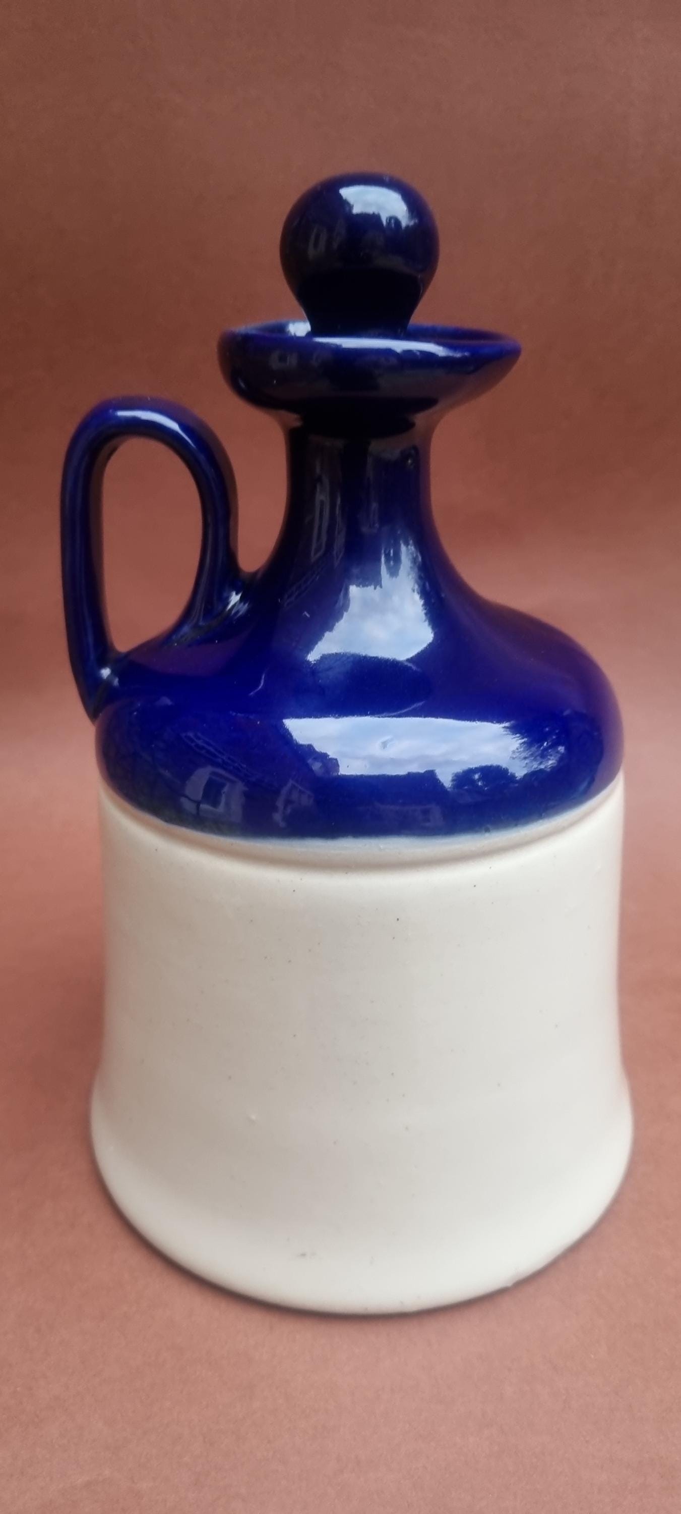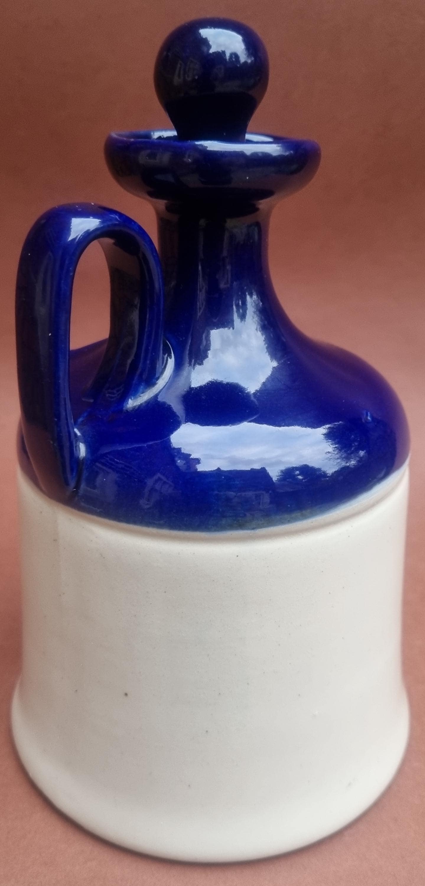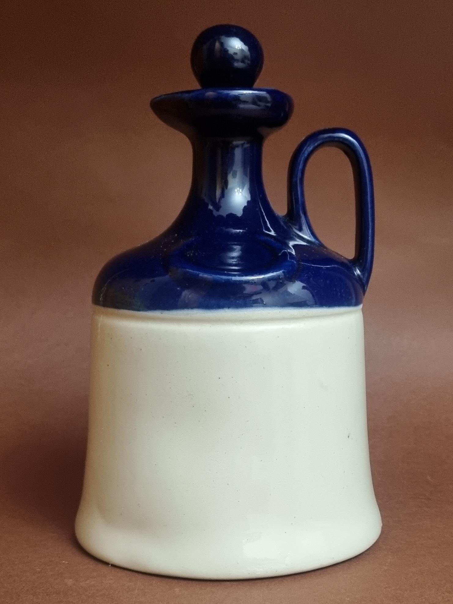 This vintage whiskey decanter/bottle is a decorative piece for display purposes as the opening is completely sealed. In the style of Grants Whisky Decanter.