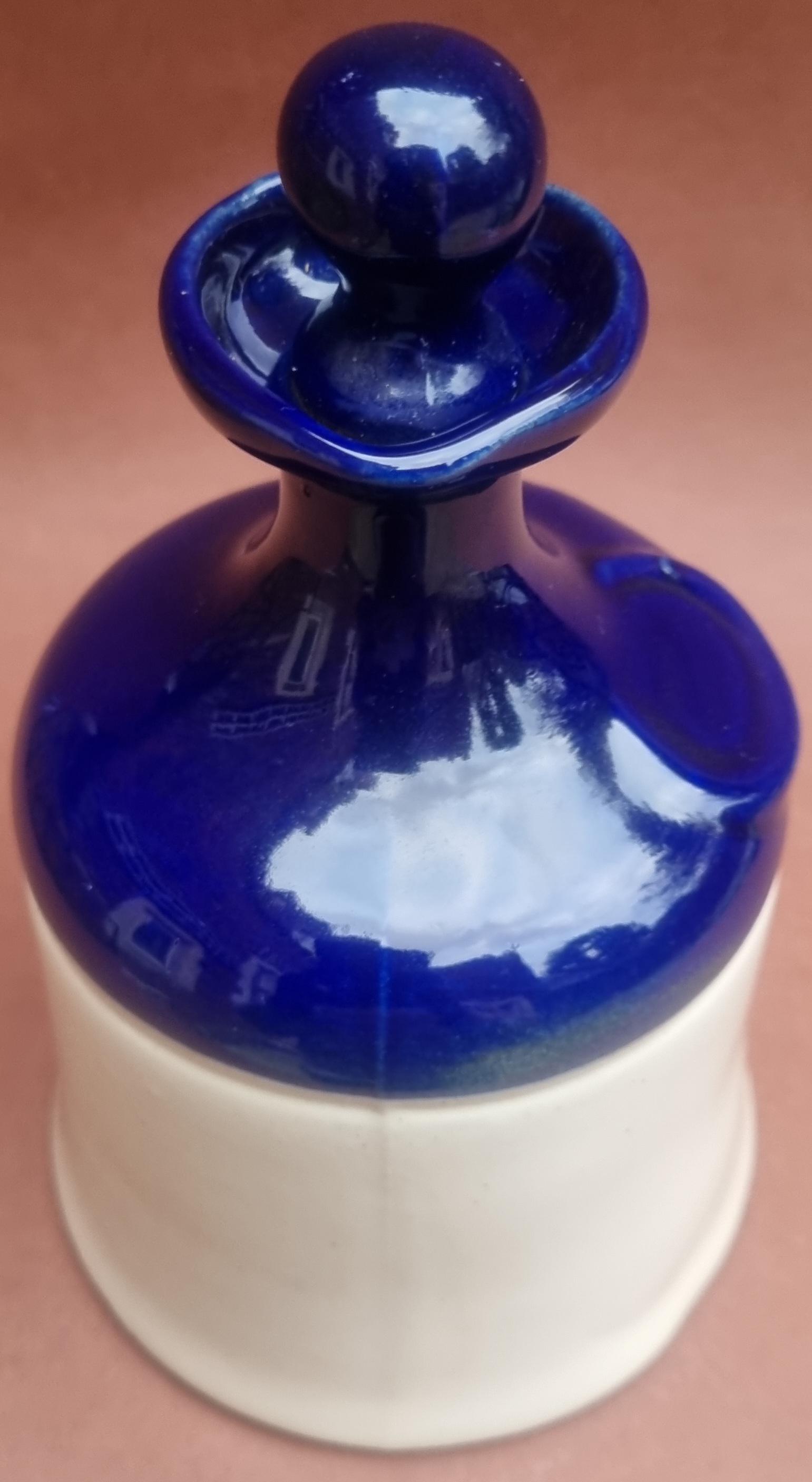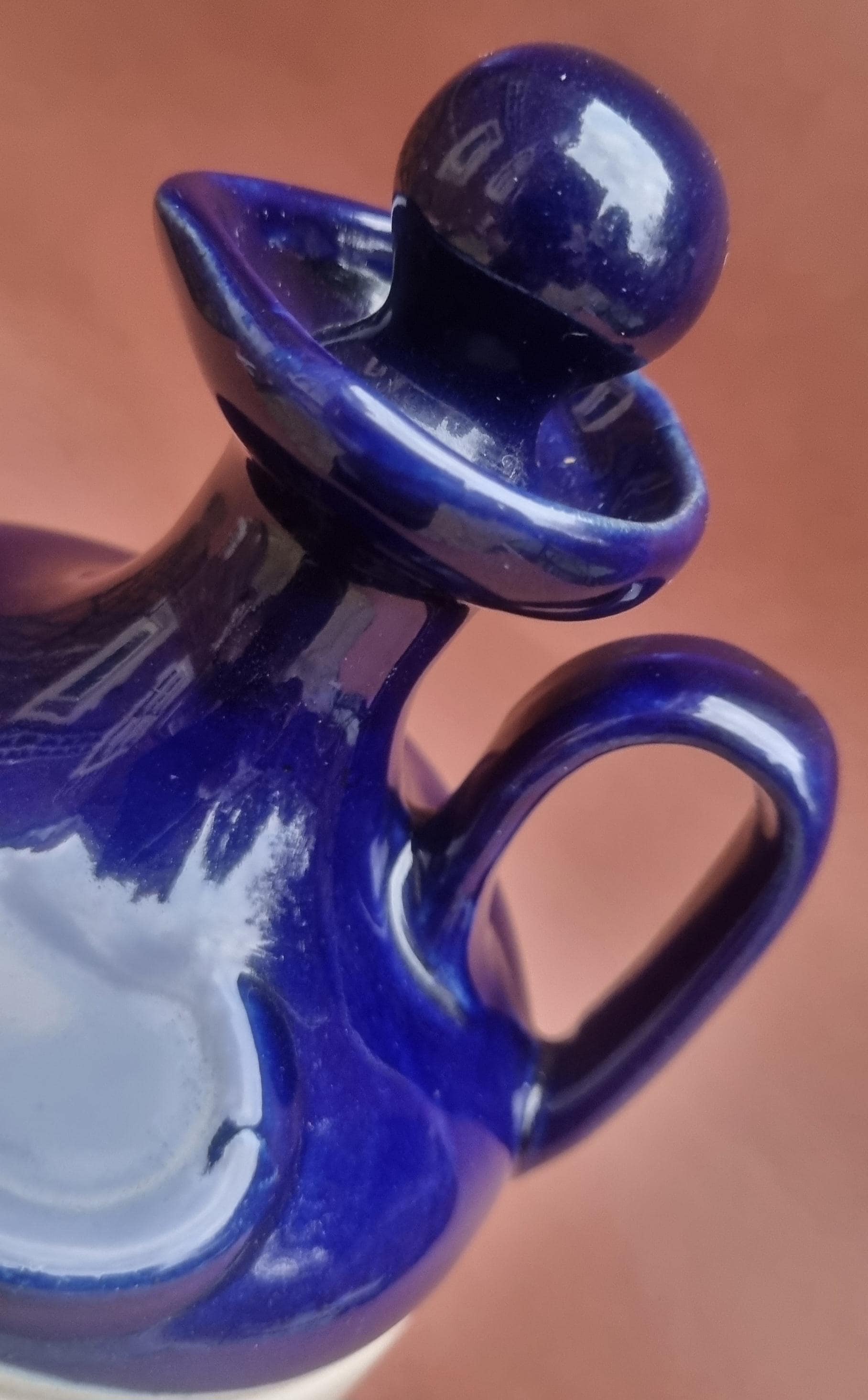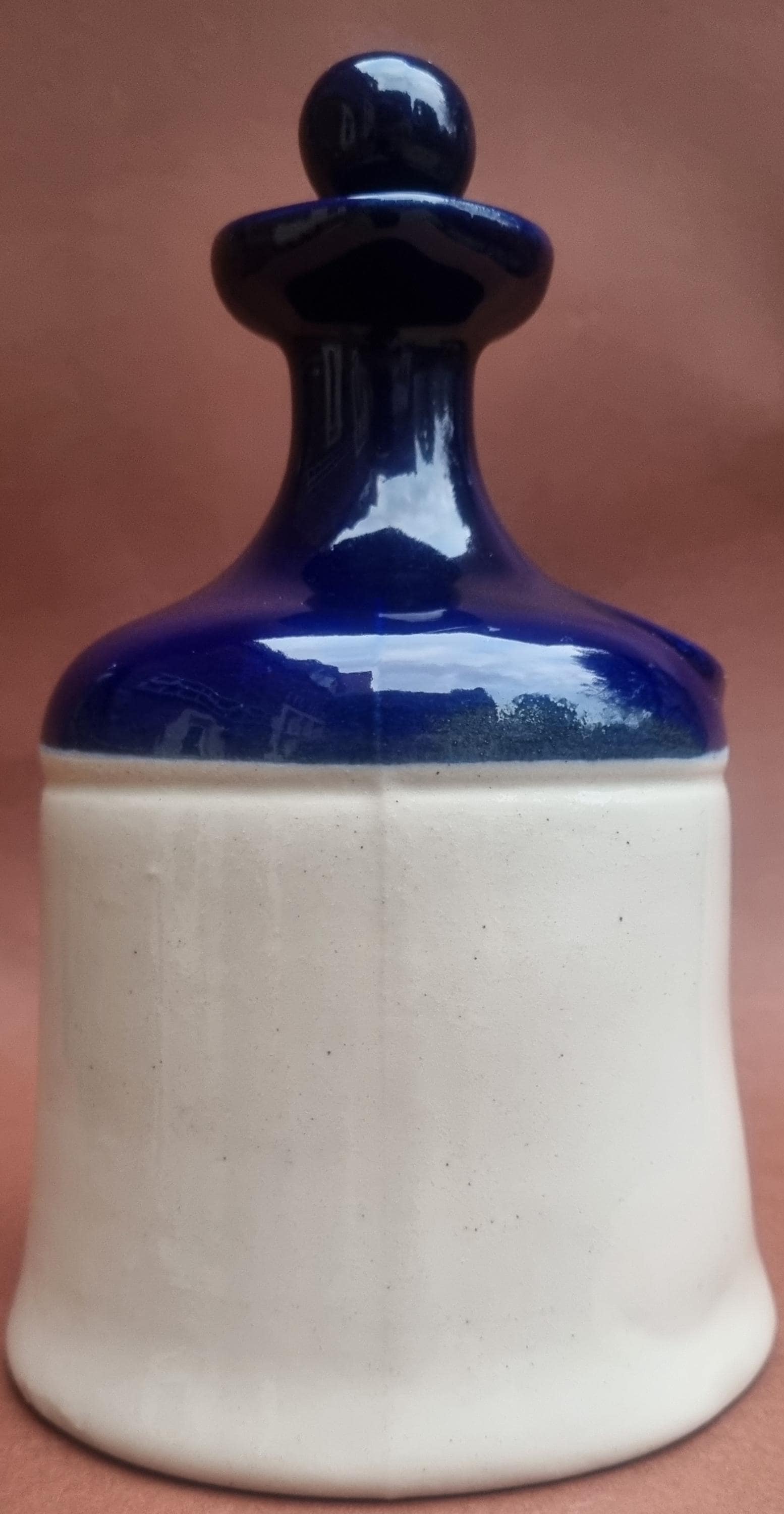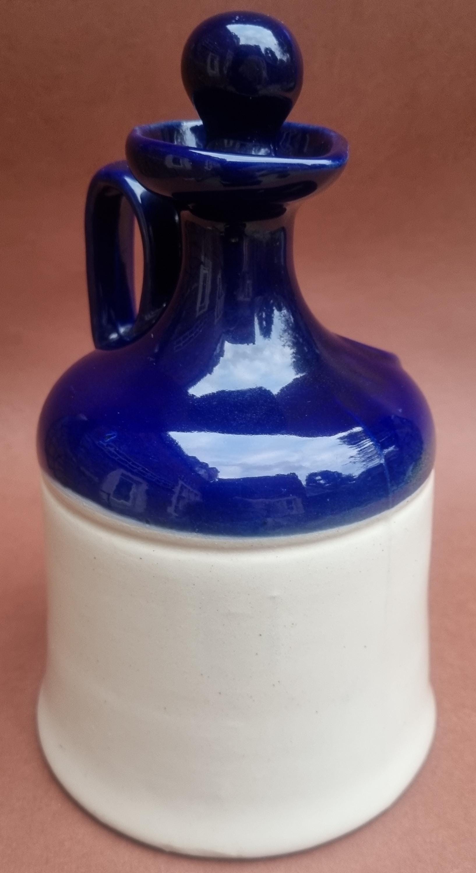 This vintage whiskey decanter/bottle is a decorative piece for display purposes as the opening is completely sealed. In the style of Grants Whisky Decanter.