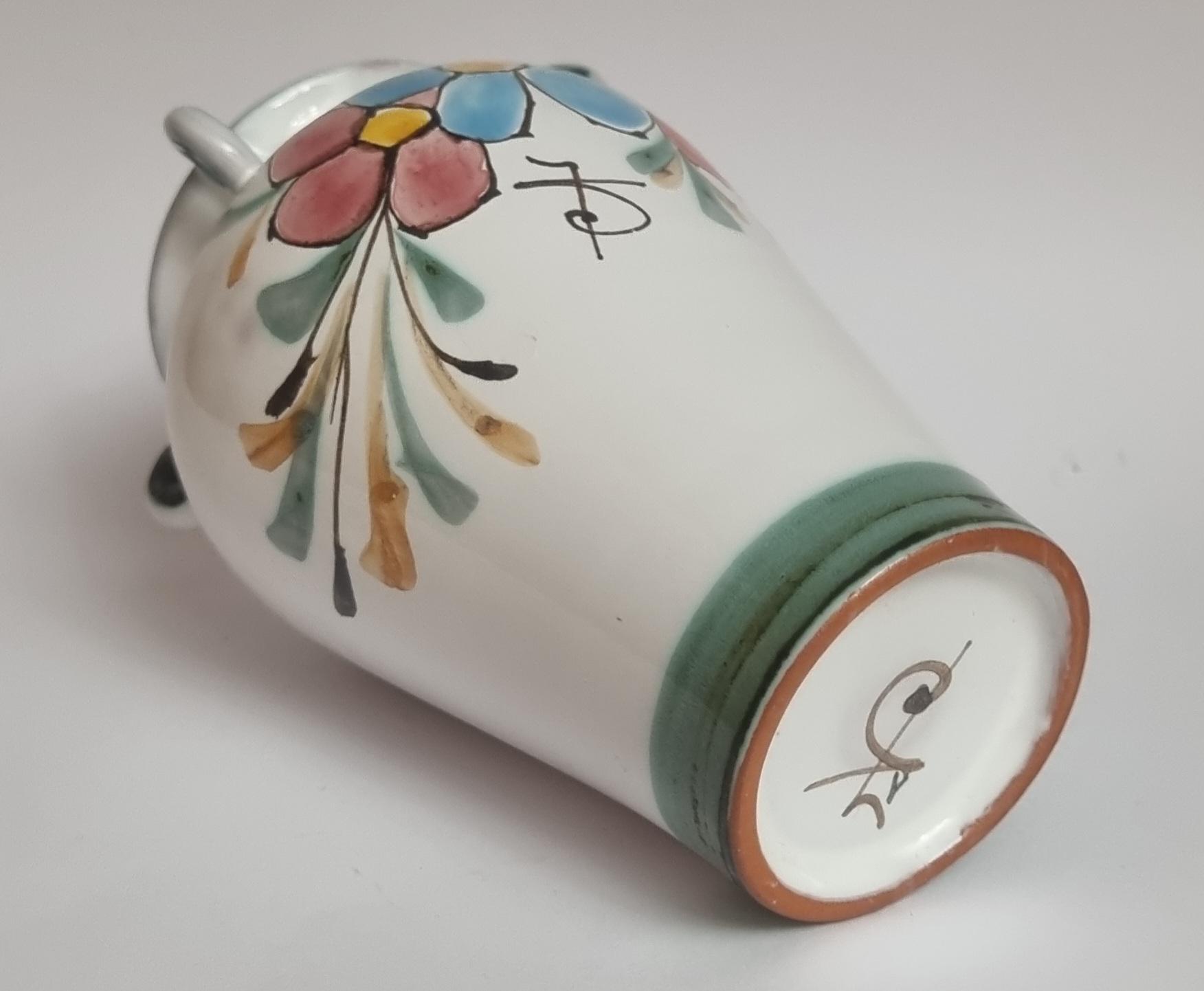 This is a beautiful hand-painted floral ceramic vase by Jose Serigado, Alcobaca Portugal. Jose is known for some delightful hand painted ceramic items and this piece is definitely worth collecting. It makes a wonderful decorative piece that will suit a wide range of tastes.