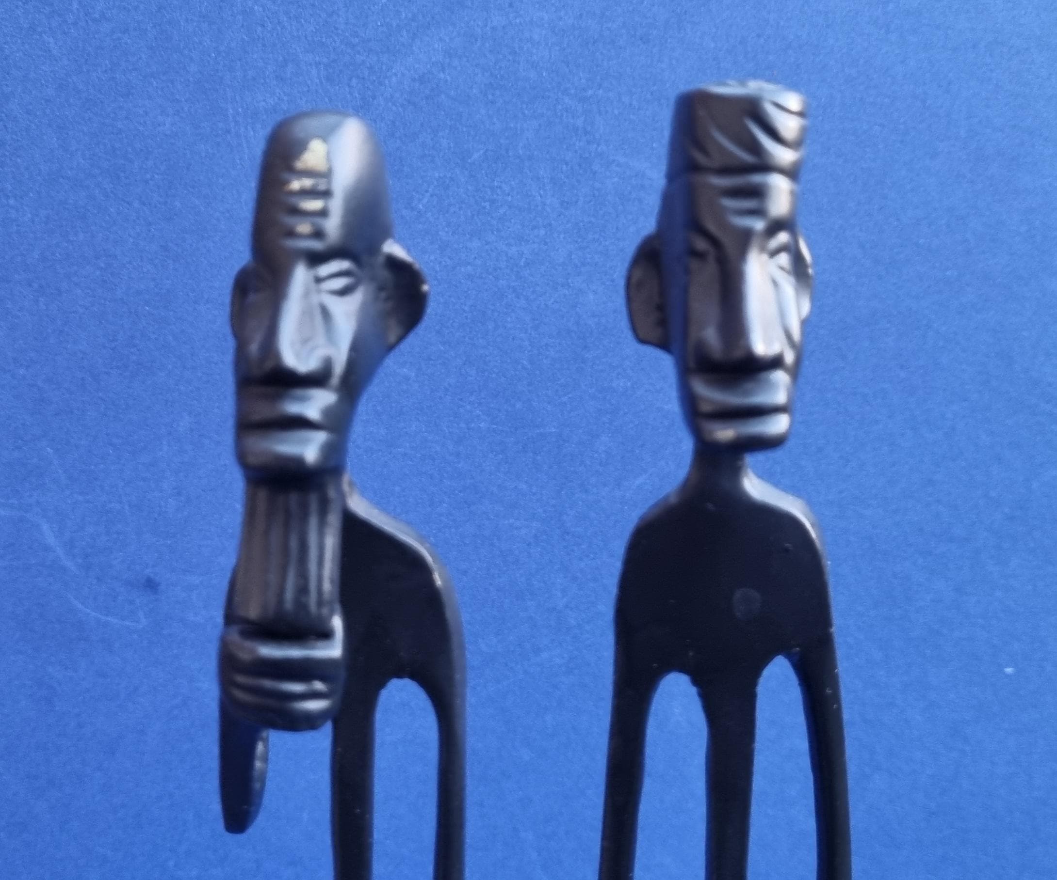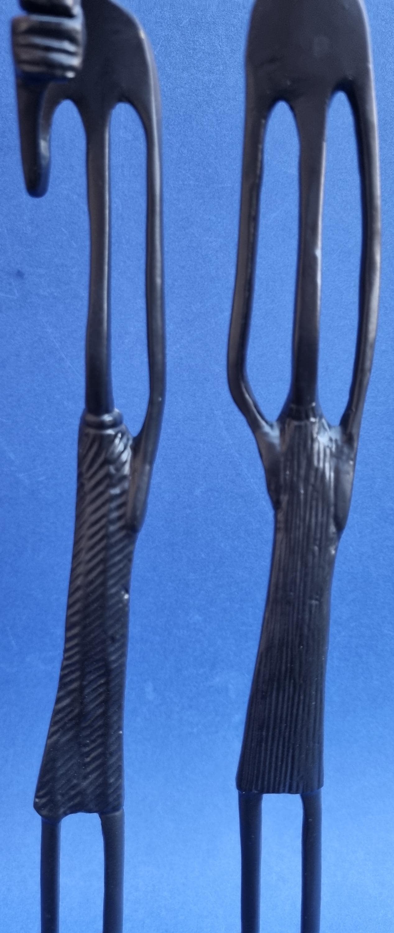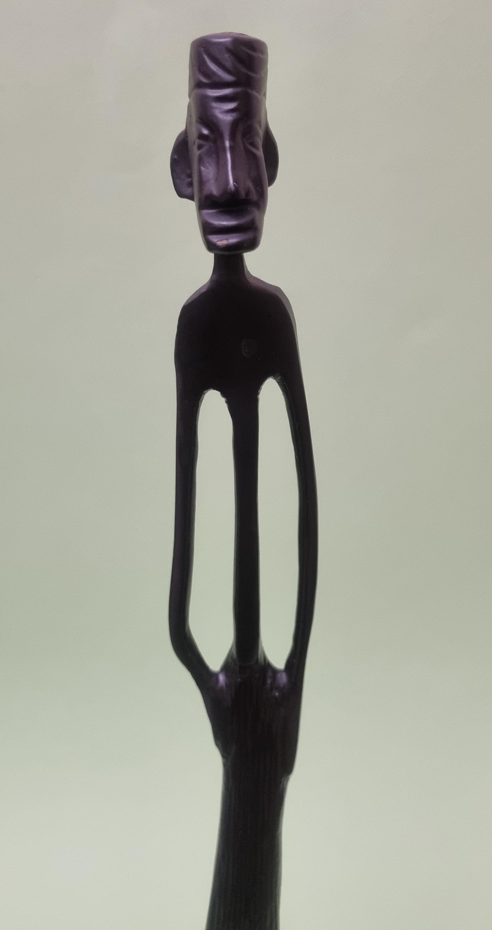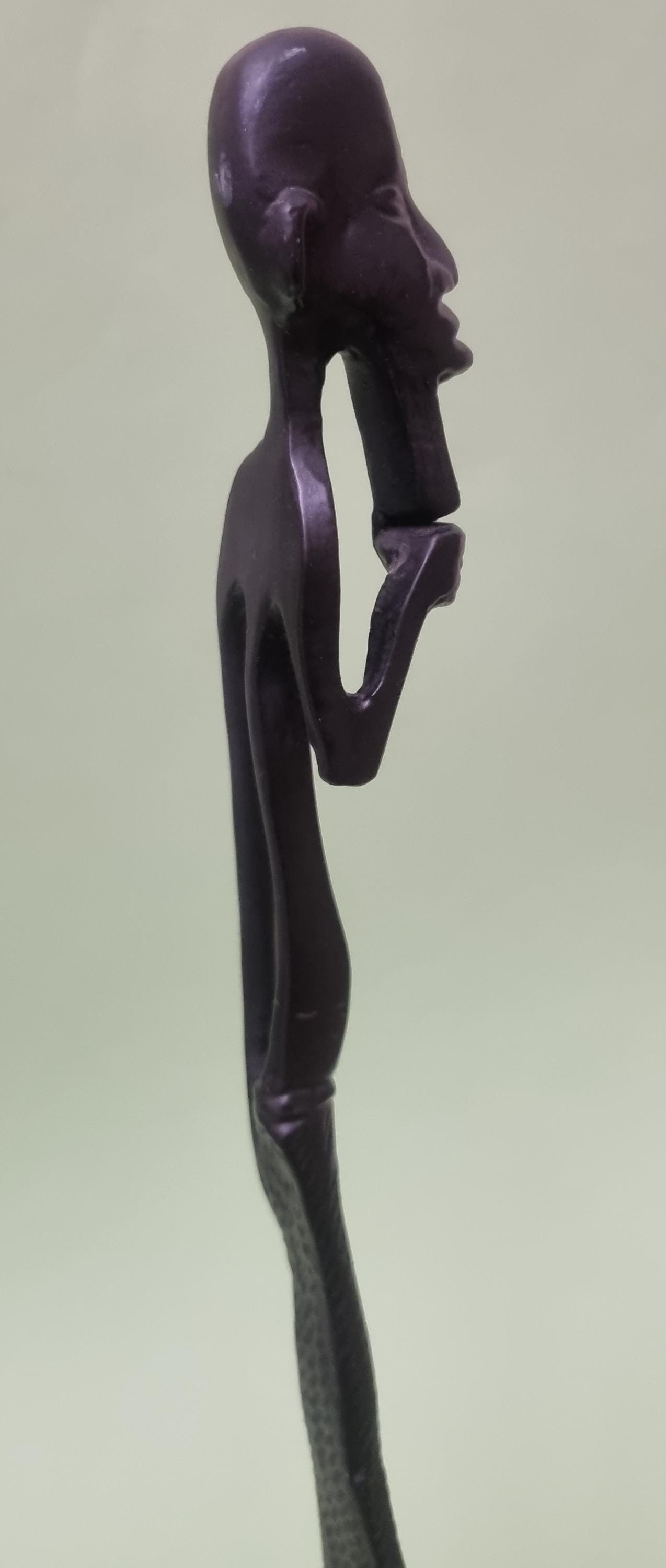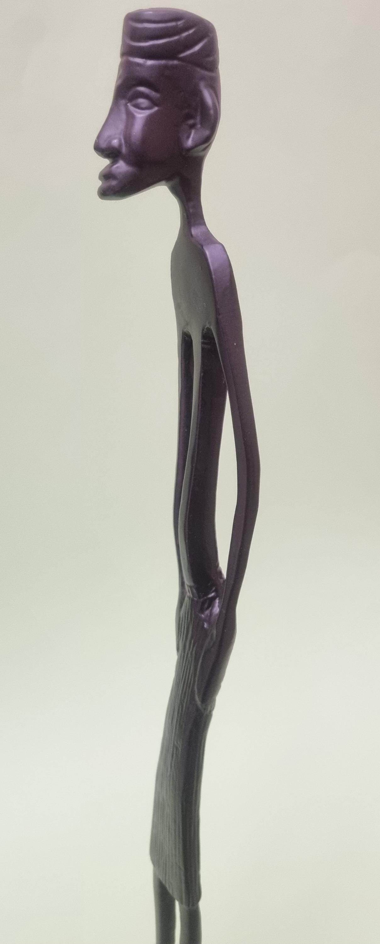 The figurines feature an elongated, minimalist design with abstract features and are mounted on pedestals for stability.