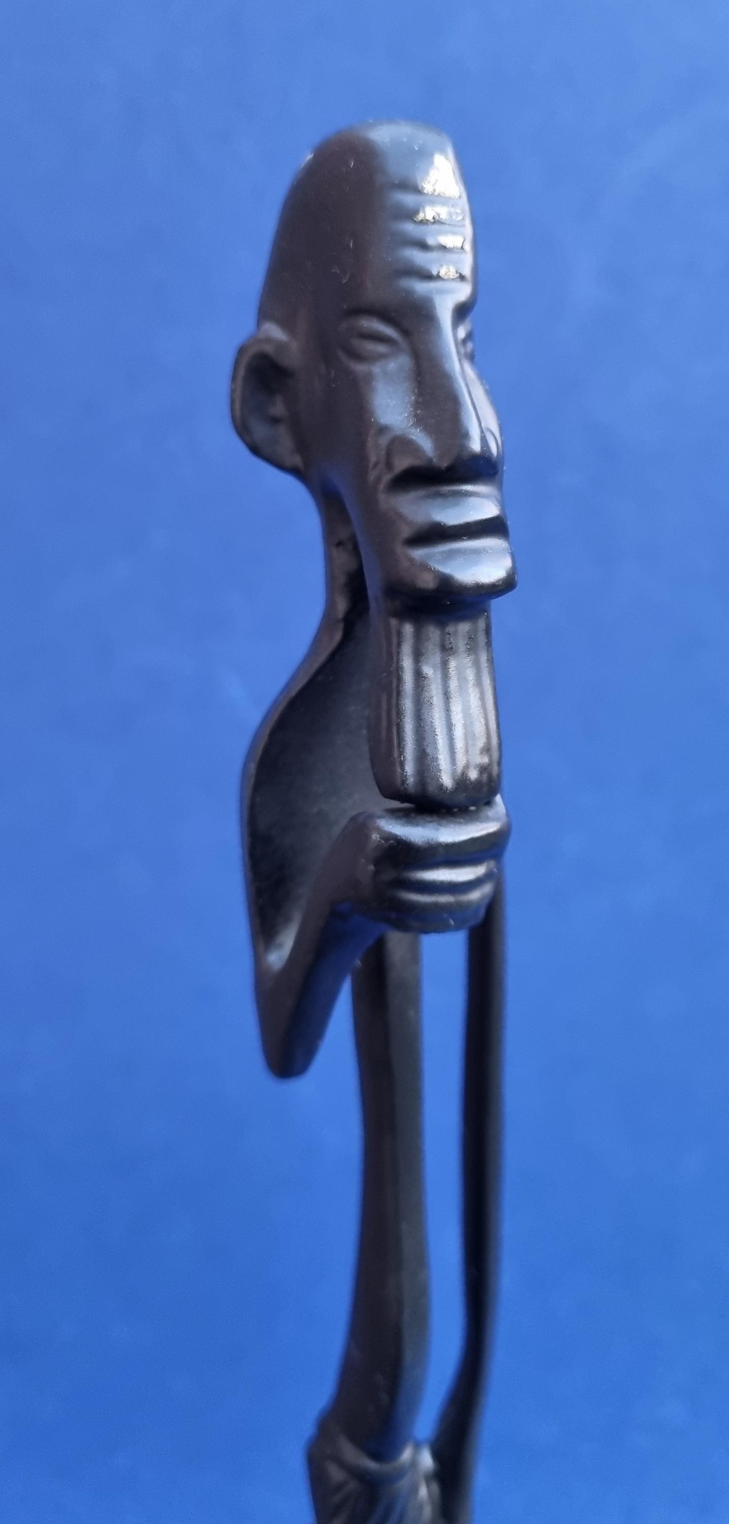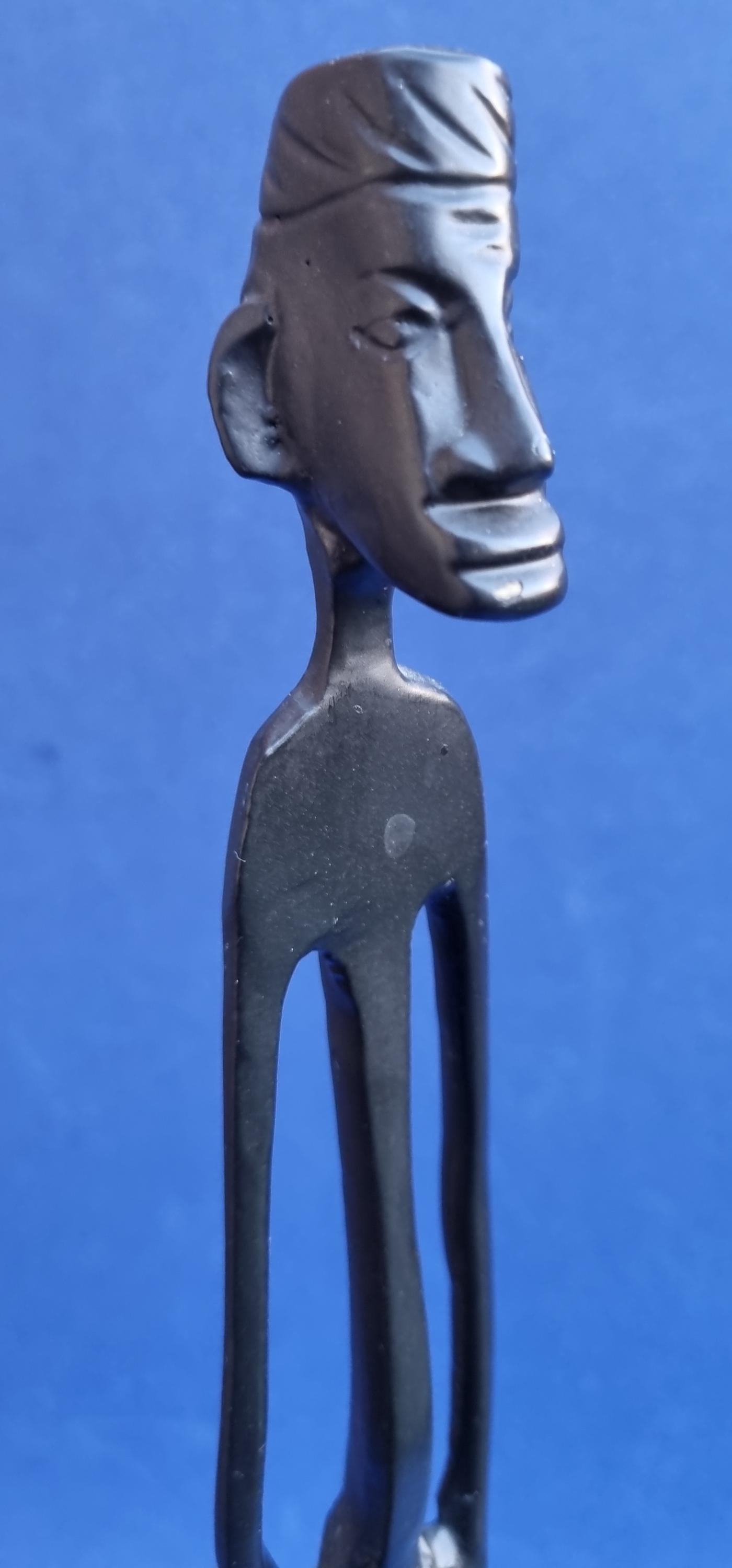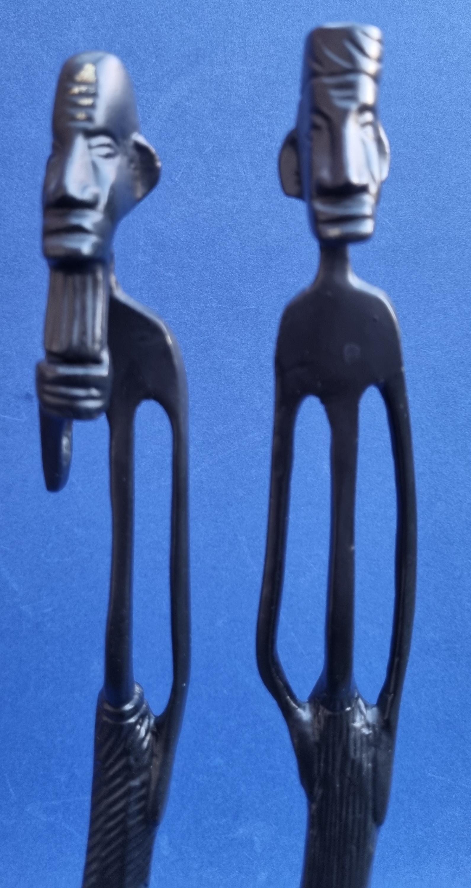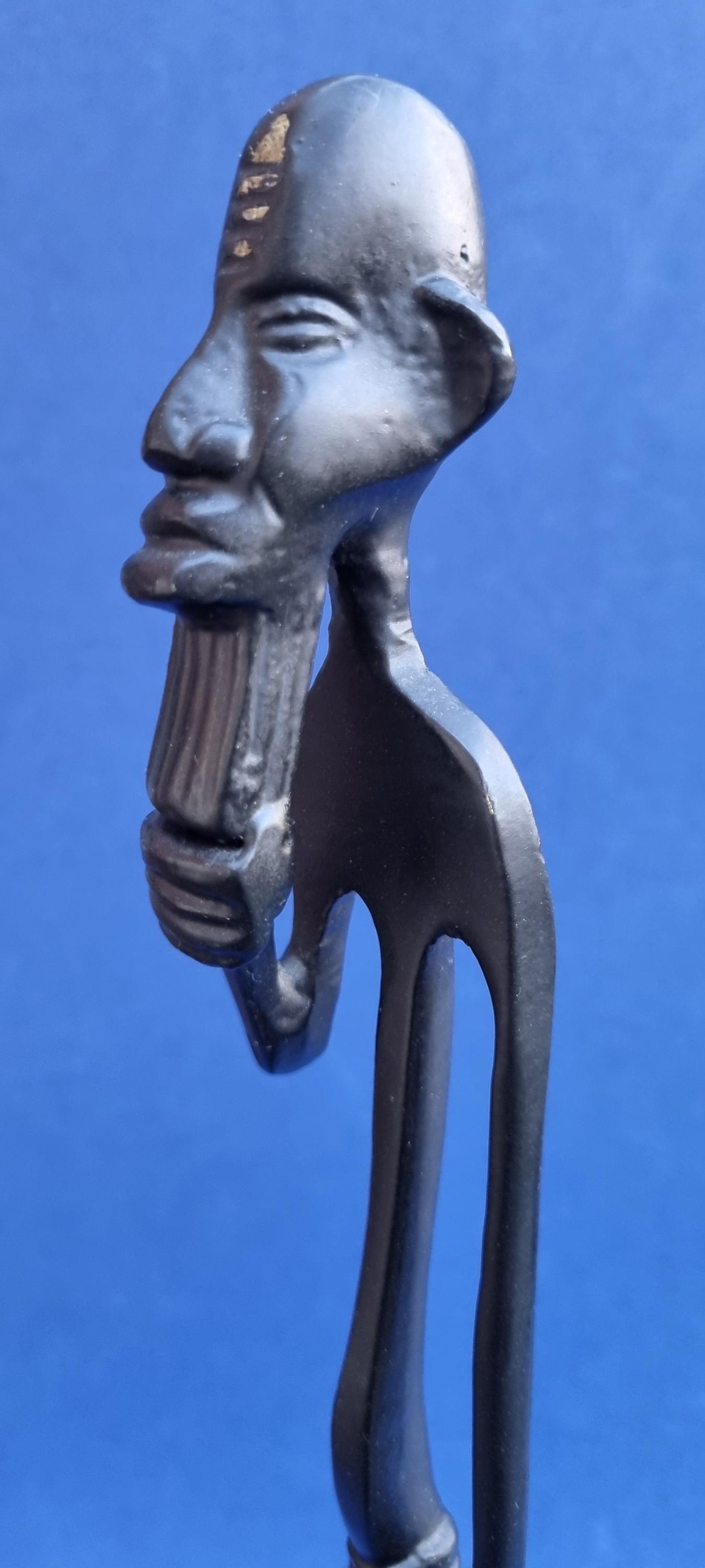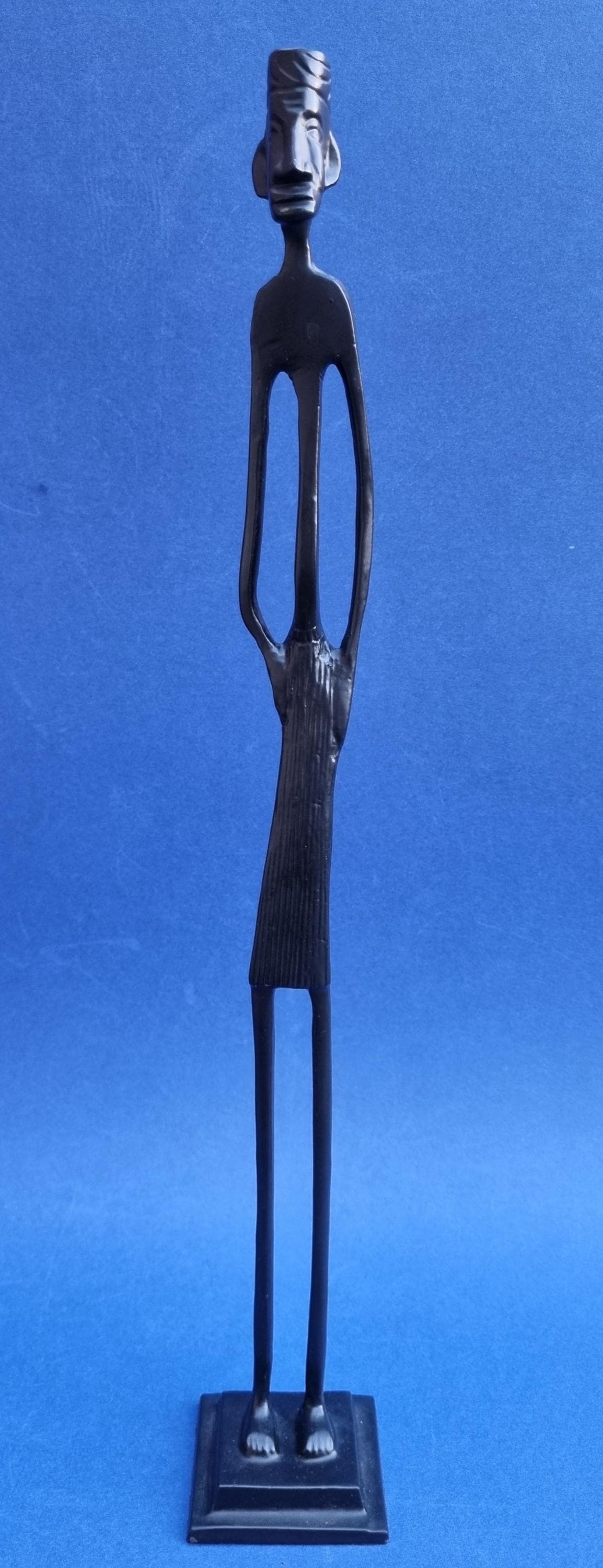 The figurines feature an elongated, minimalist design with abstract features and are mounted on pedestals for stability.