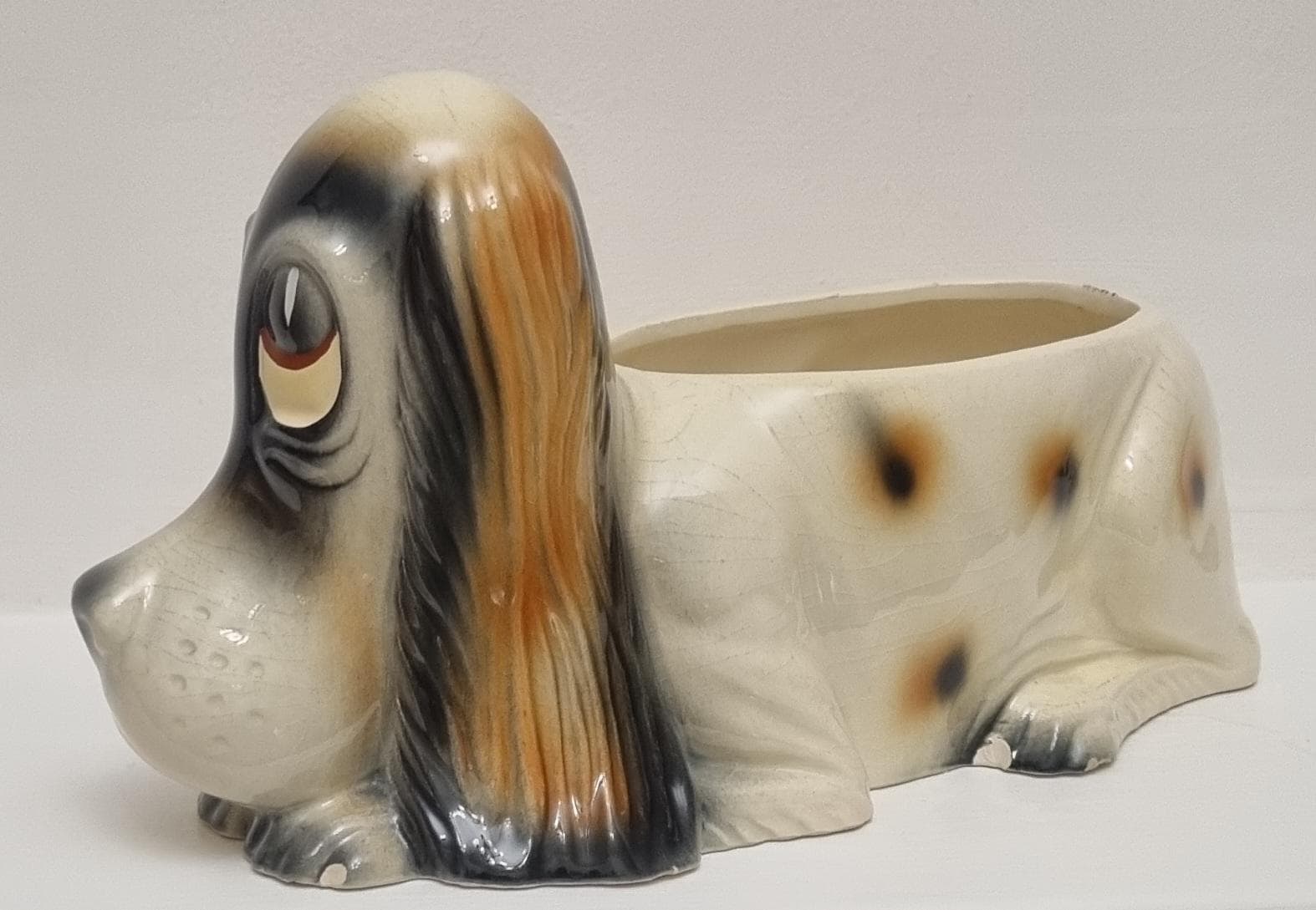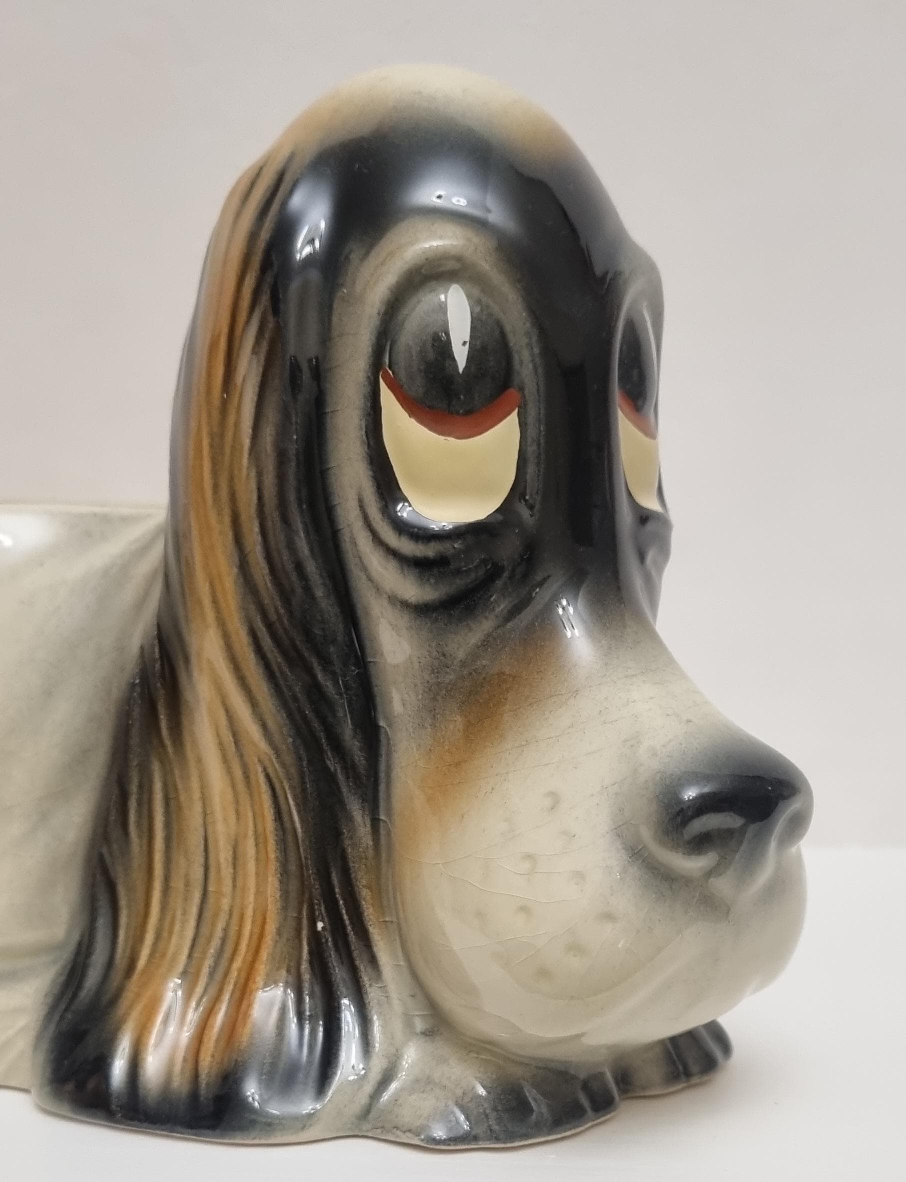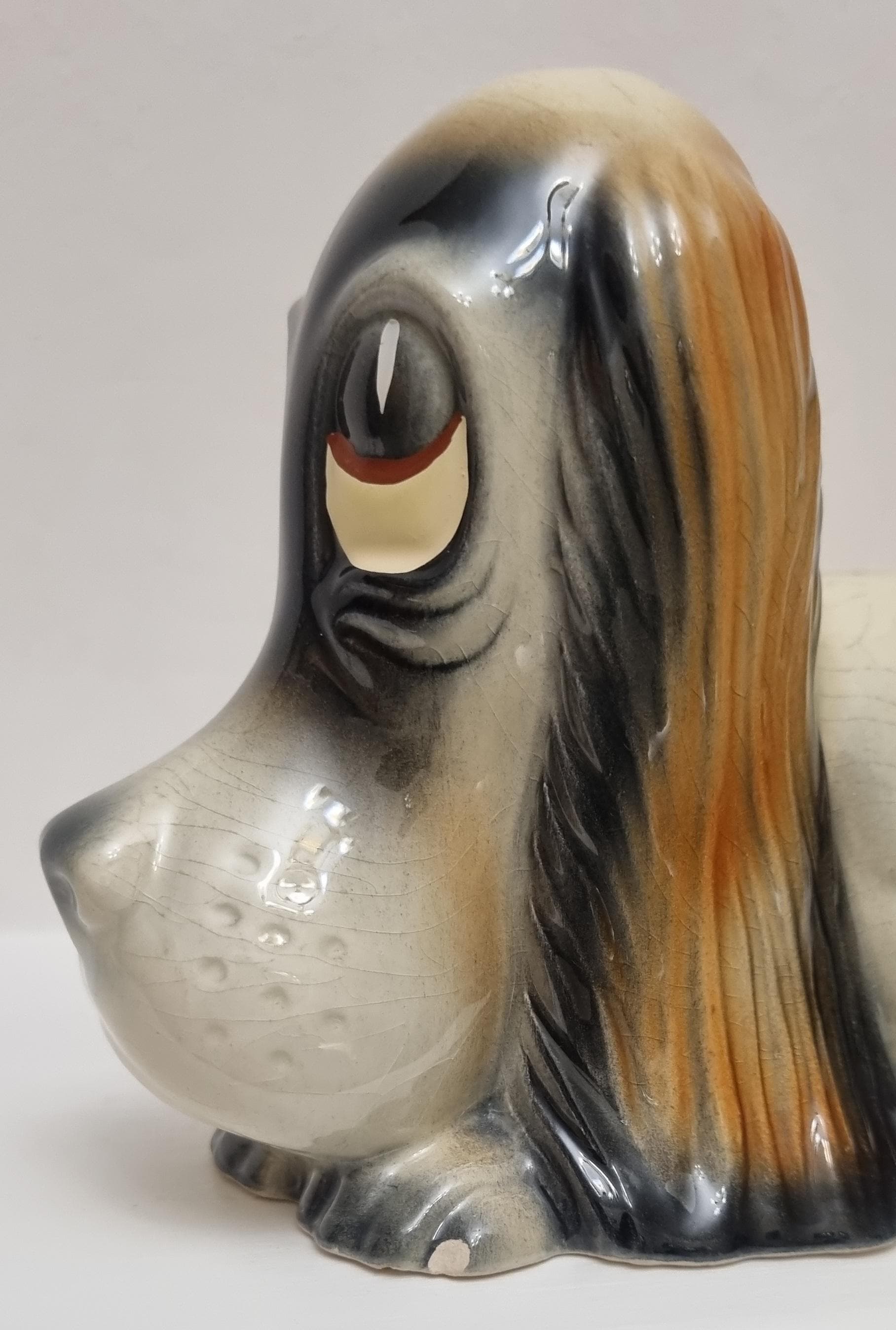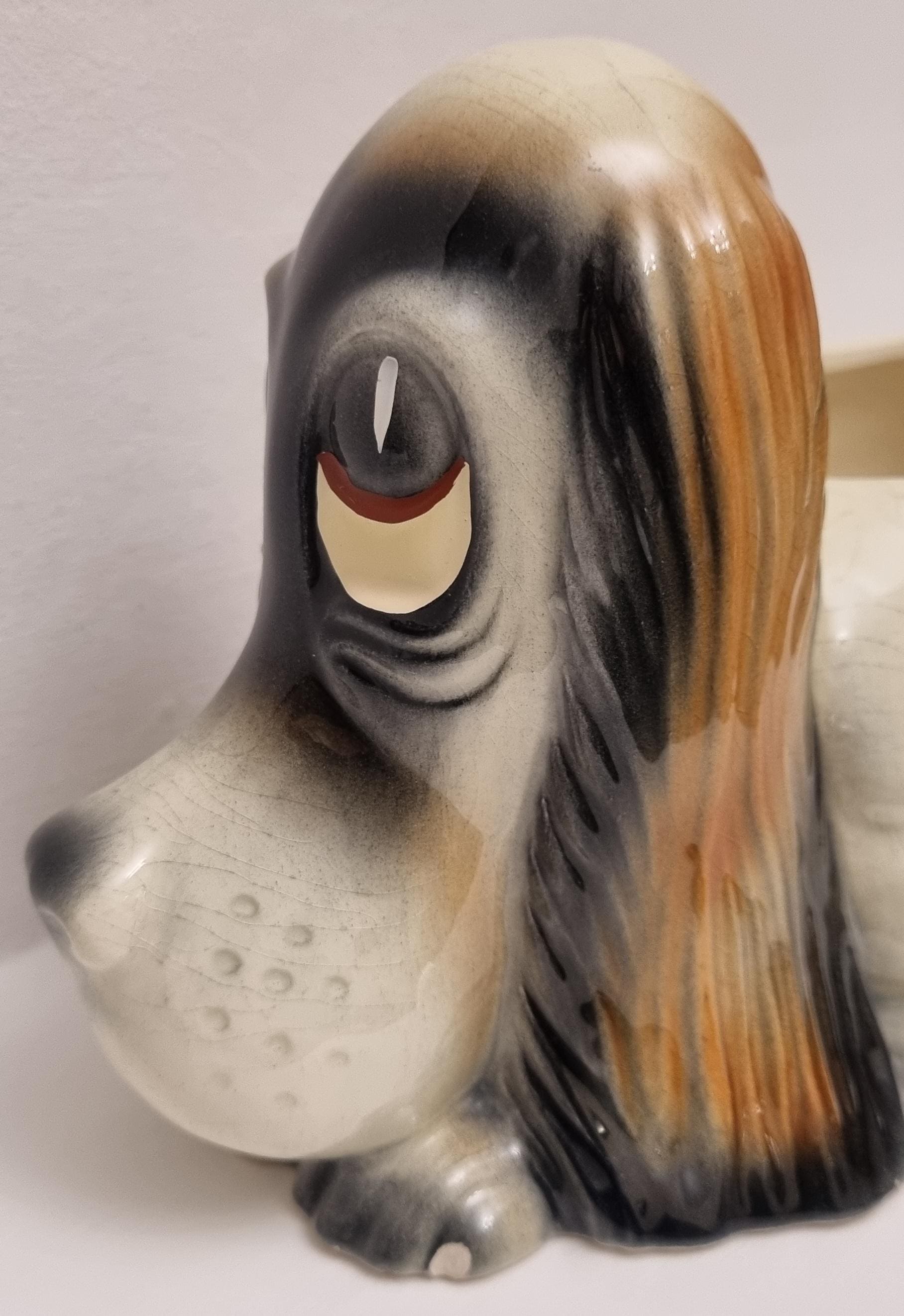 Pre-owned and in good vintage condition, but over time it has gained a few minor chips to the glaze. Please refer to the last 2 image for clarity. This Basset also shows signs of crazing, which isn't too definitive. The price has been adjusted to reflect any discrepancy.