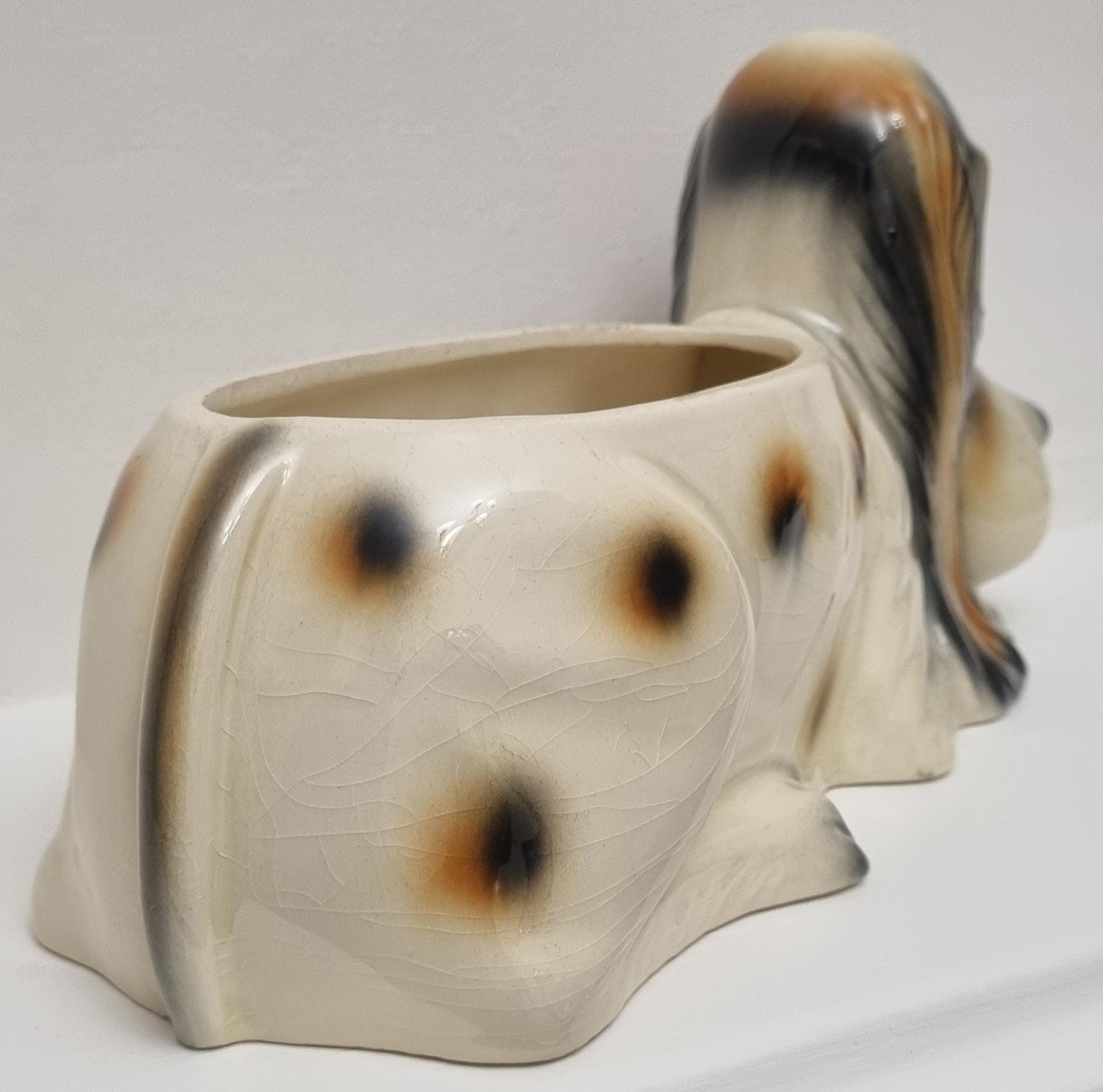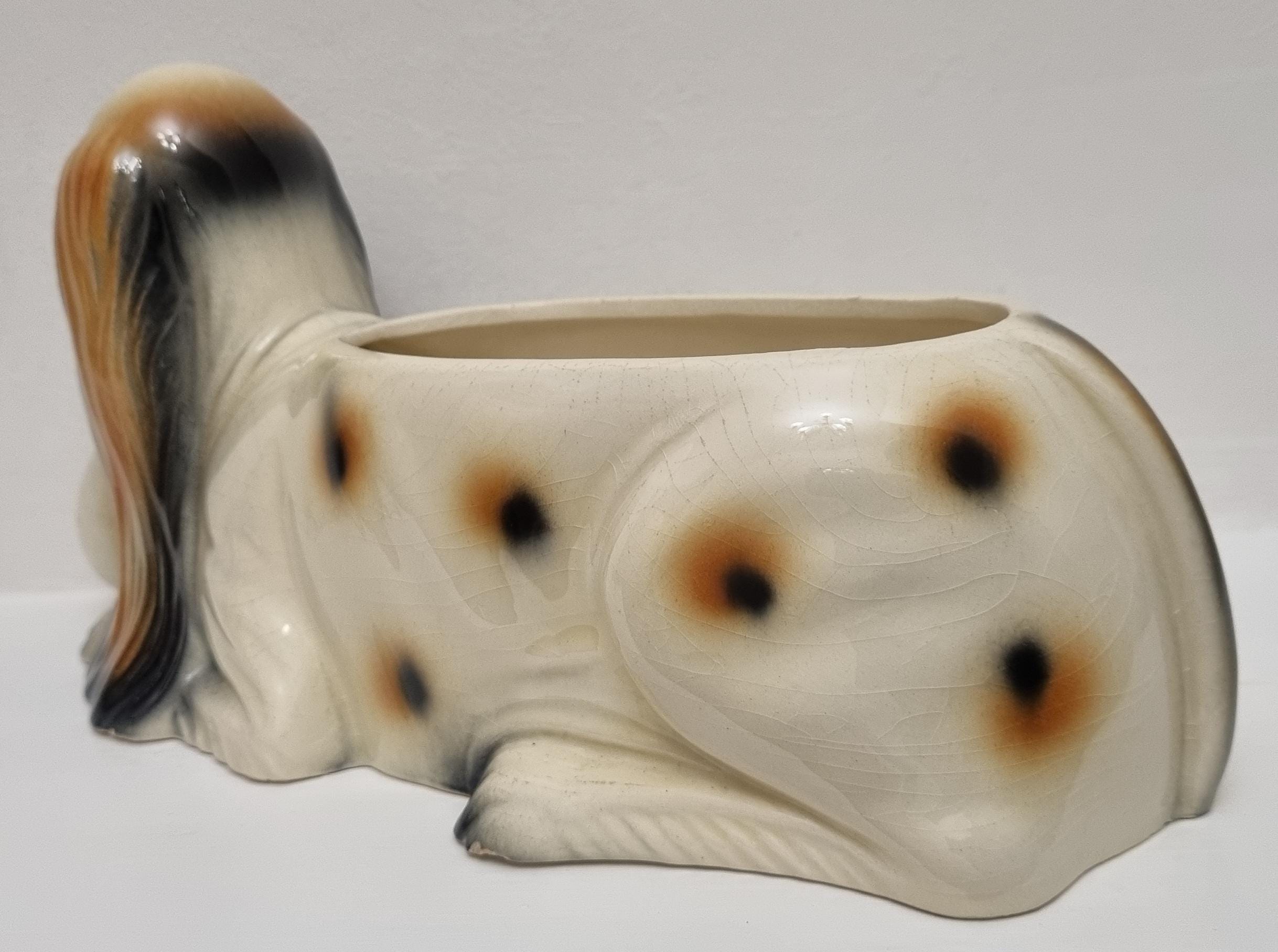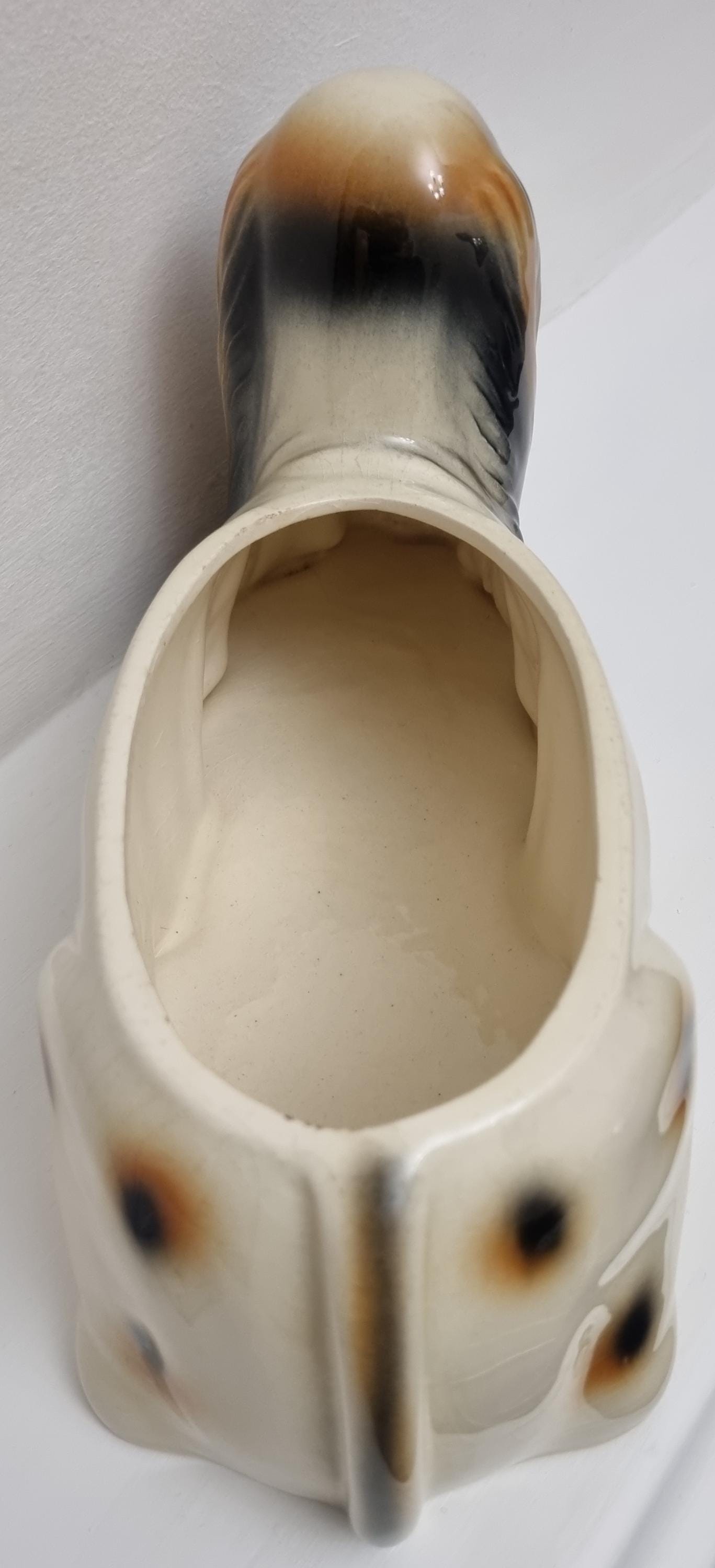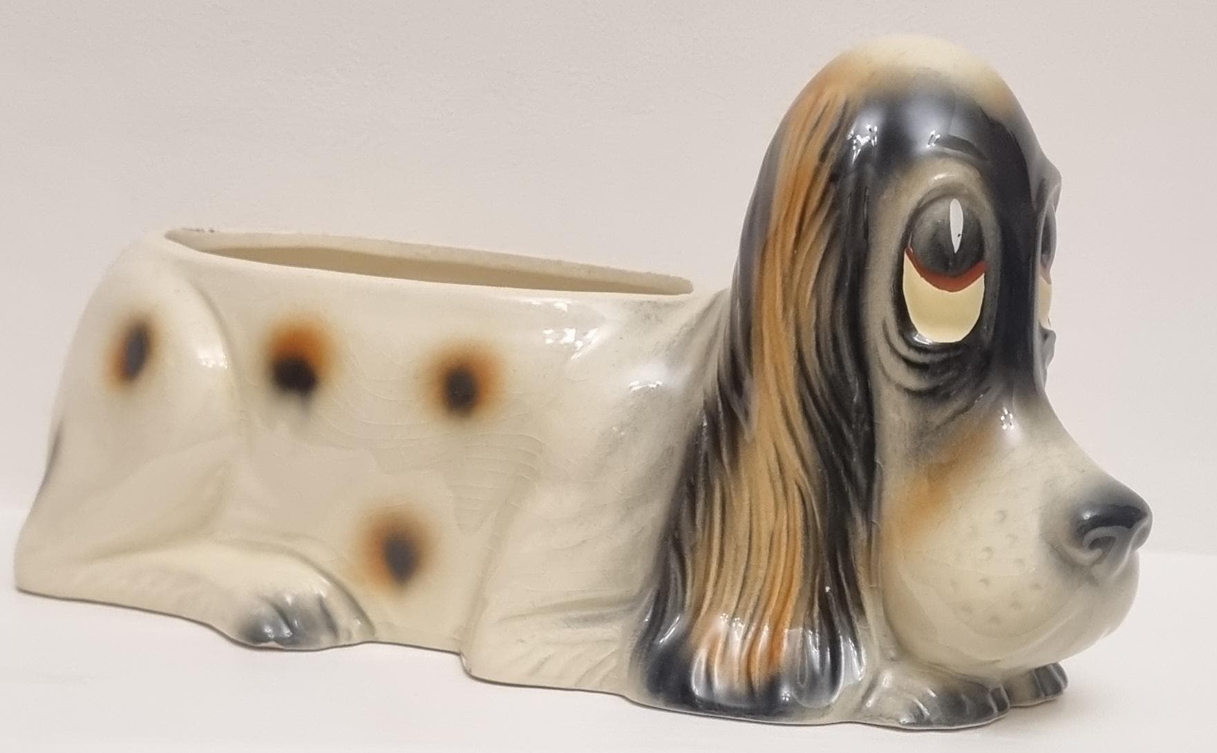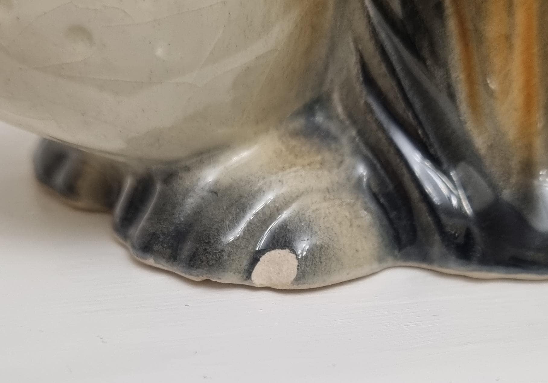 Pre-owned and in good vintage condition, but over time it has gained a few minor chips to the glaze. Please refer to the last 2 image for clarity. This Basset also shows signs of crazing, which isn't too definitive. The price has been adjusted to reflect any discrepancy.