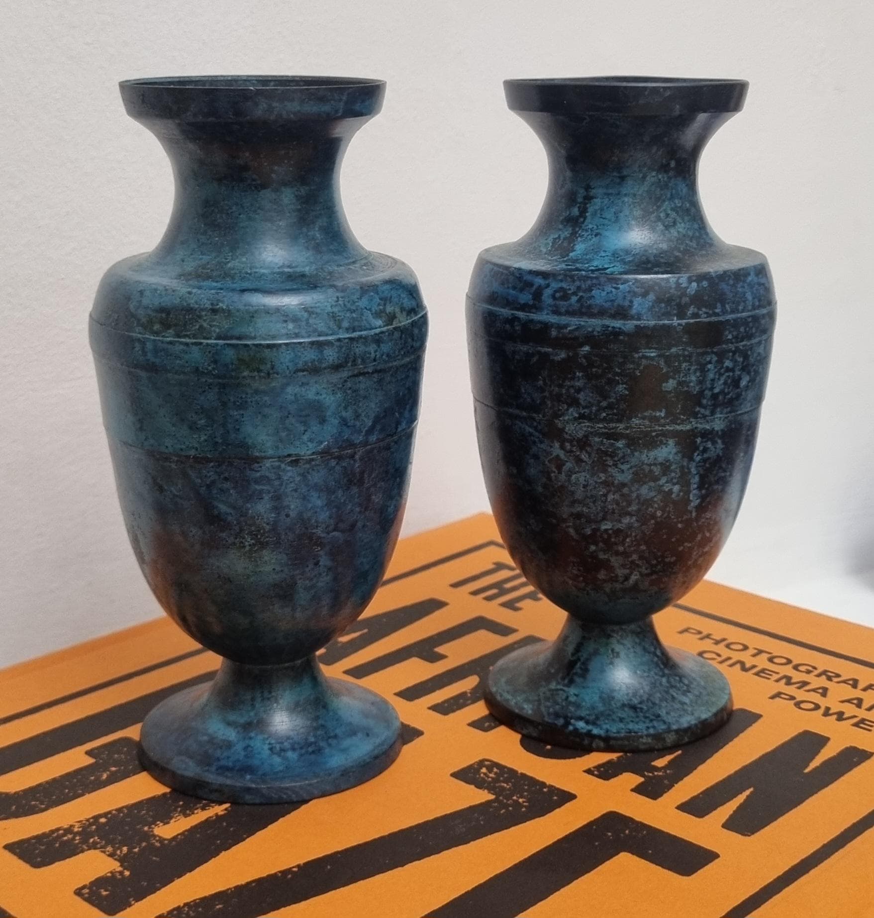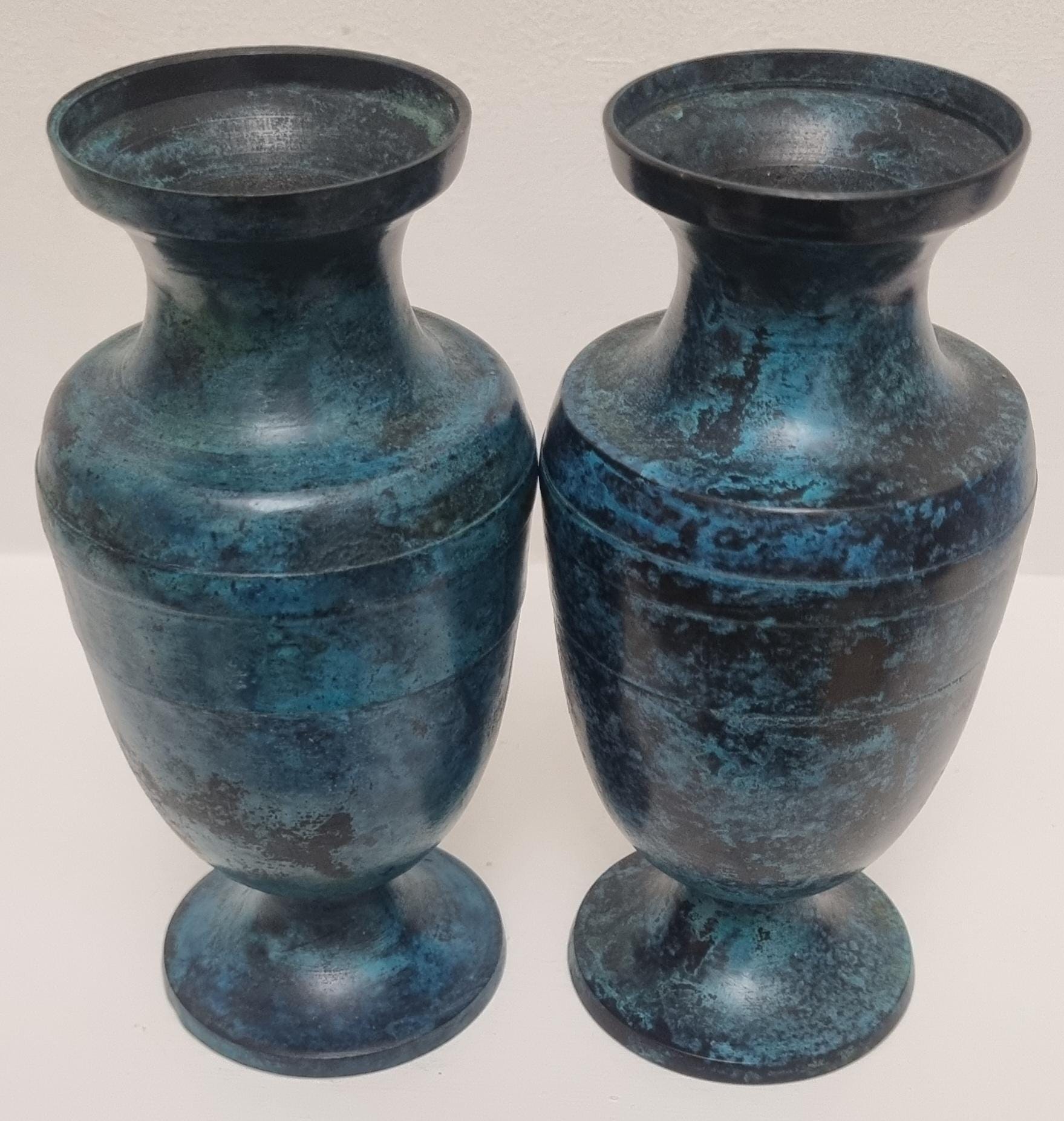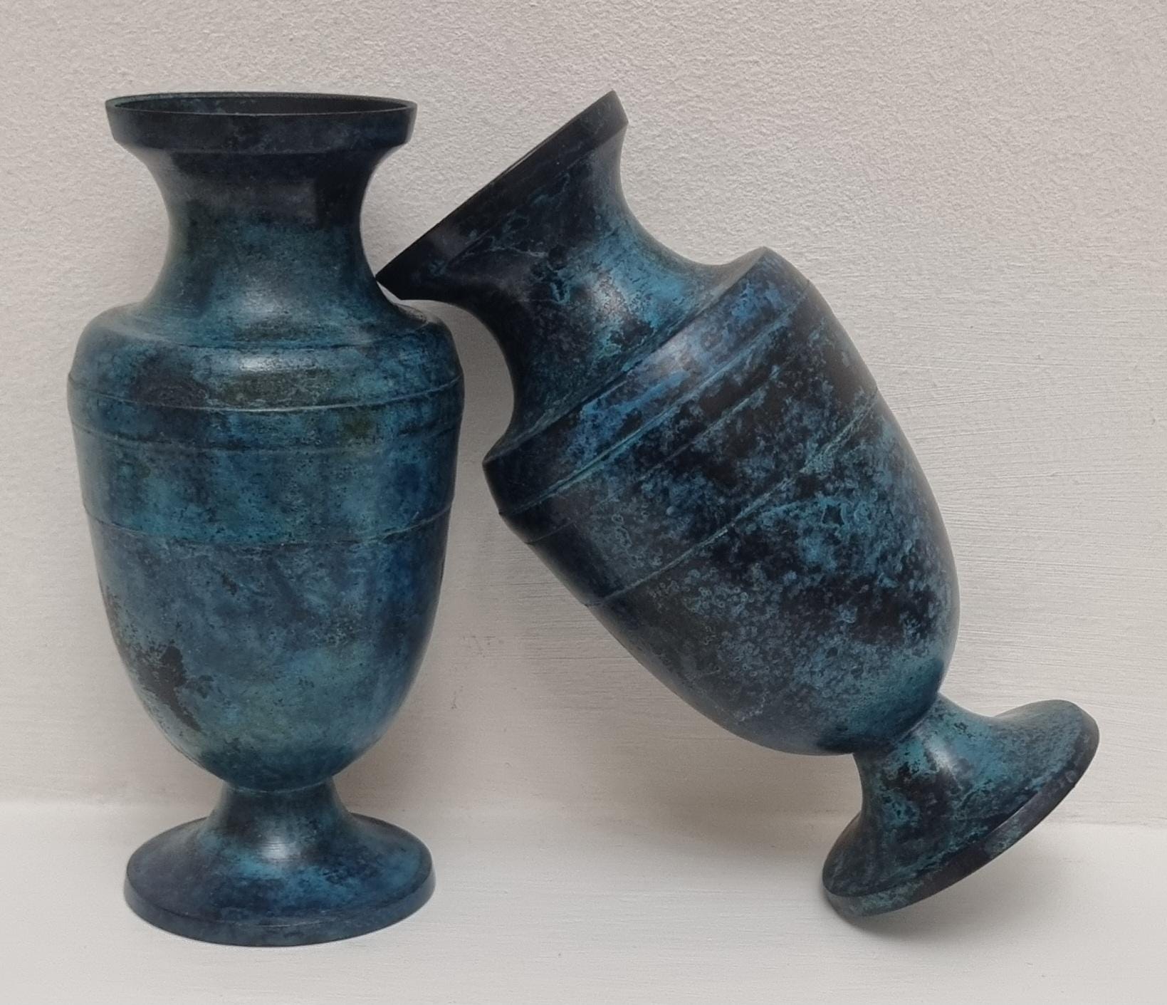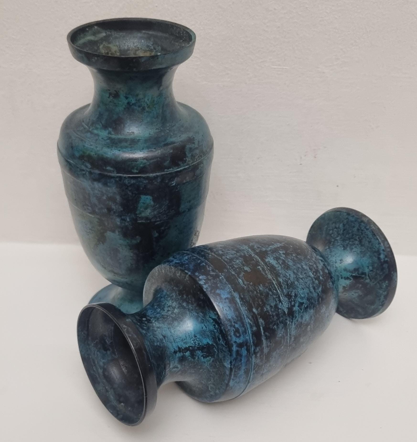 A pair of urn shaped brass vases, made in India. These would look fantastic in any setting.