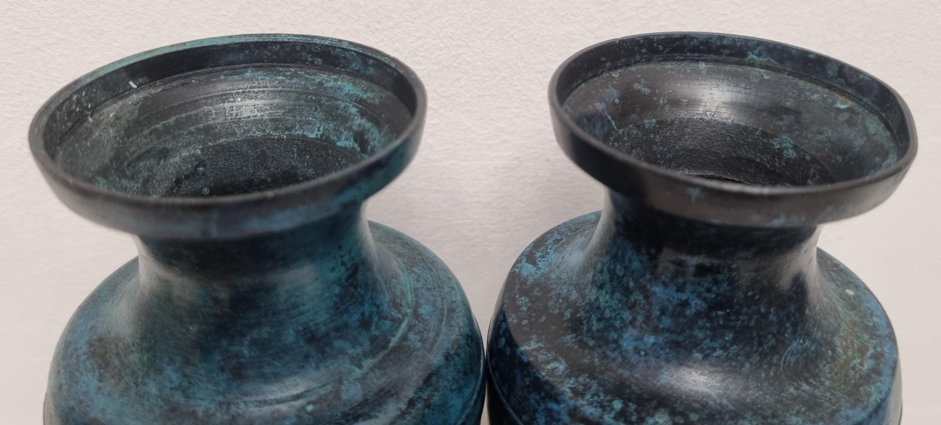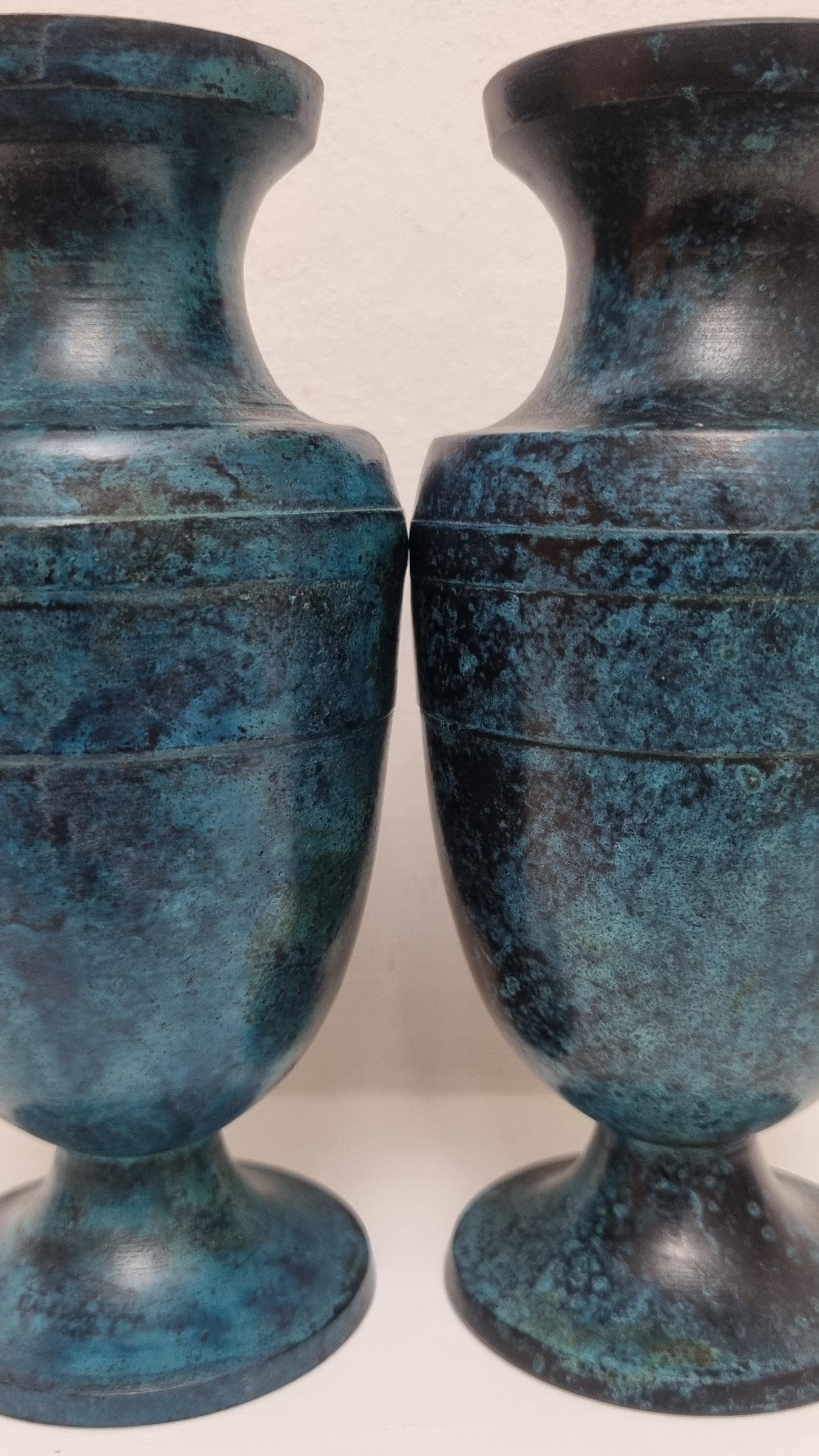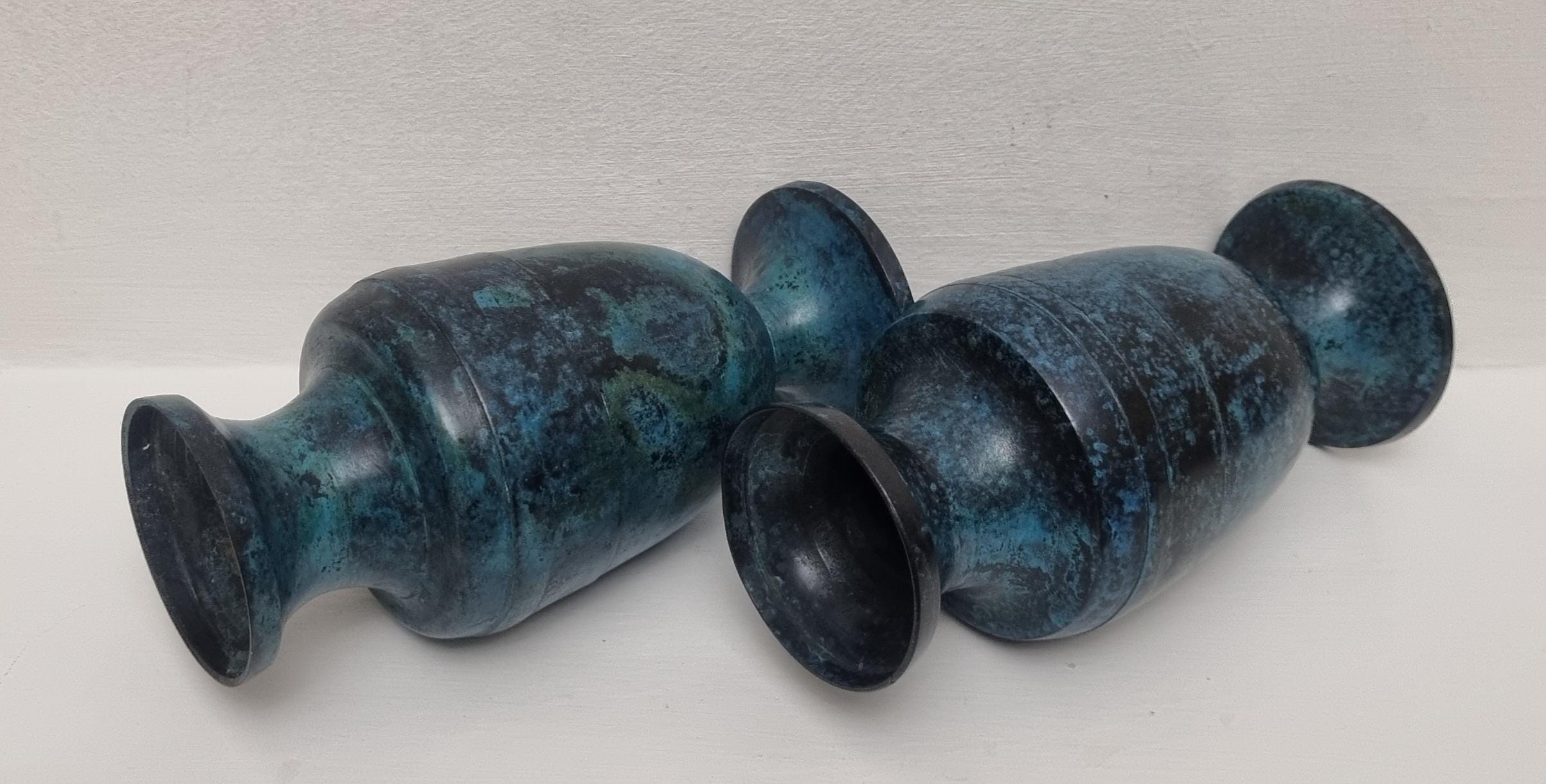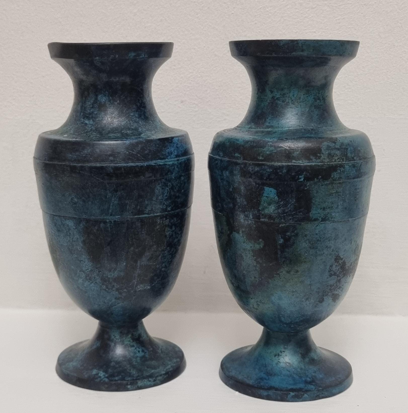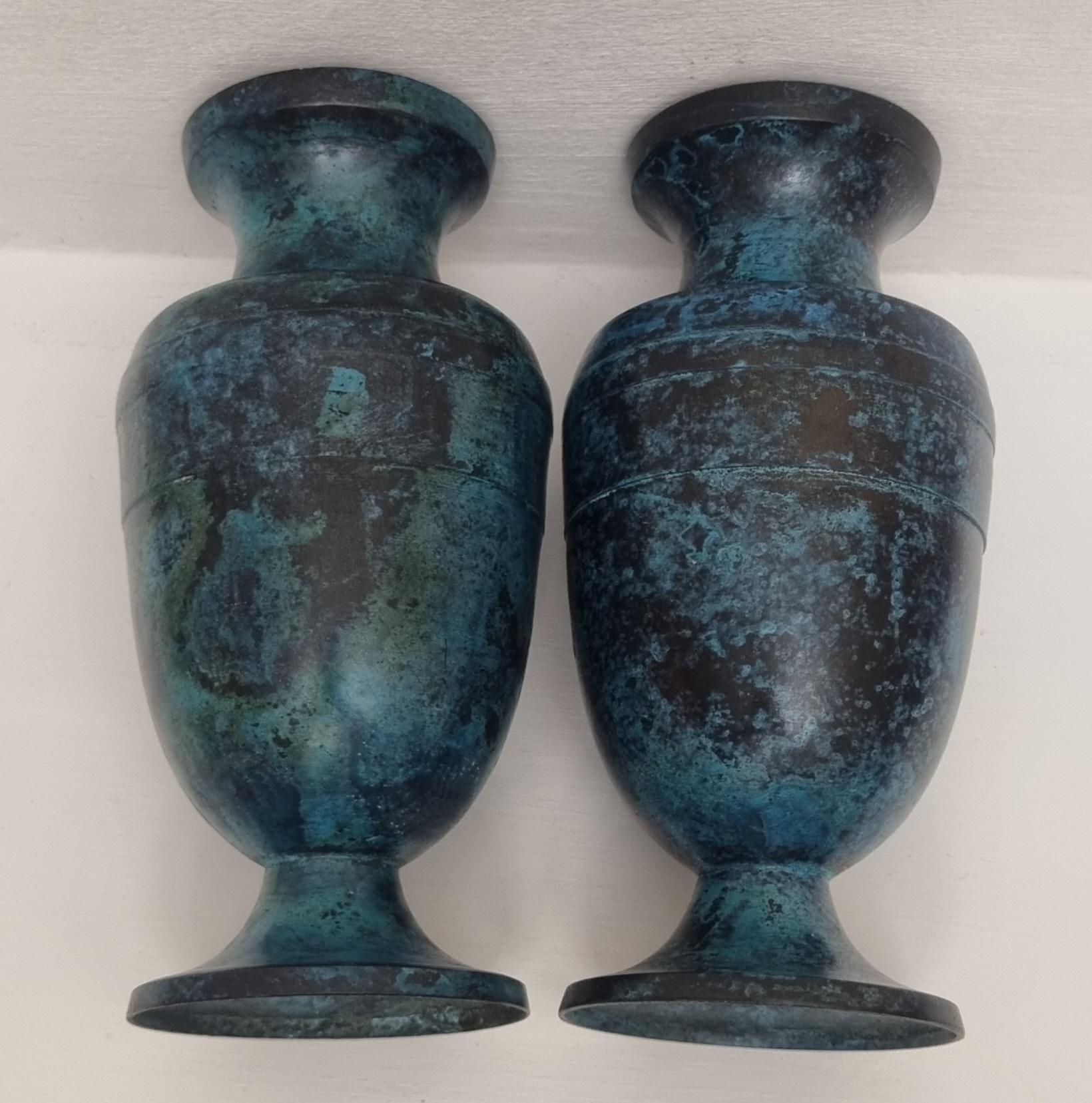 A pair of urn shaped brass vases, made in India. These would look fantastic in any setting.