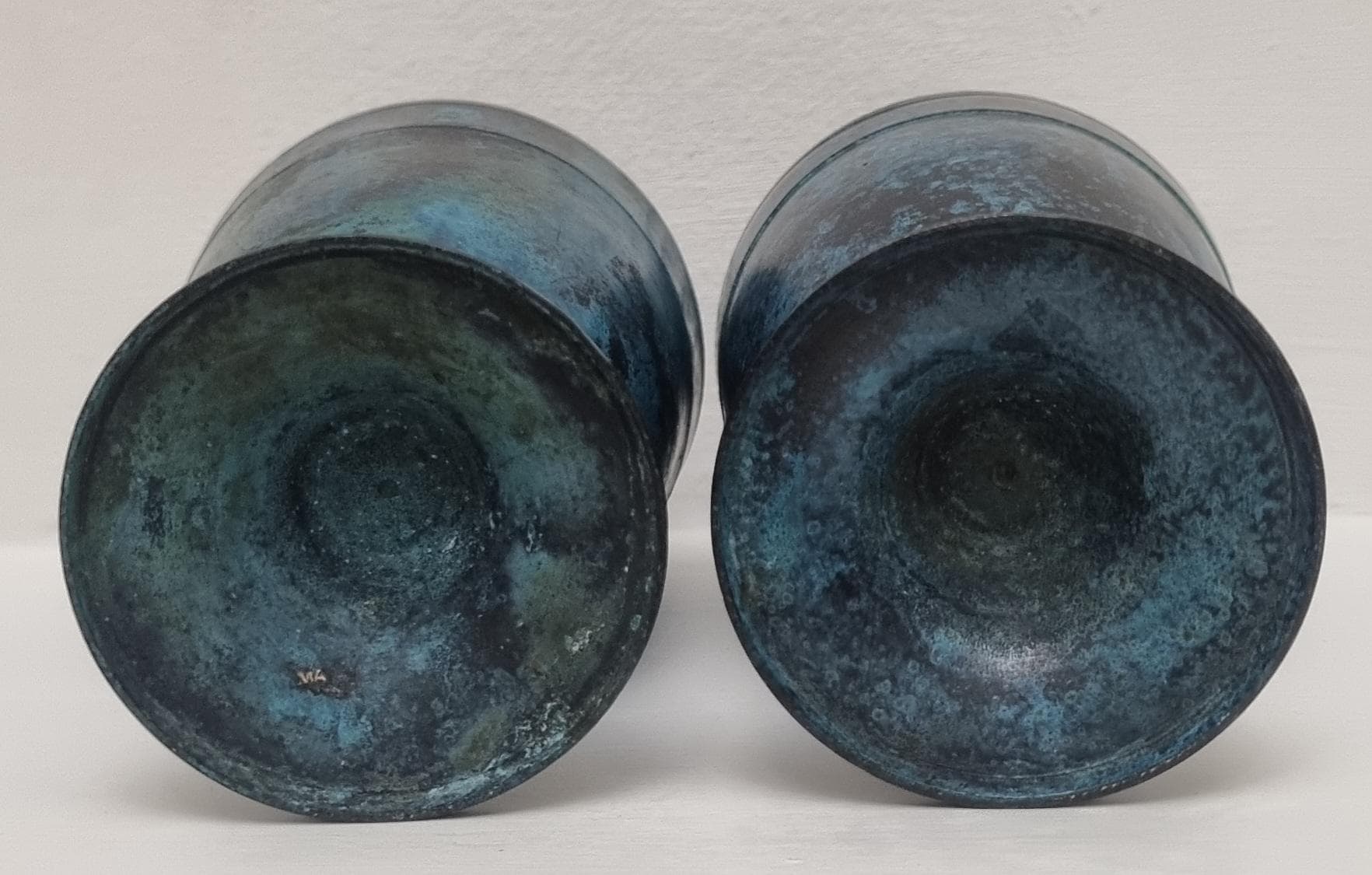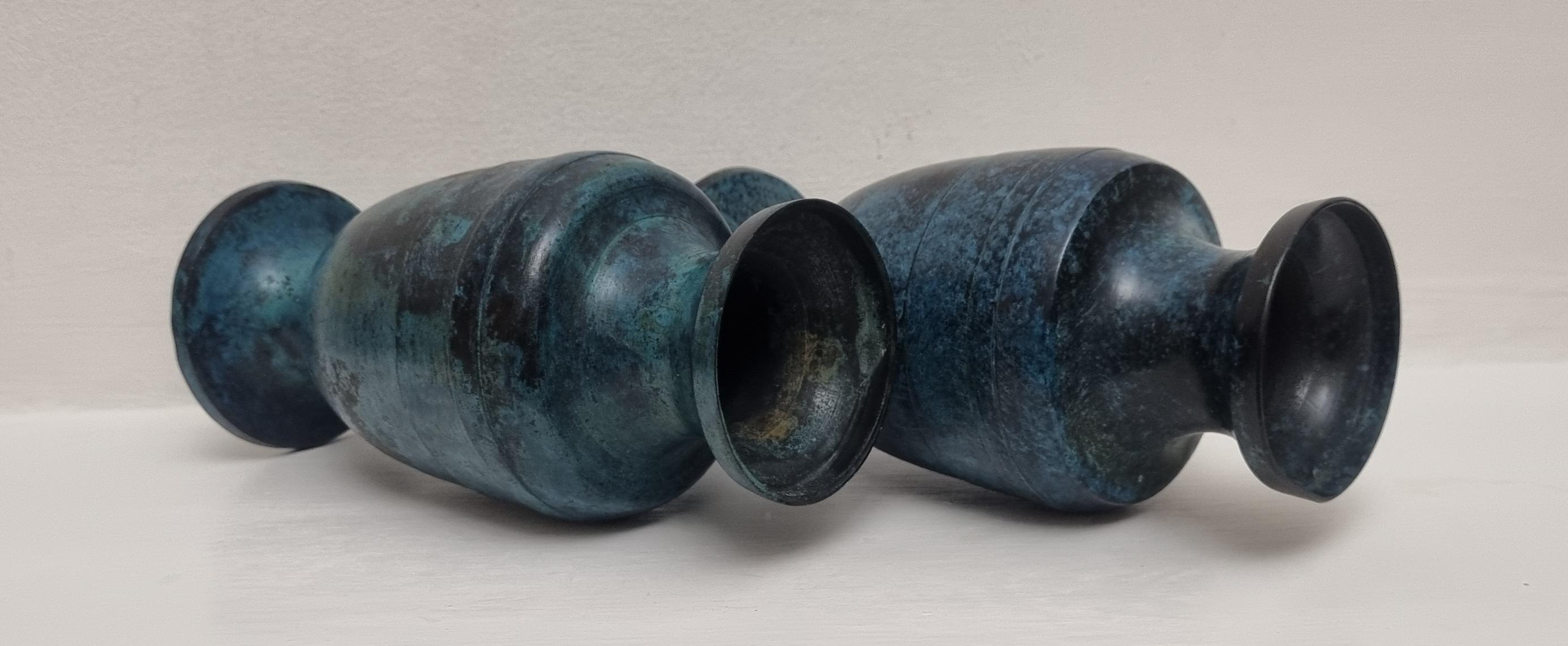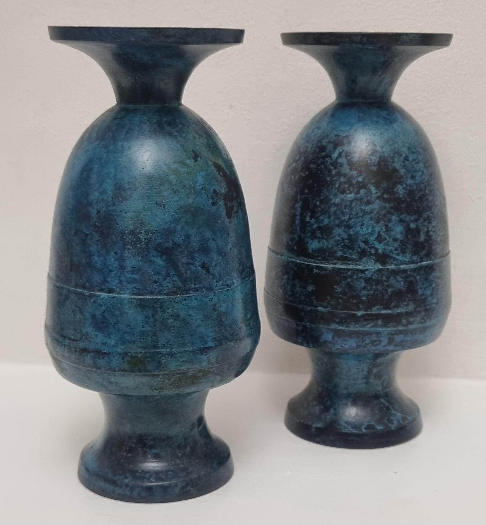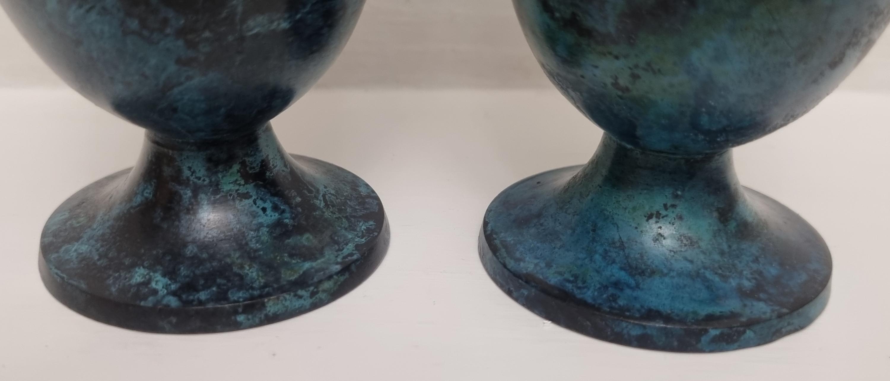 A pair of urn shaped brass vases, made in India. These would look fantastic in any setting.