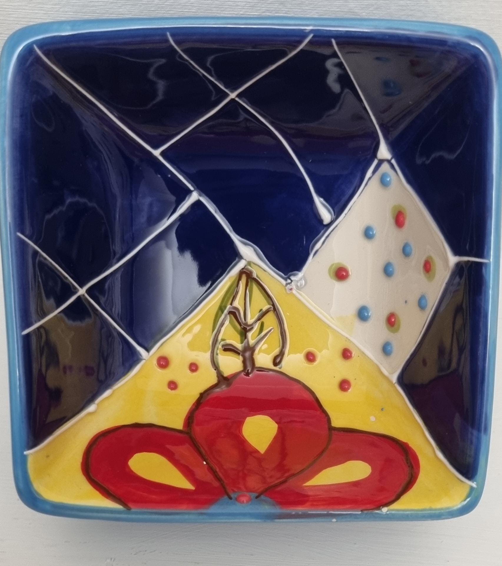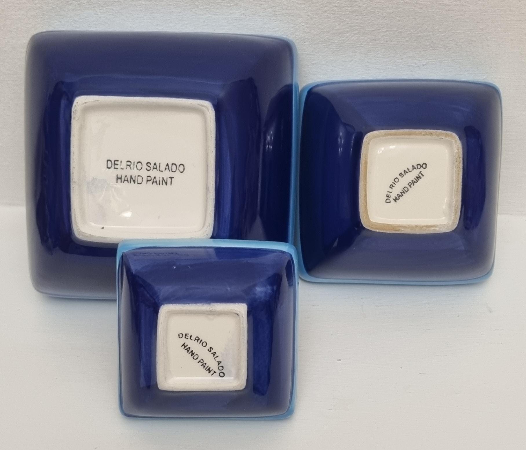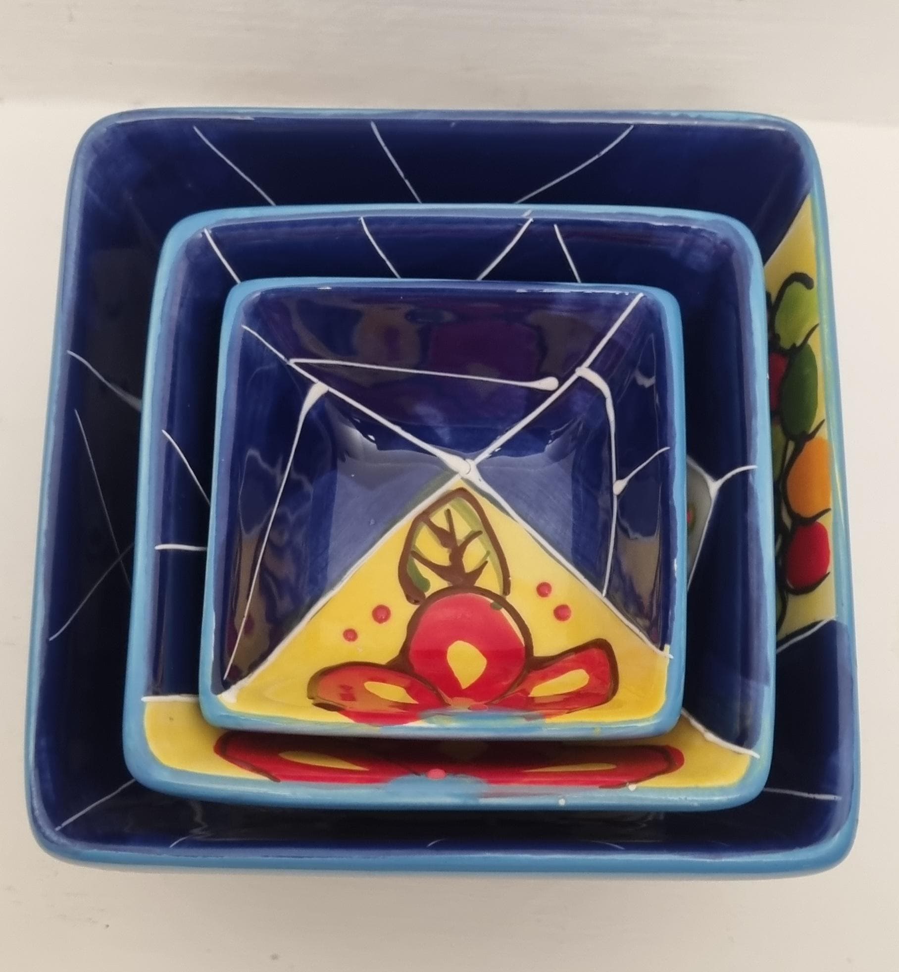 Fun brightly coloured hand-painted Ceramica Del Rio Salado Bowls. This set of 3 will be perfect for serving appetizers, tapas, salsas, candies, or nuts.