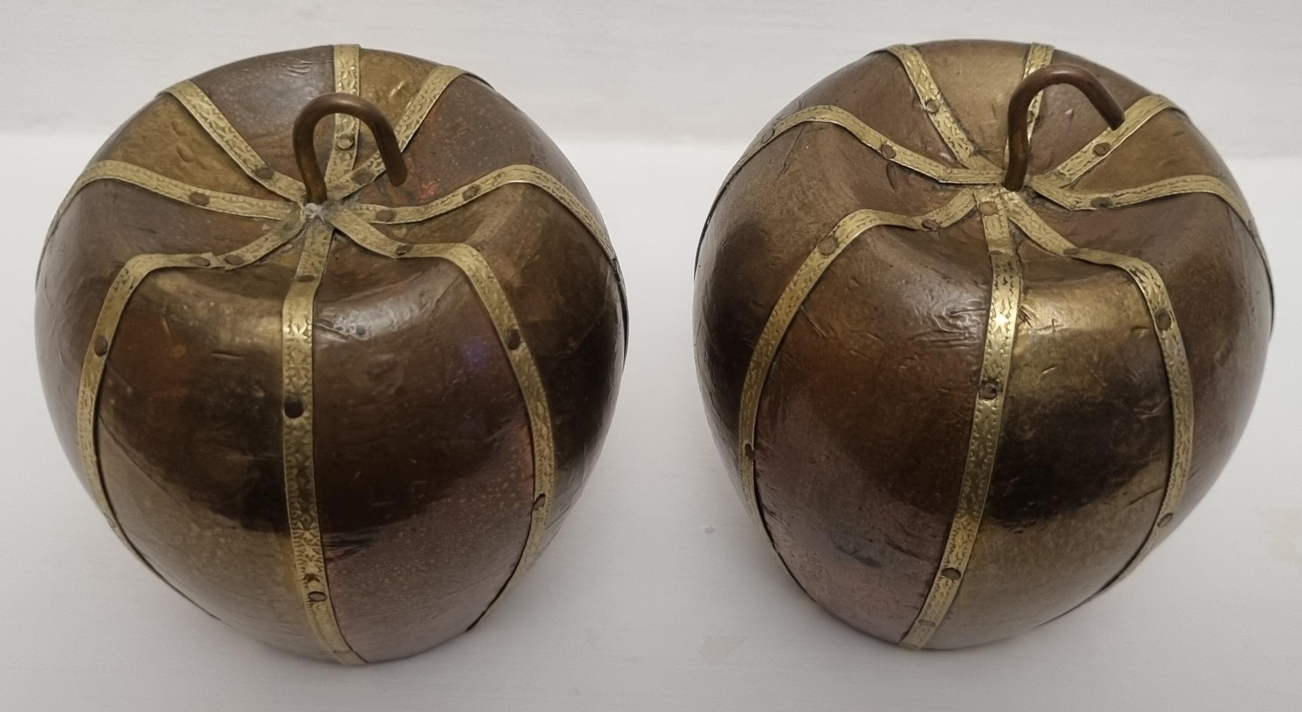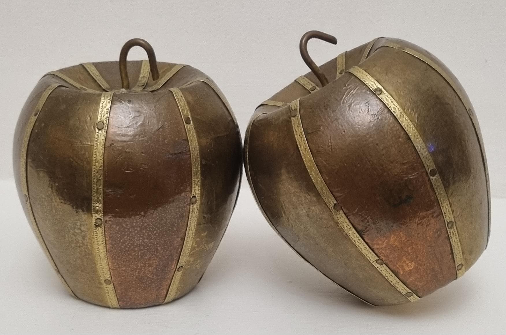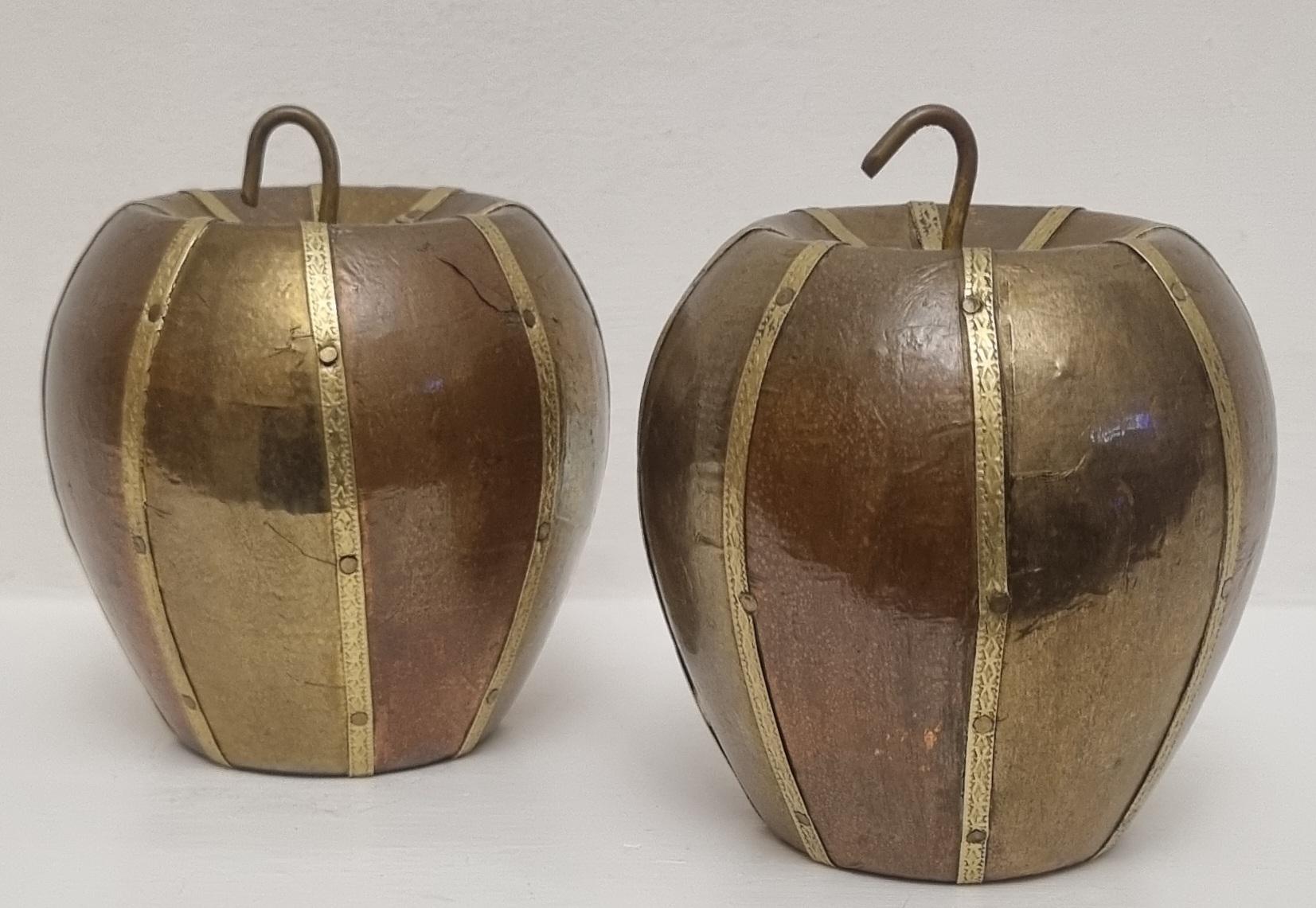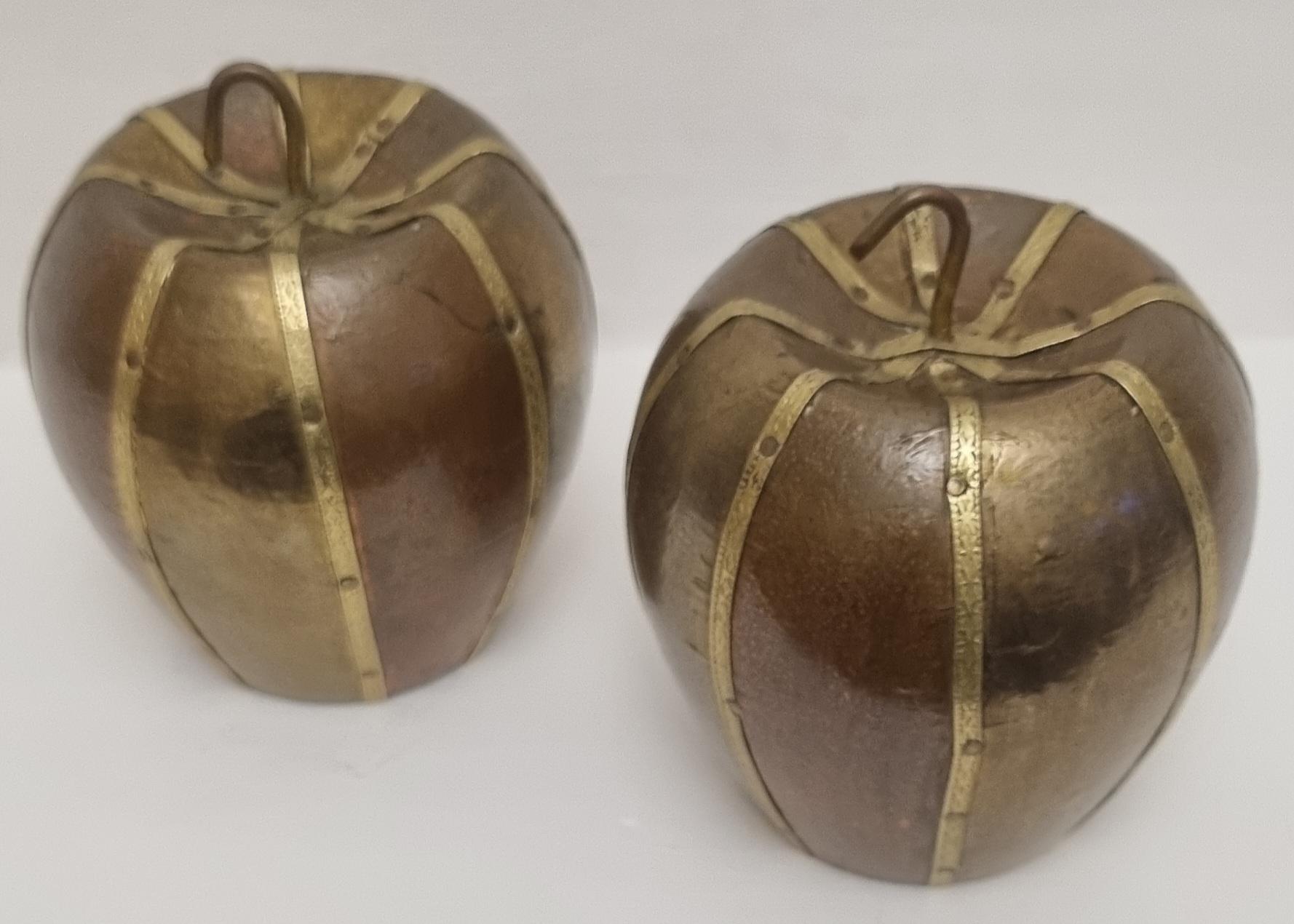 A set of 2 charming and well made carved and covered in brass and copper apple sculptures/ornaments. very decorative and highly collectible.