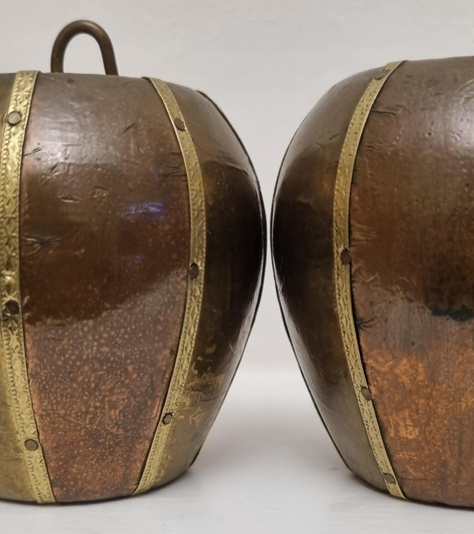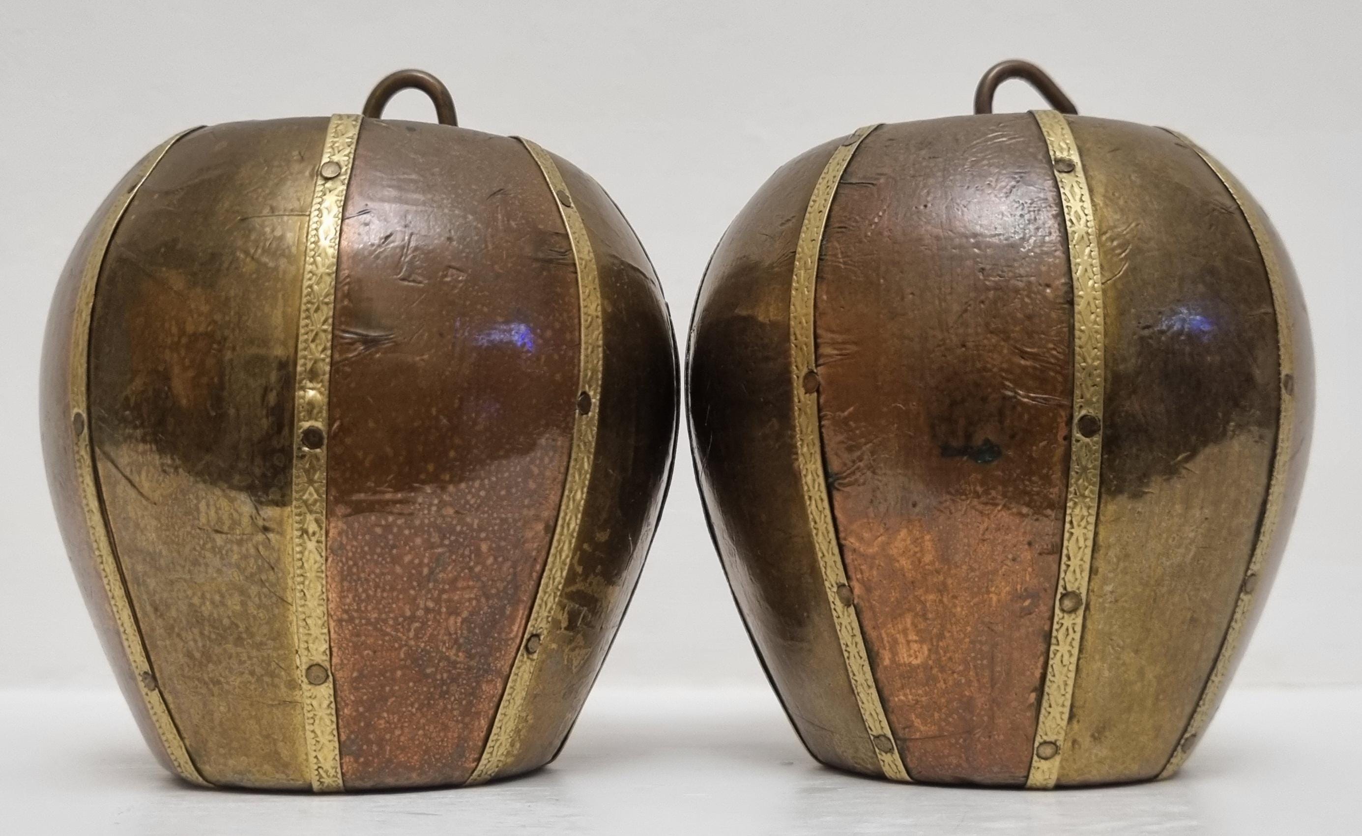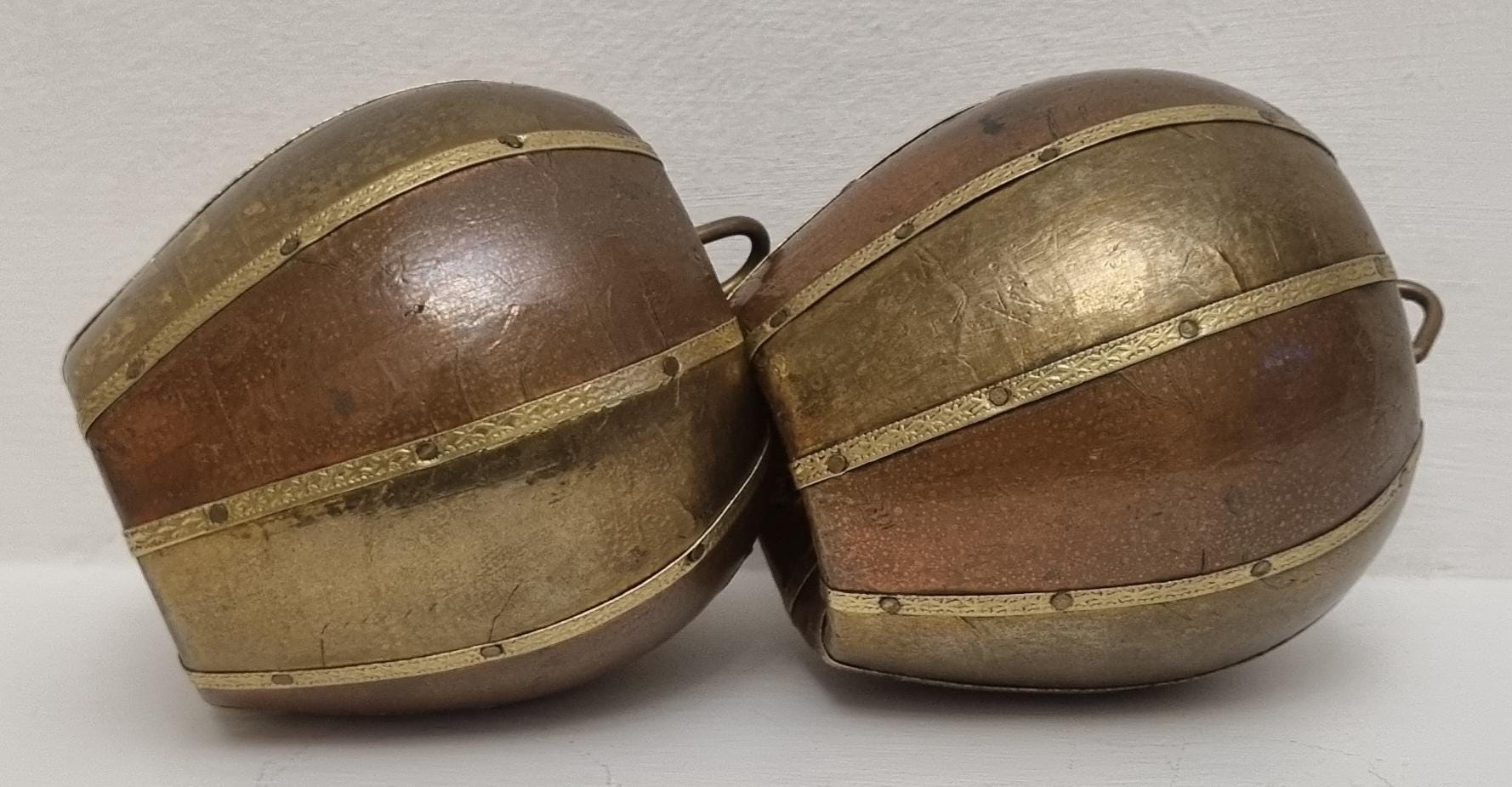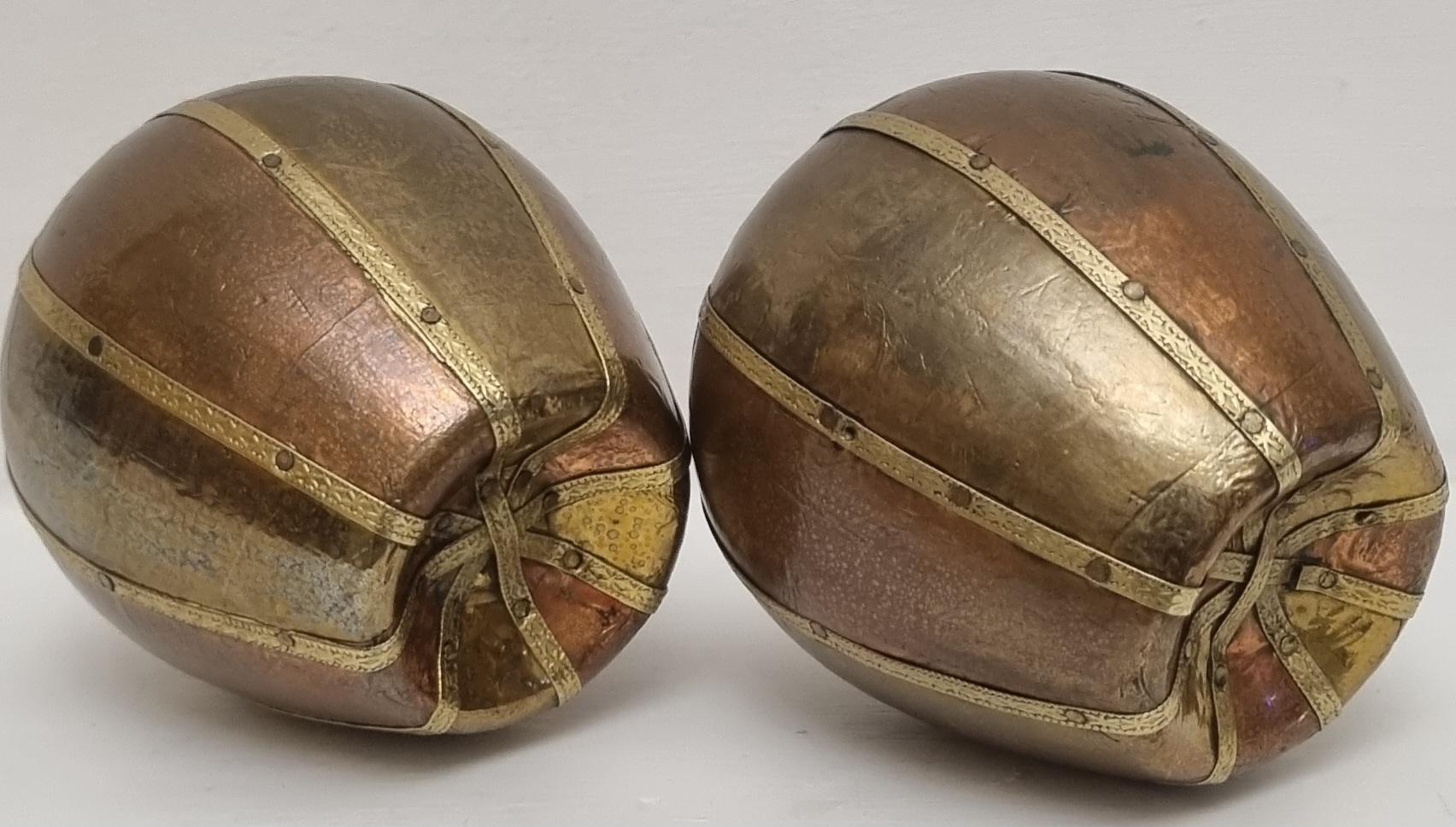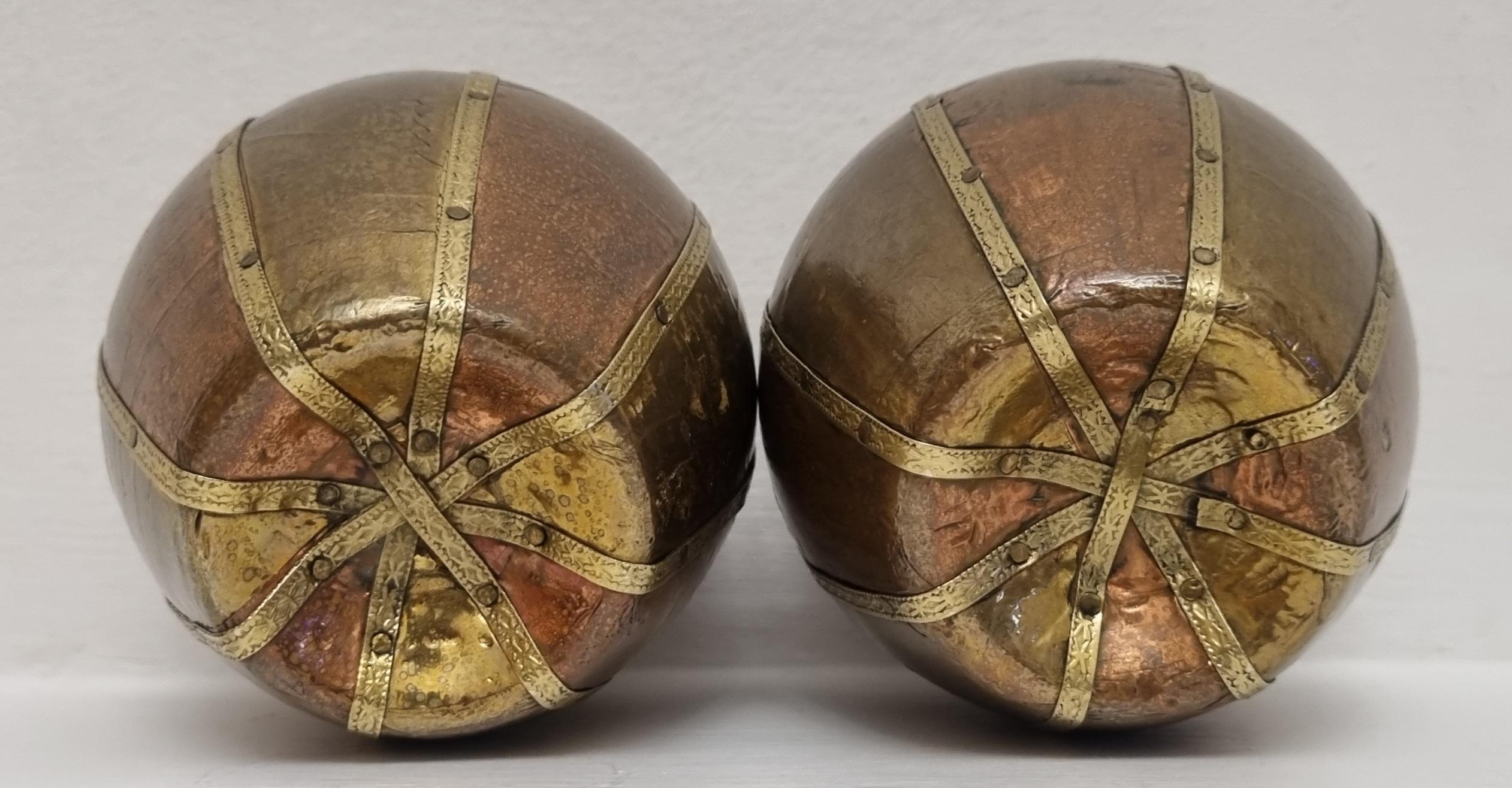 A set of 2 charming and well made carved and covered in brass and copper apple sculptures/ornaments. very decorative and highly collectible.