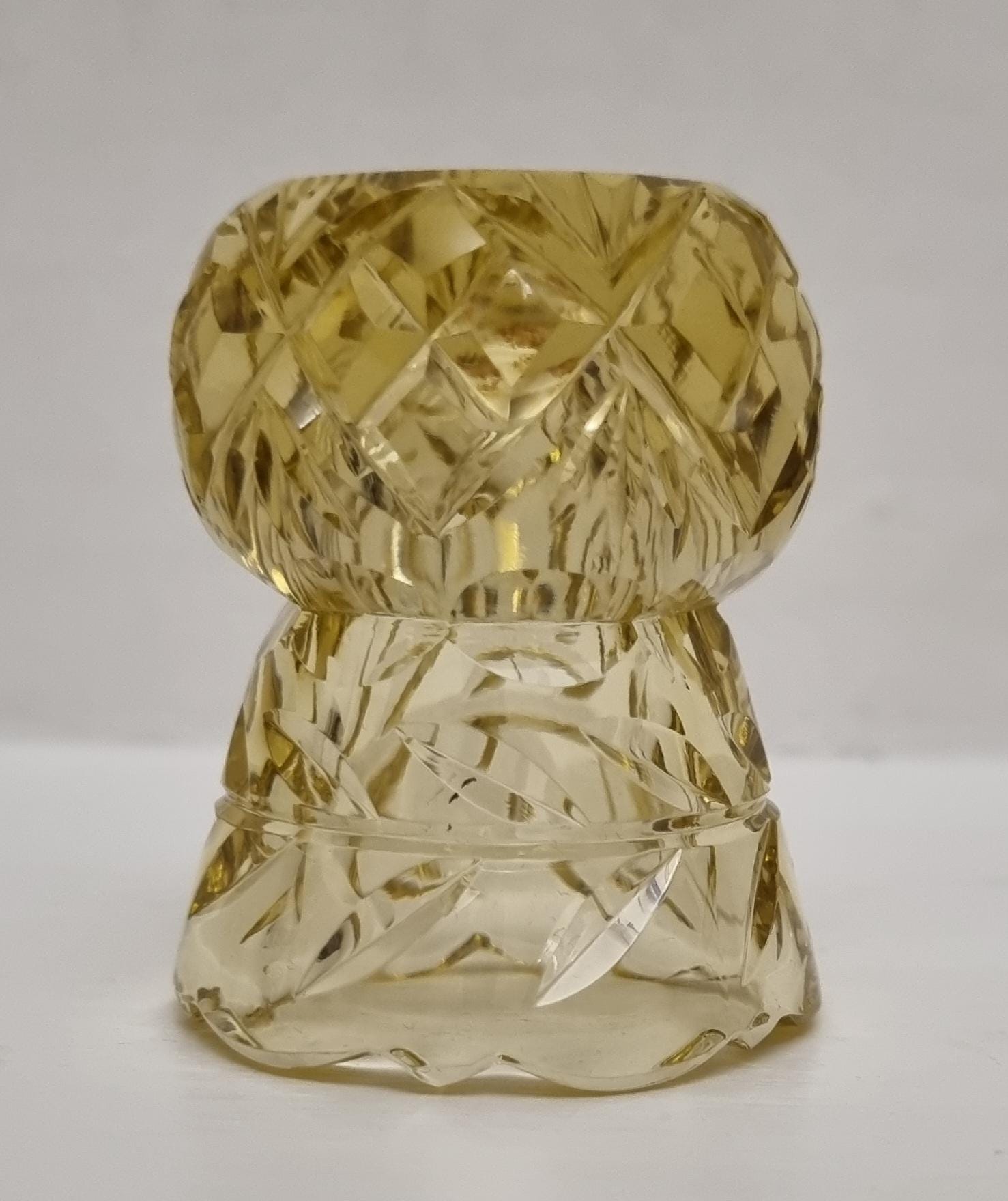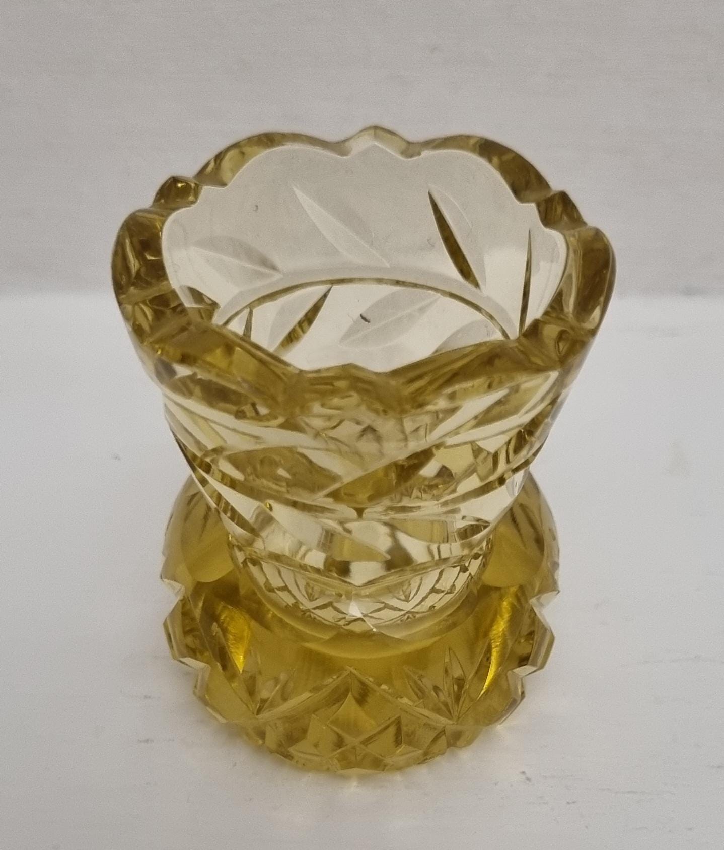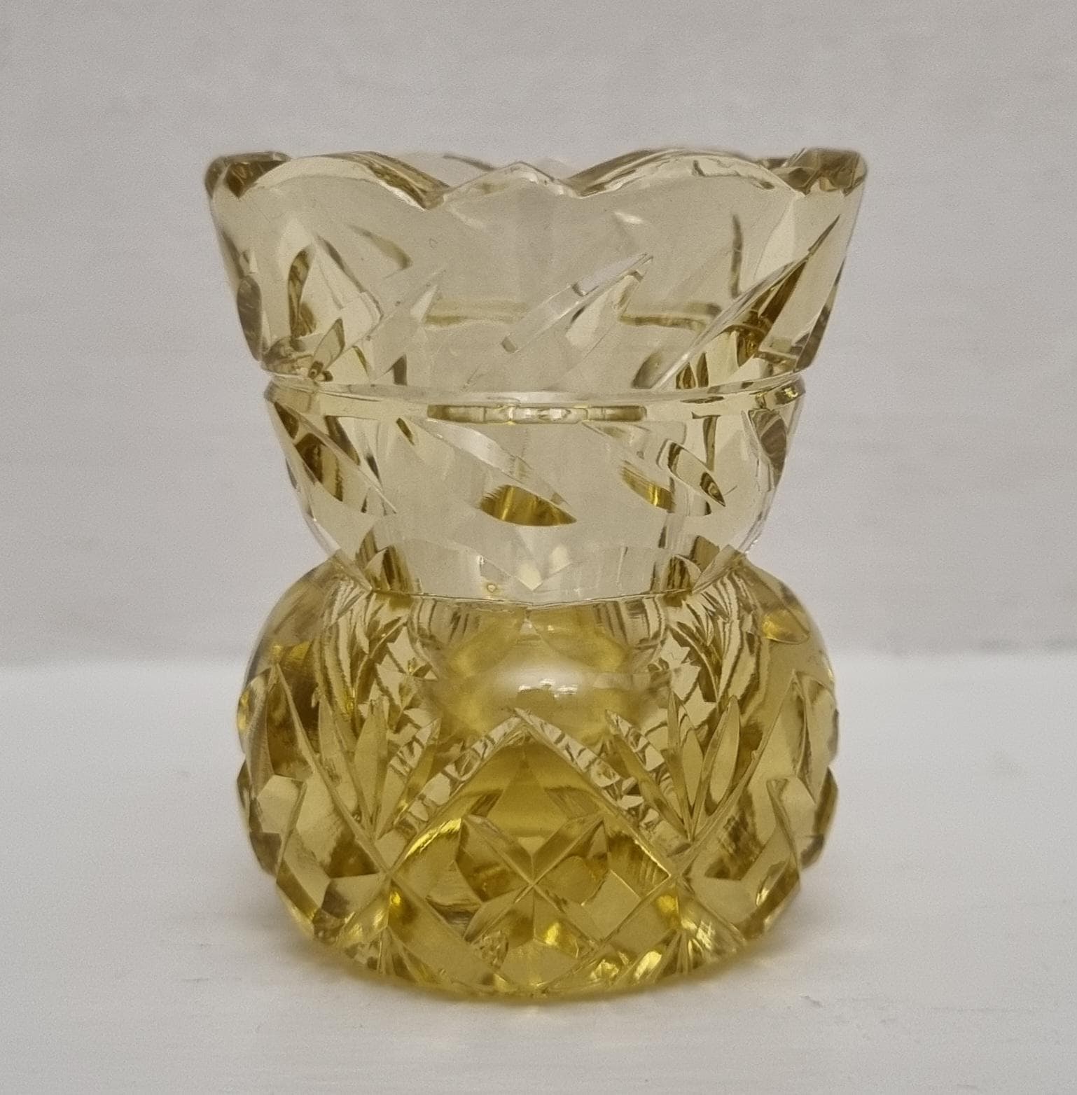 A charming piece of vintage Czech Bohemian cut crystal thistle vase....can also be used as a candle or toothpick holder.