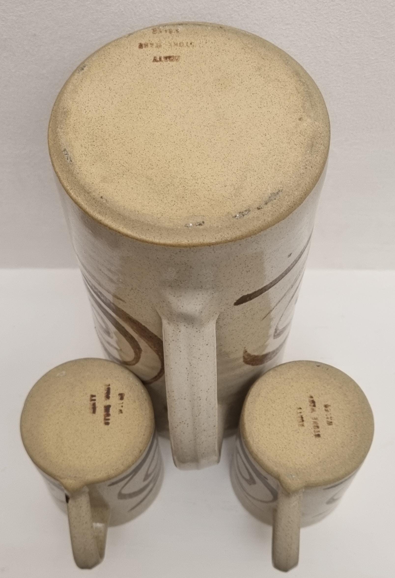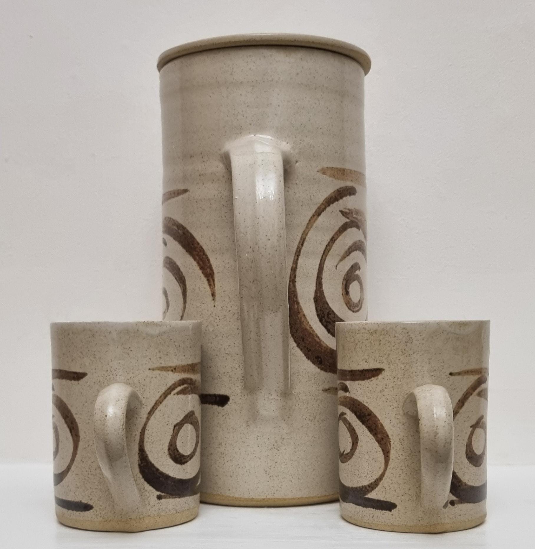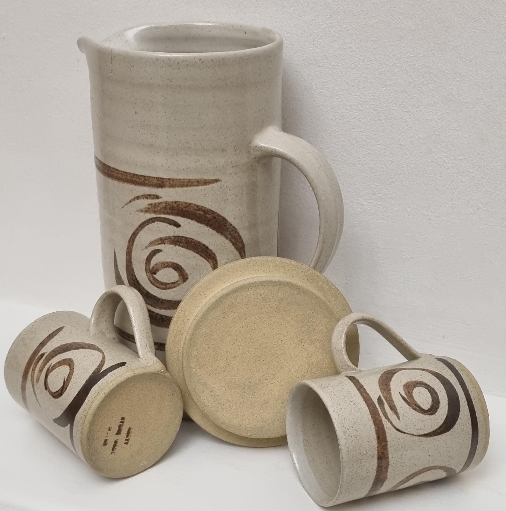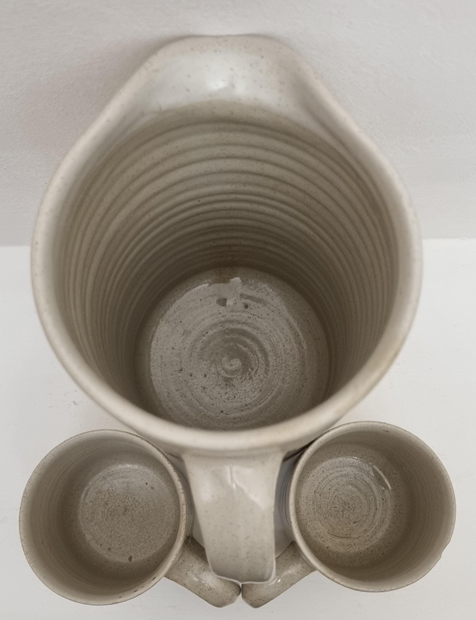 Pre-owned and in good condition, but one mug has a chip on the outside and the jug has an unfortunate hairline crack starting from the rim.. Please refer to the last 3 images for more details.