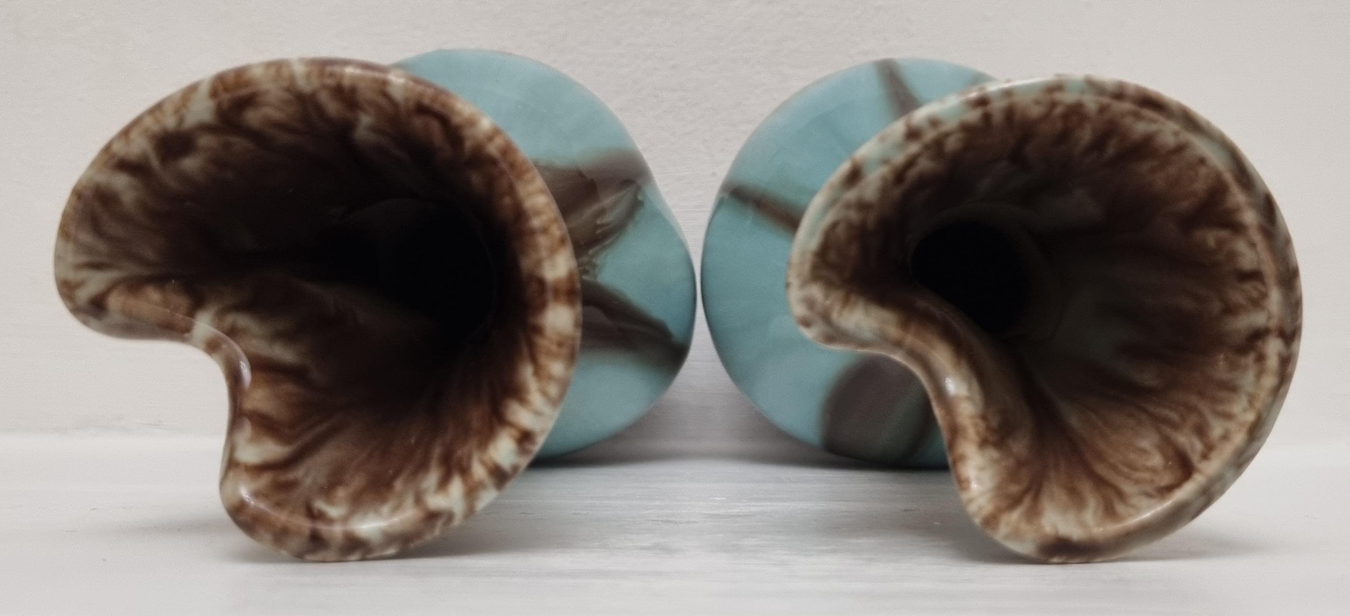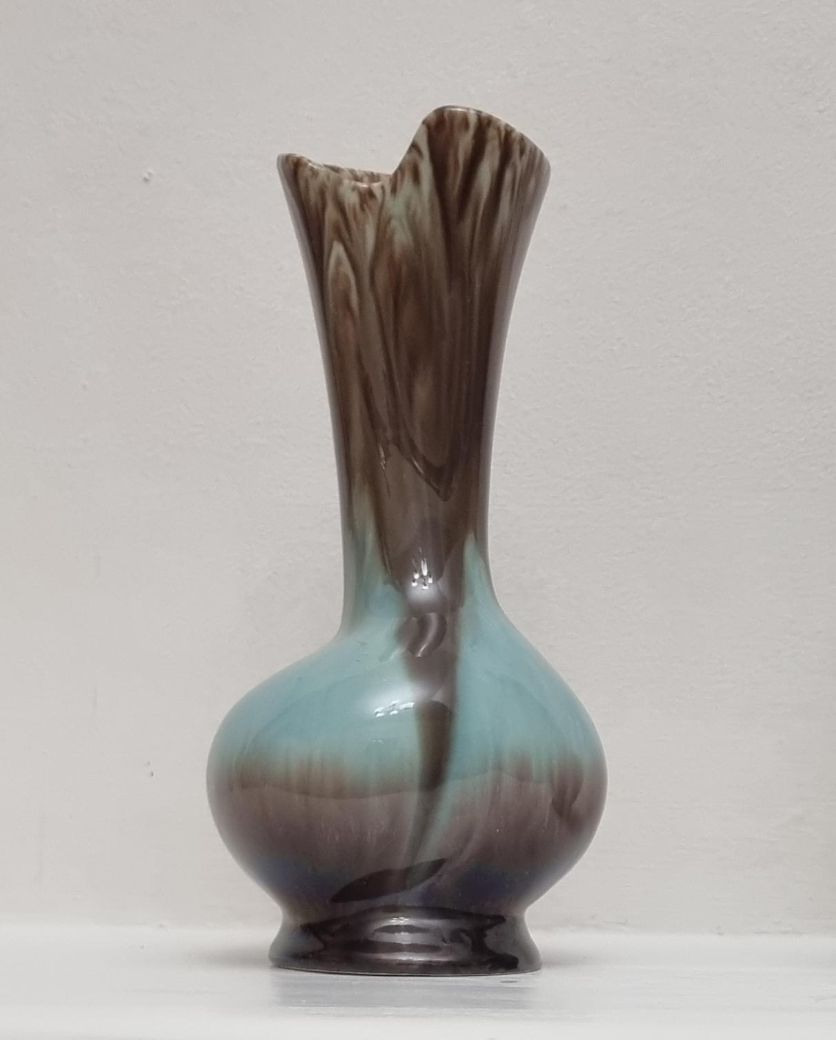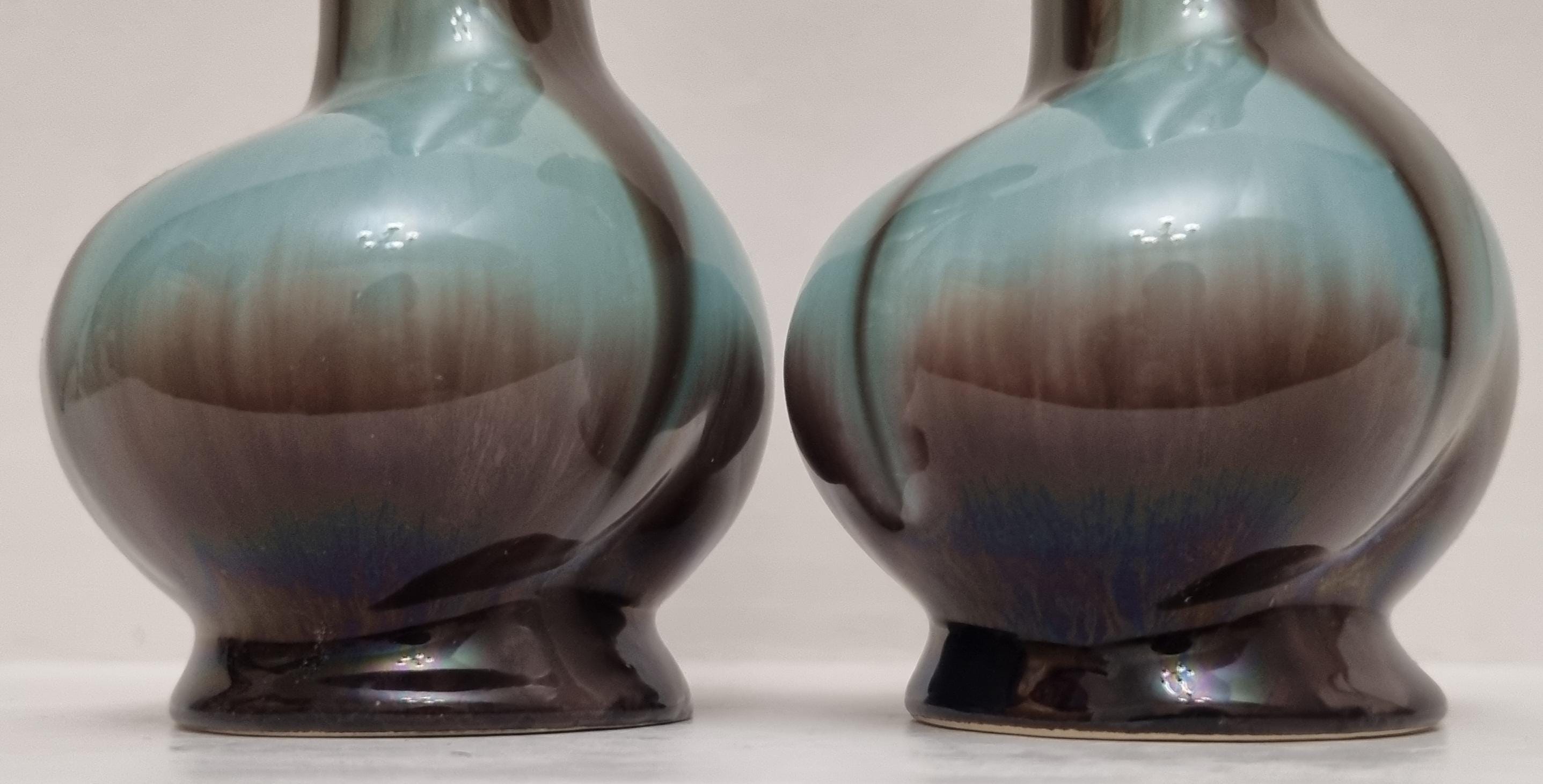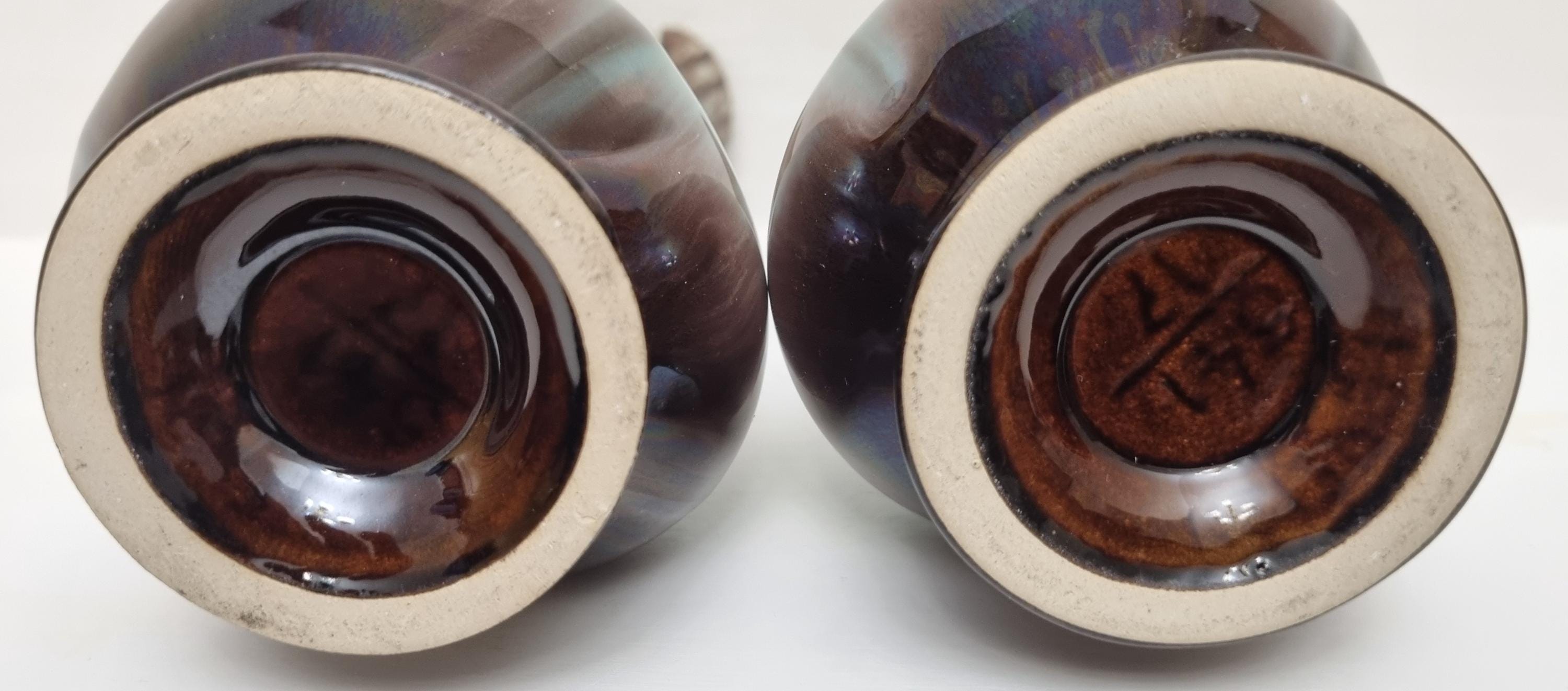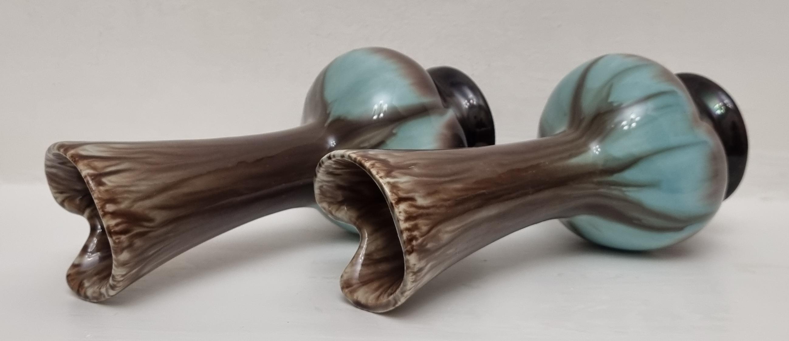 A pair of MCM West German Pottery Ceramic brown drip glaze long neck vases. Model 541 17.