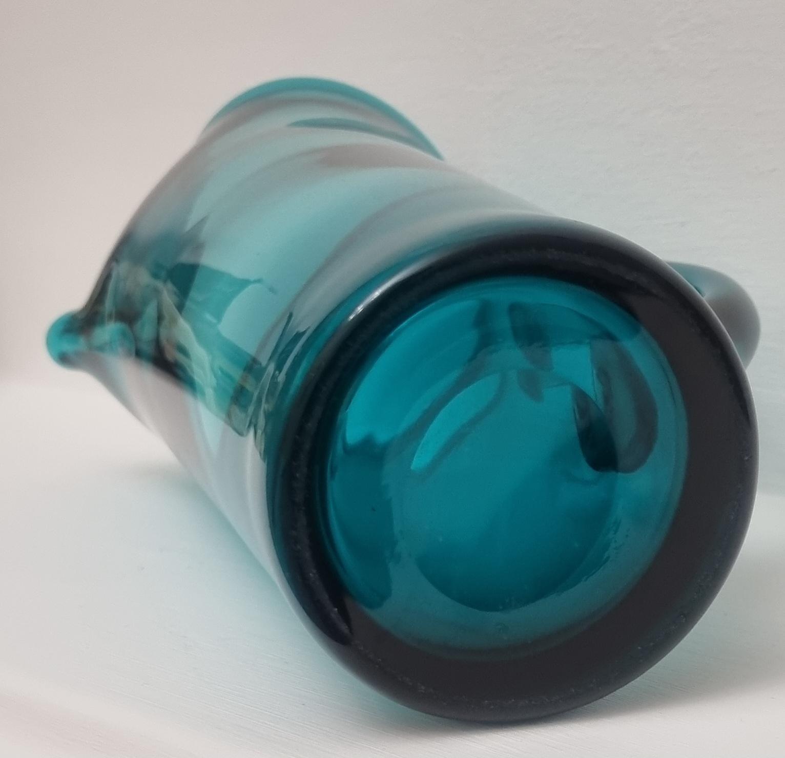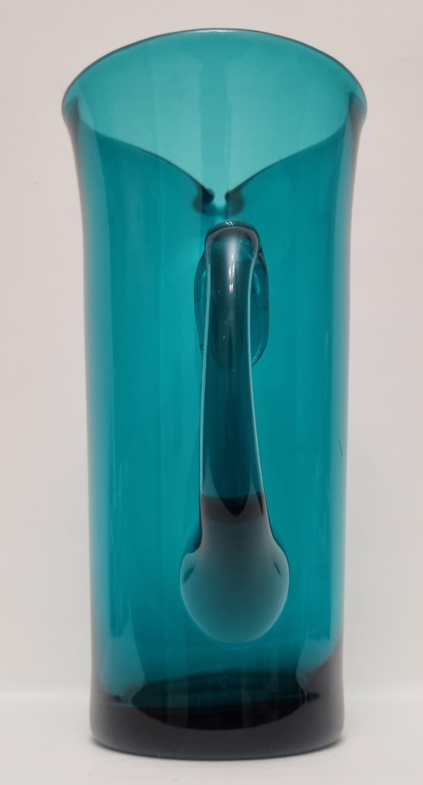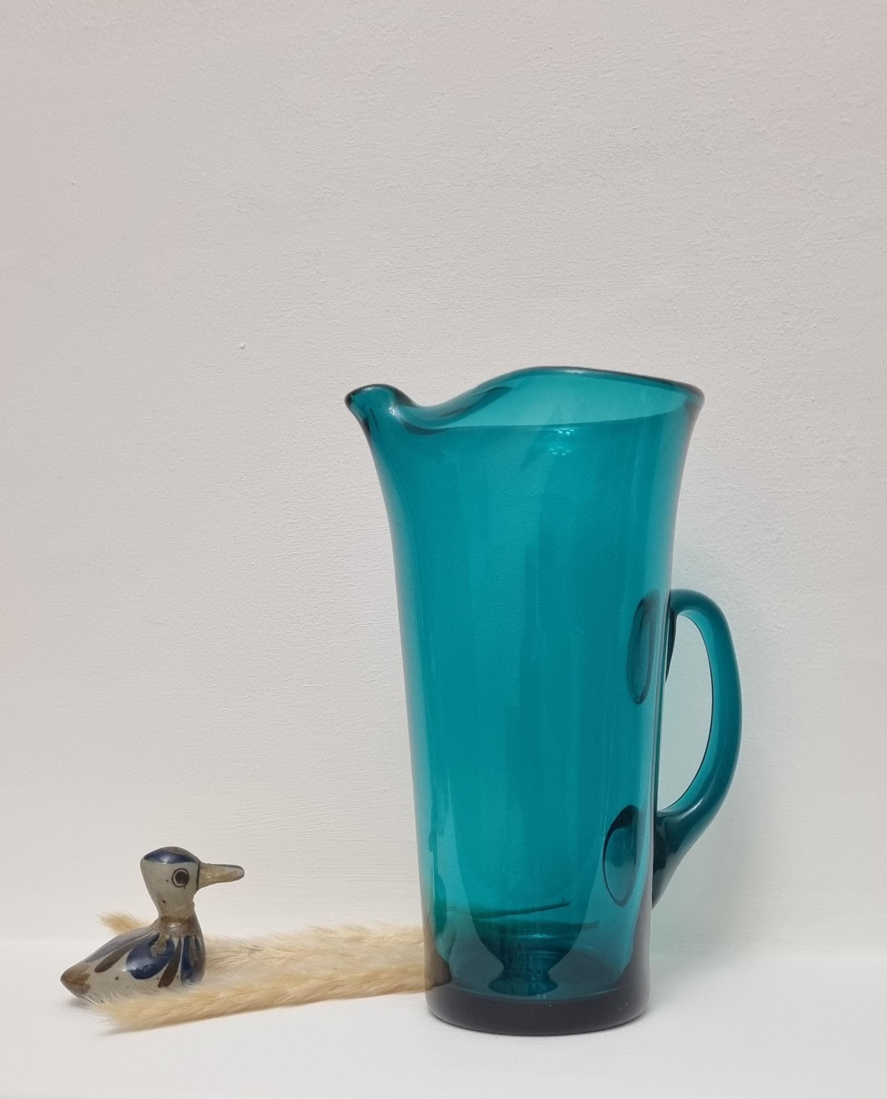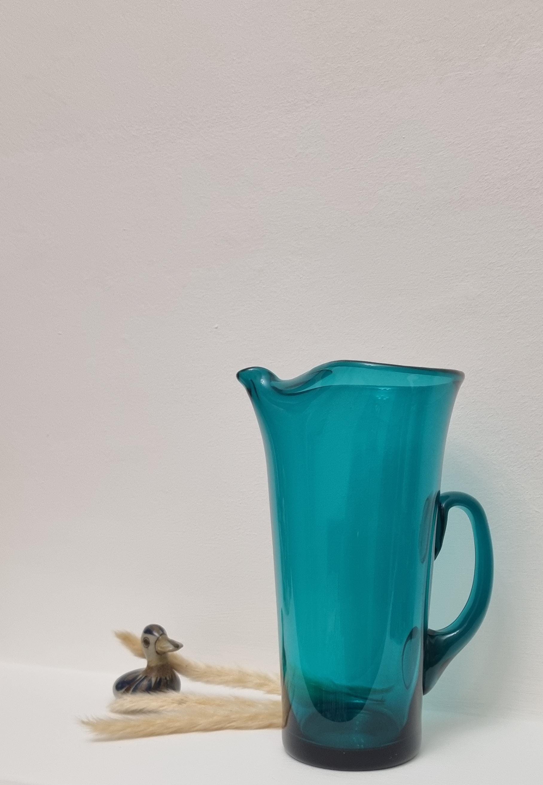 Striking MCM Danish Holmegaard glass pitcher, designed by Per Lutken in a stunning rich turquoise-green colour. This piece would look stunning, whether used in a bar, table setting or simply just displayed as an art object.