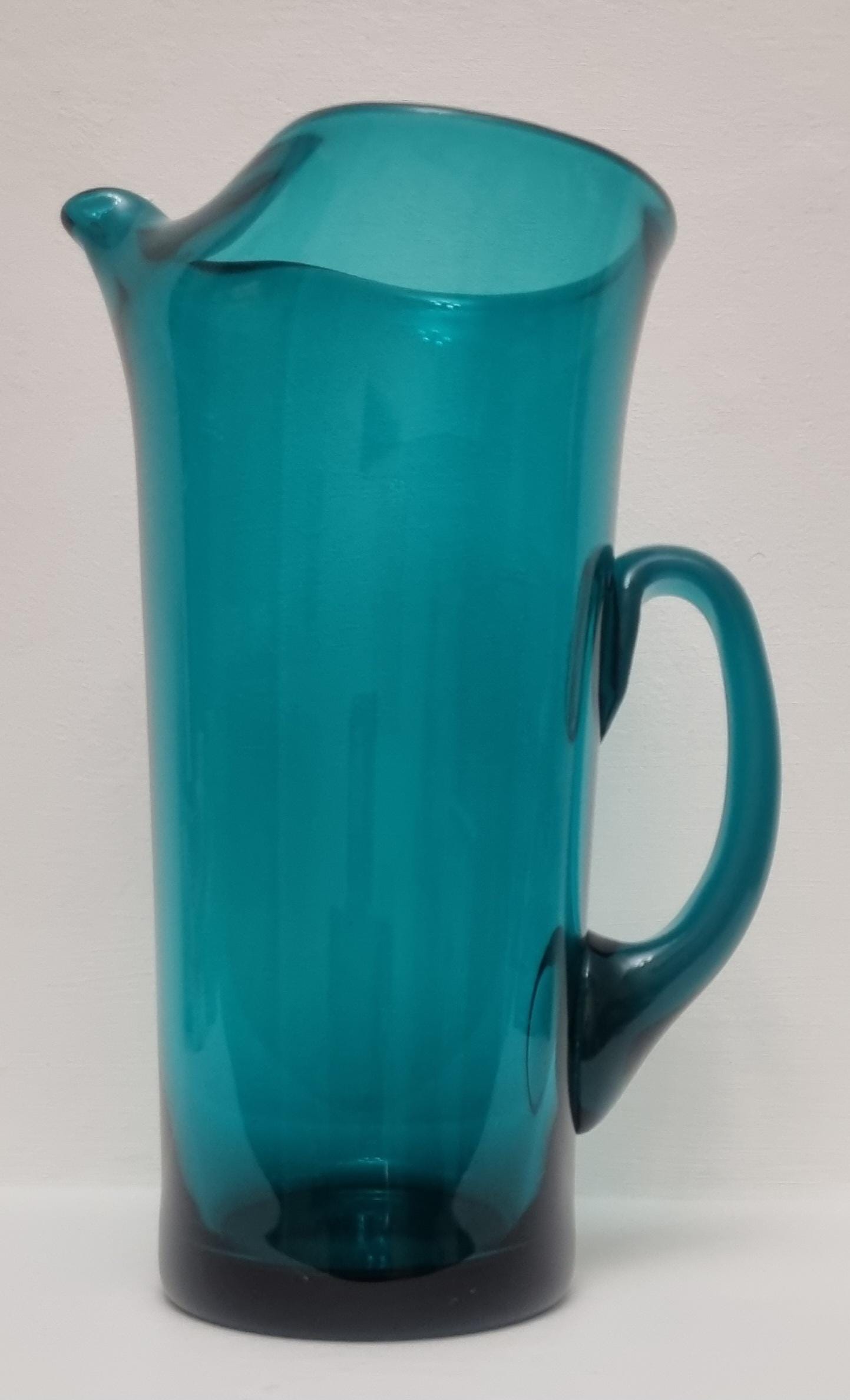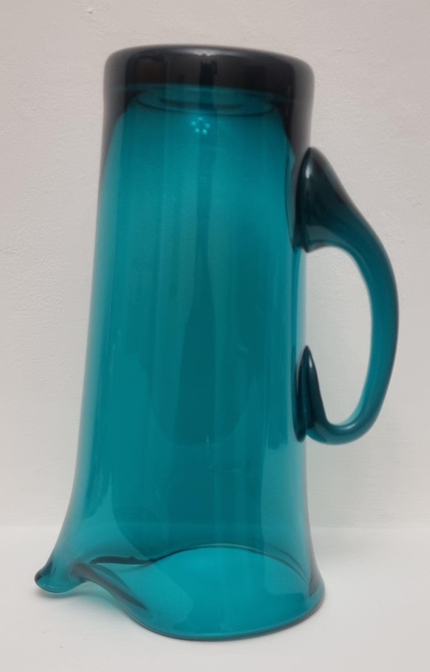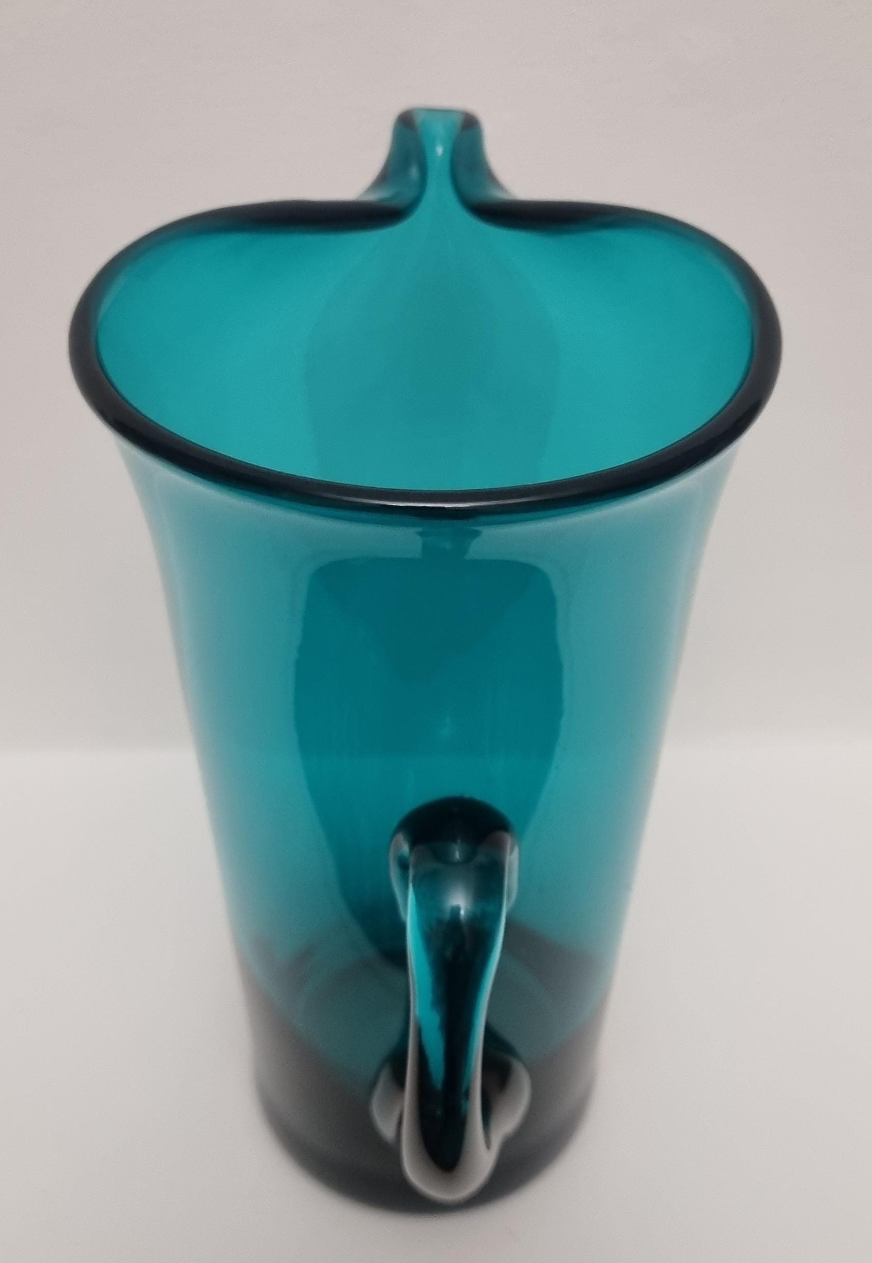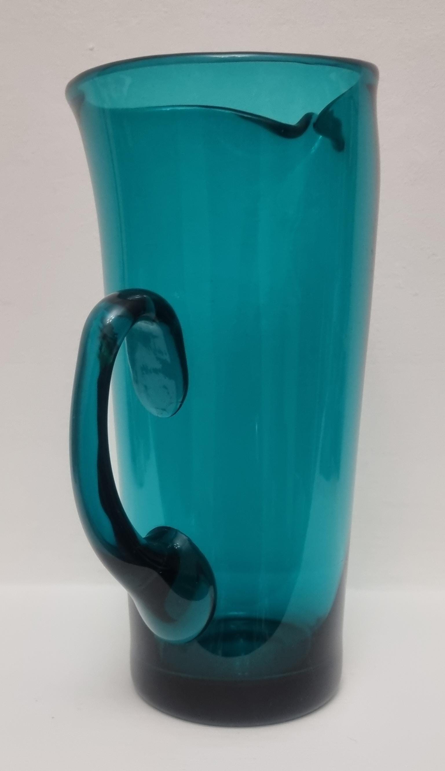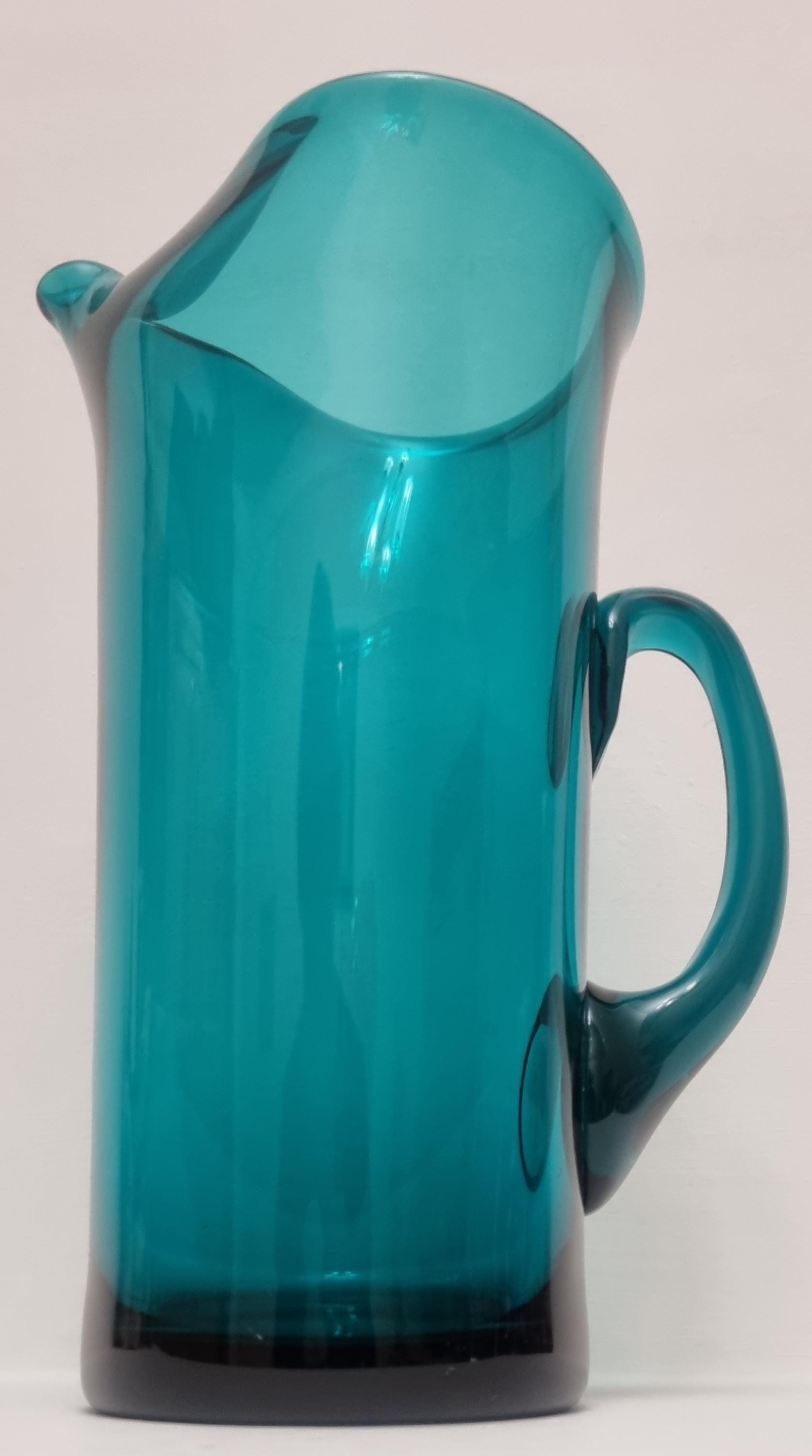 Striking MCM Danish Holmegaard glass pitcher, designed by Per Lutken in a stunning rich turquoise-green colour. This piece would look stunning, whether used in a bar, table setting or simply just displayed as an art object.