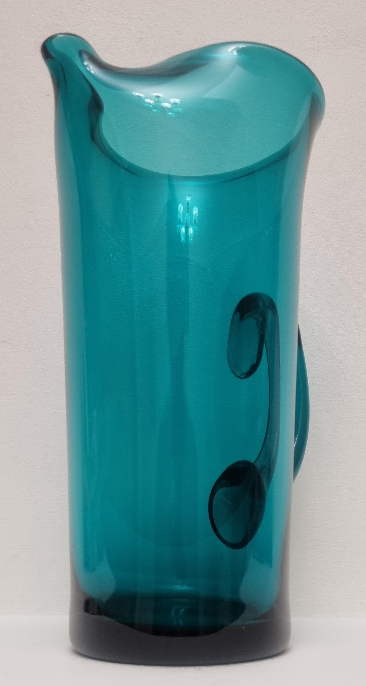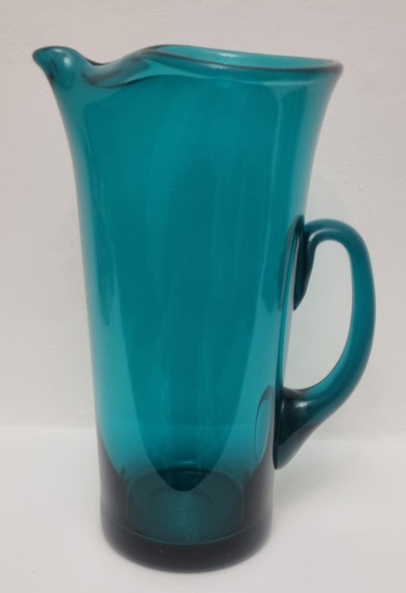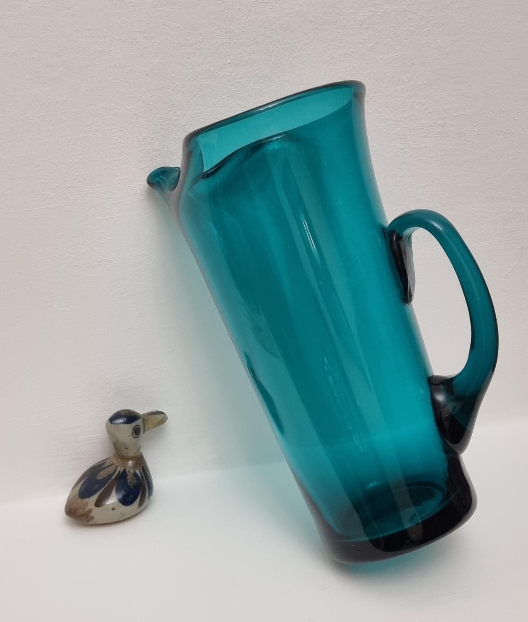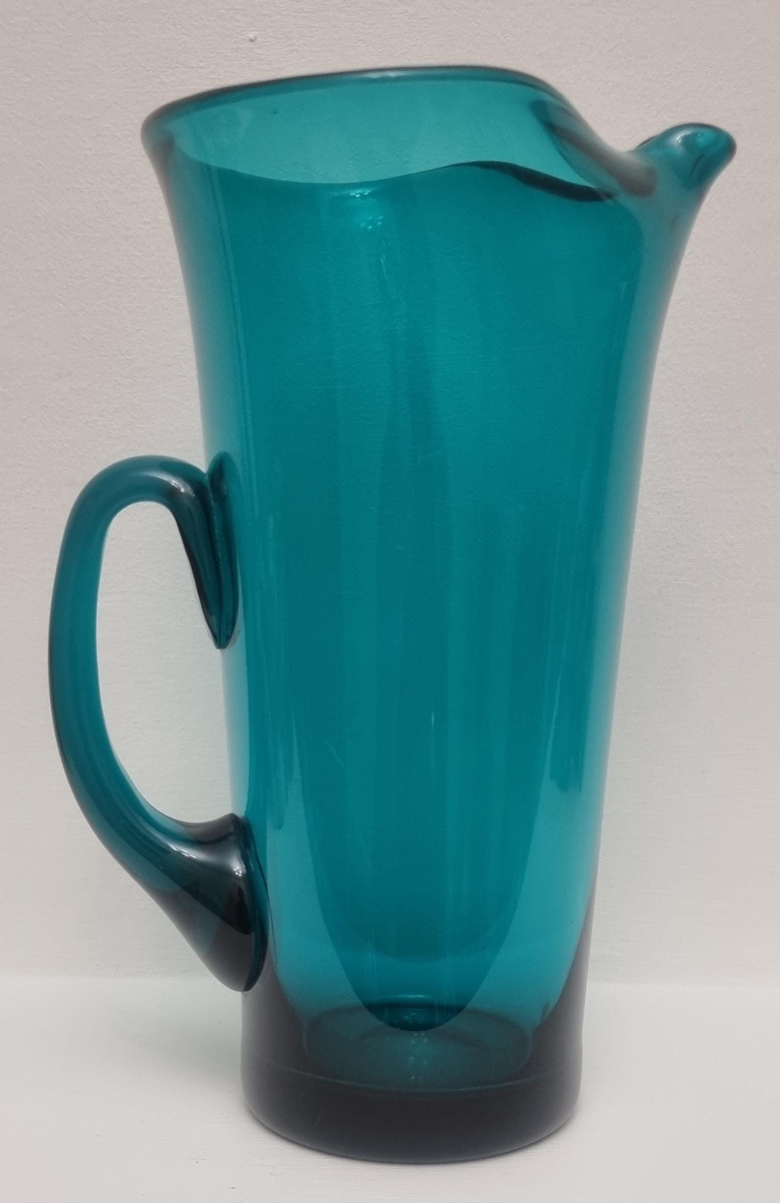 Striking MCM Danish Holmegaard glass pitcher, designed by Per Lutken in a stunning rich turquoise-green colour. This piece would look stunning, whether used in a bar, table setting or simply just displayed as an art object.