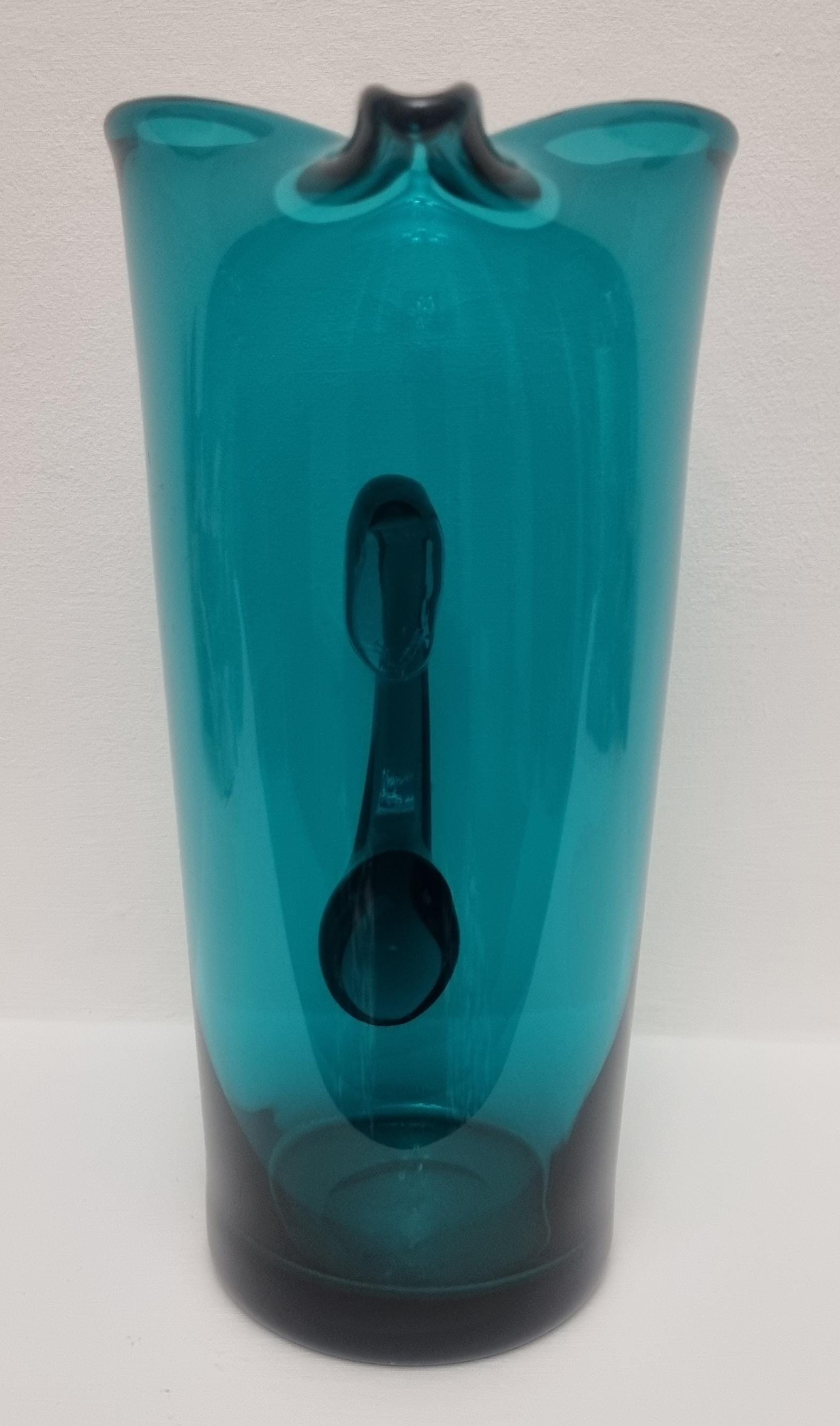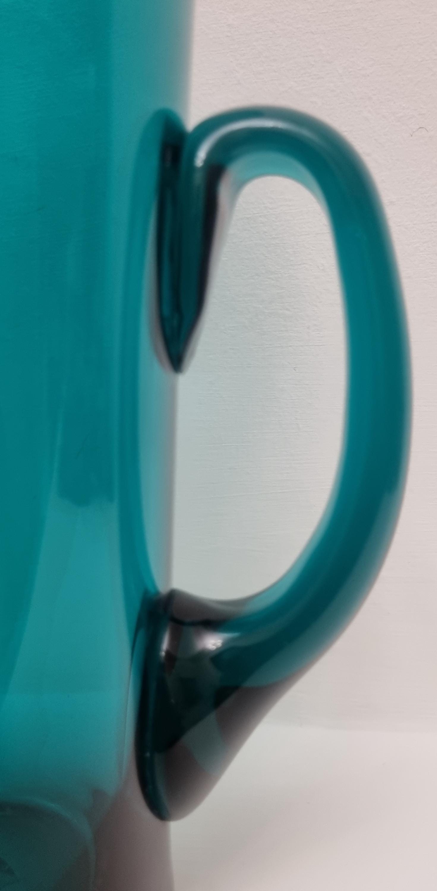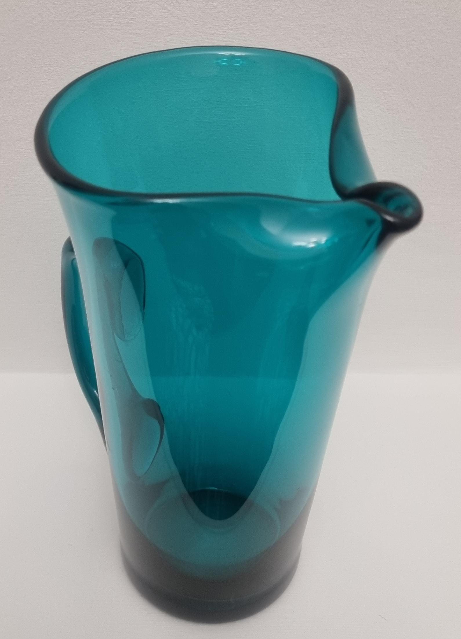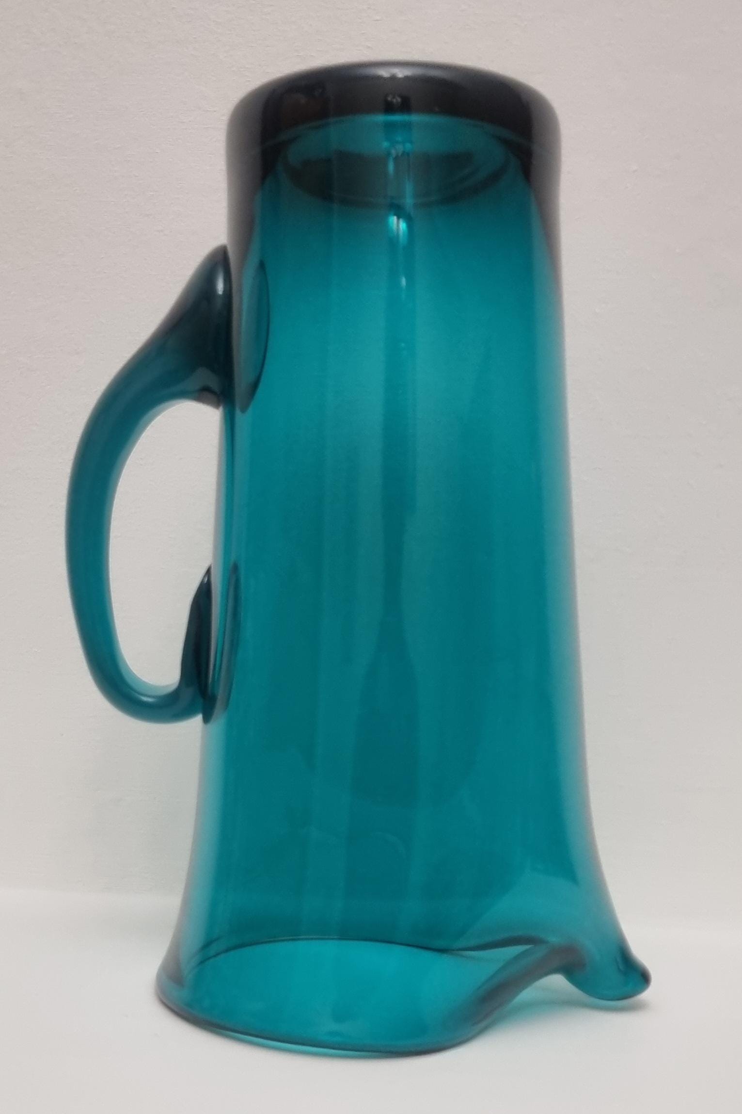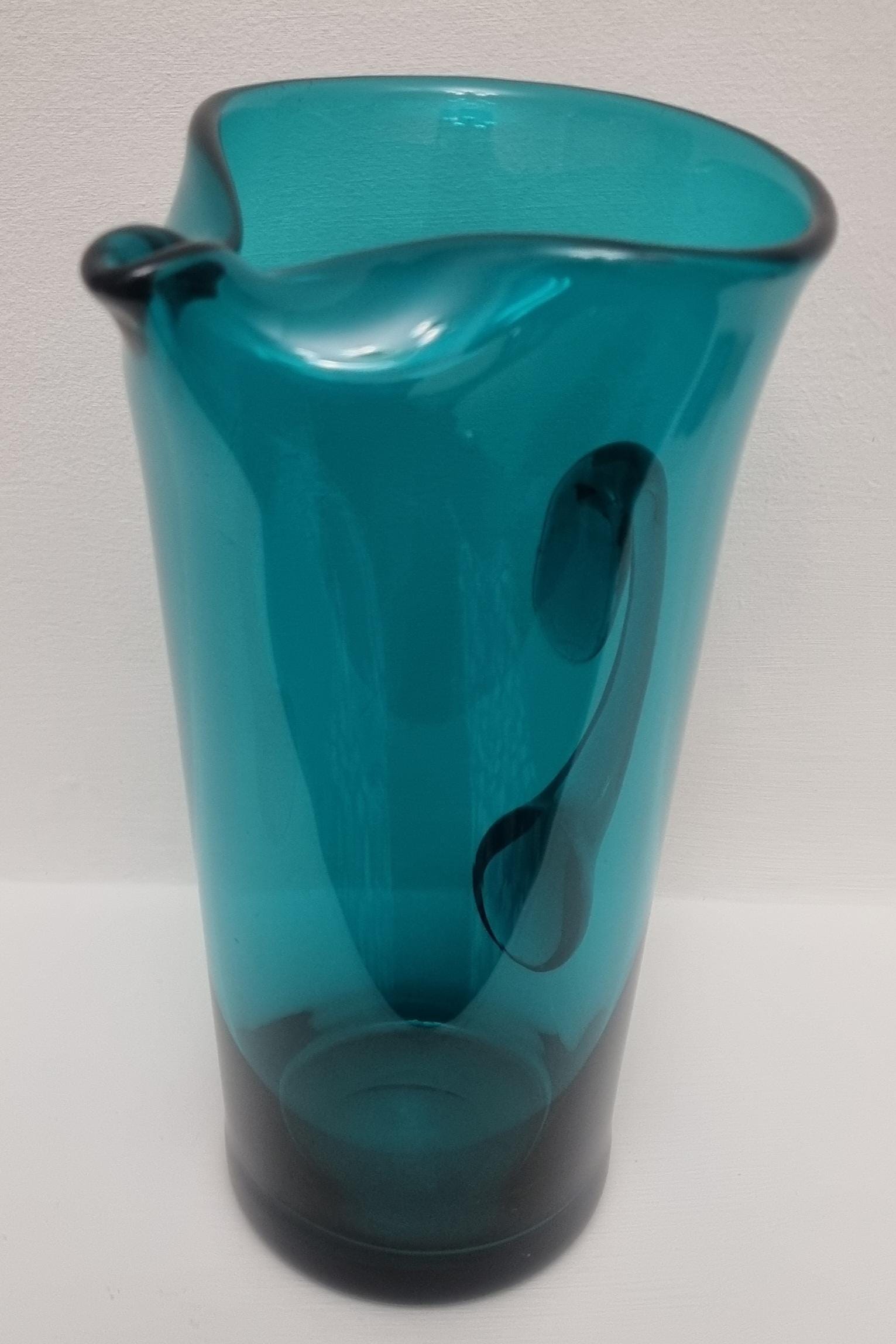 Striking MCM Danish Holmegaard glass pitcher, designed by Per Lutken in a stunning rich turquoise-green colour. This piece would look stunning, whether used in a bar, table setting or simply just displayed as an art object.