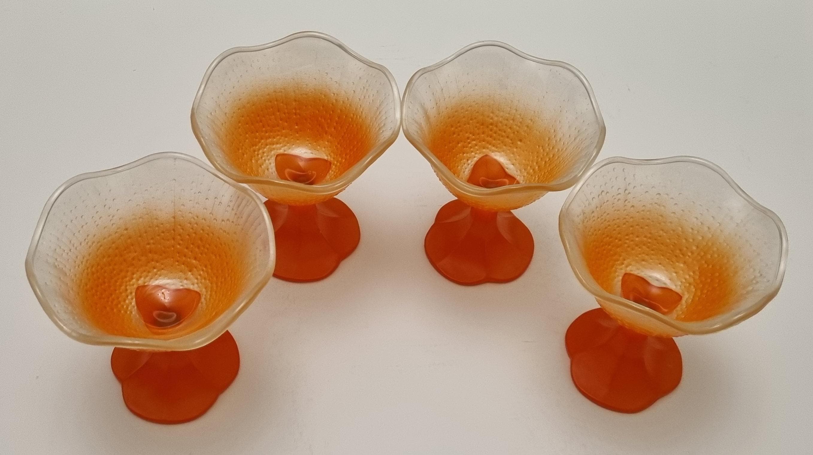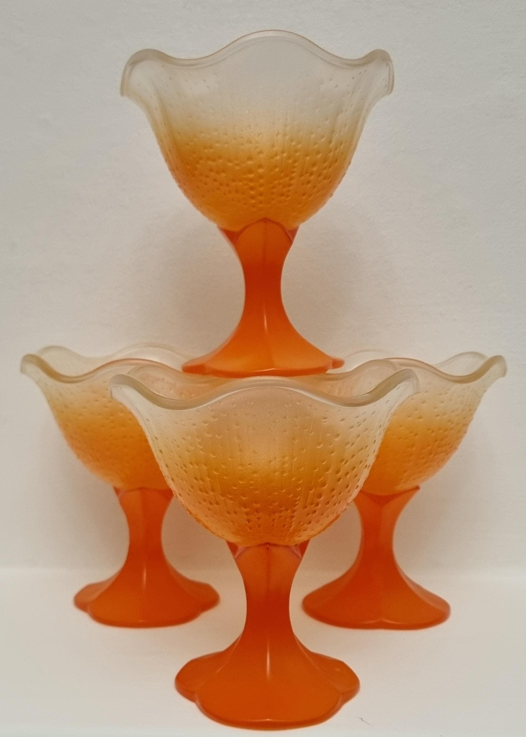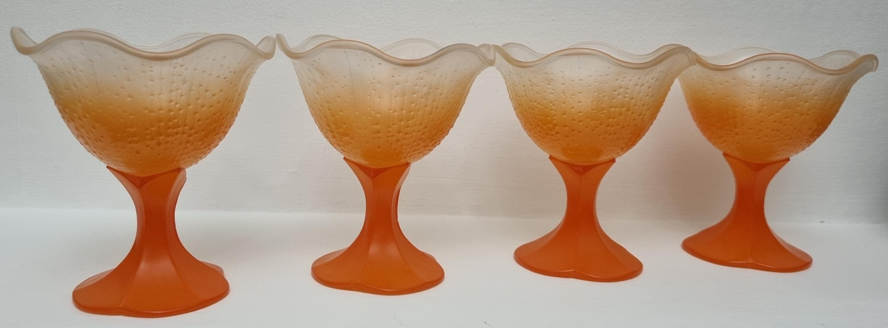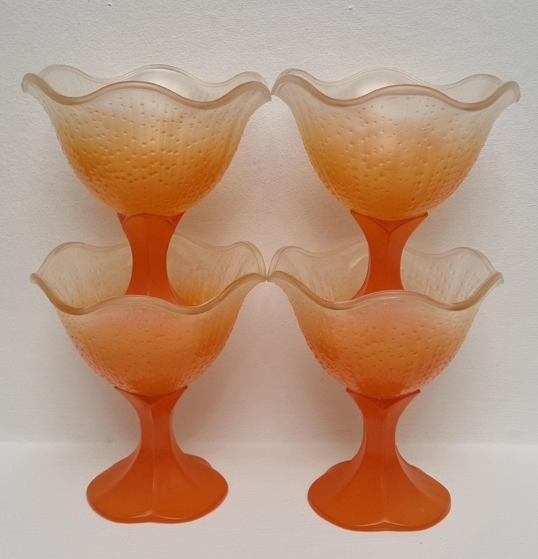 A set of 4 sundae/dessert frosted glass bowls. Made in France.