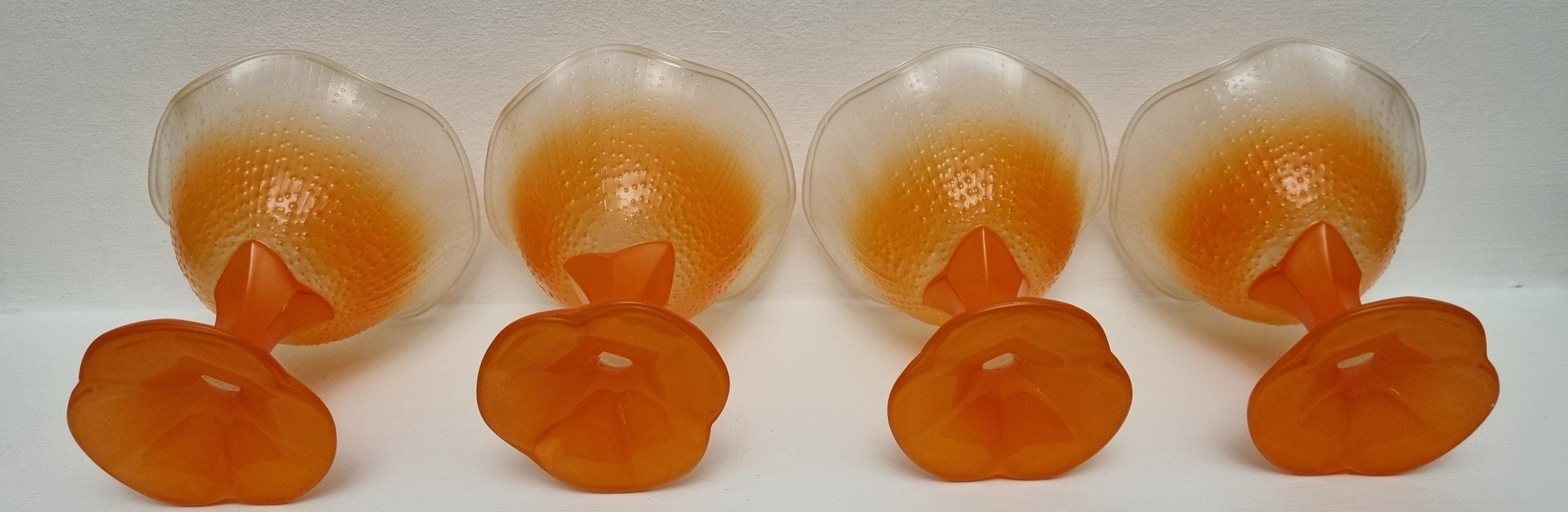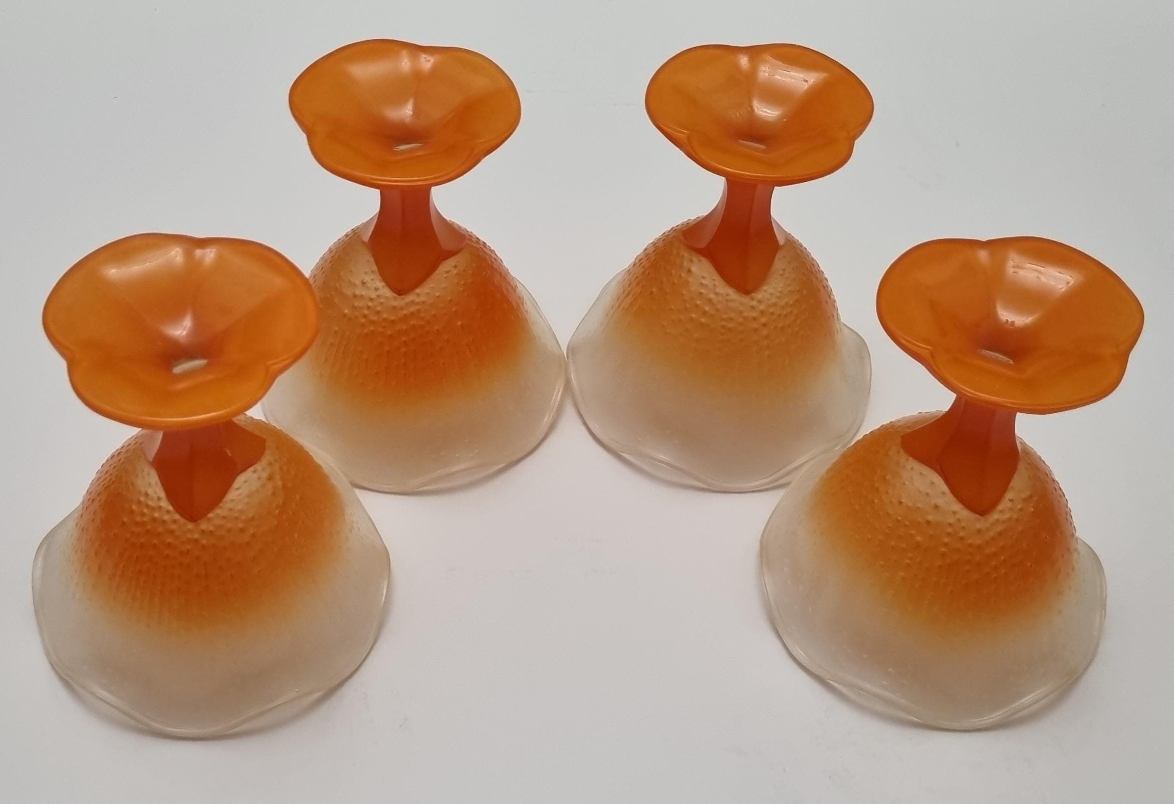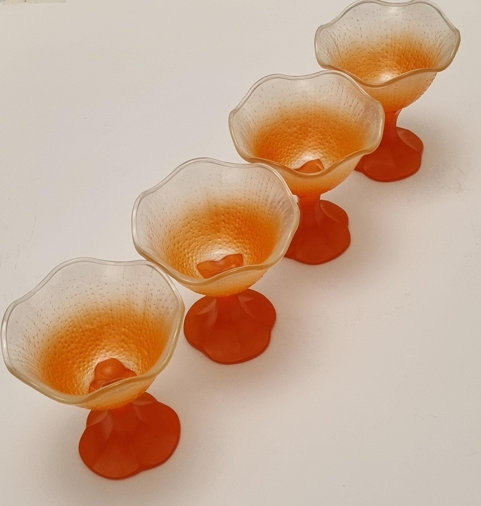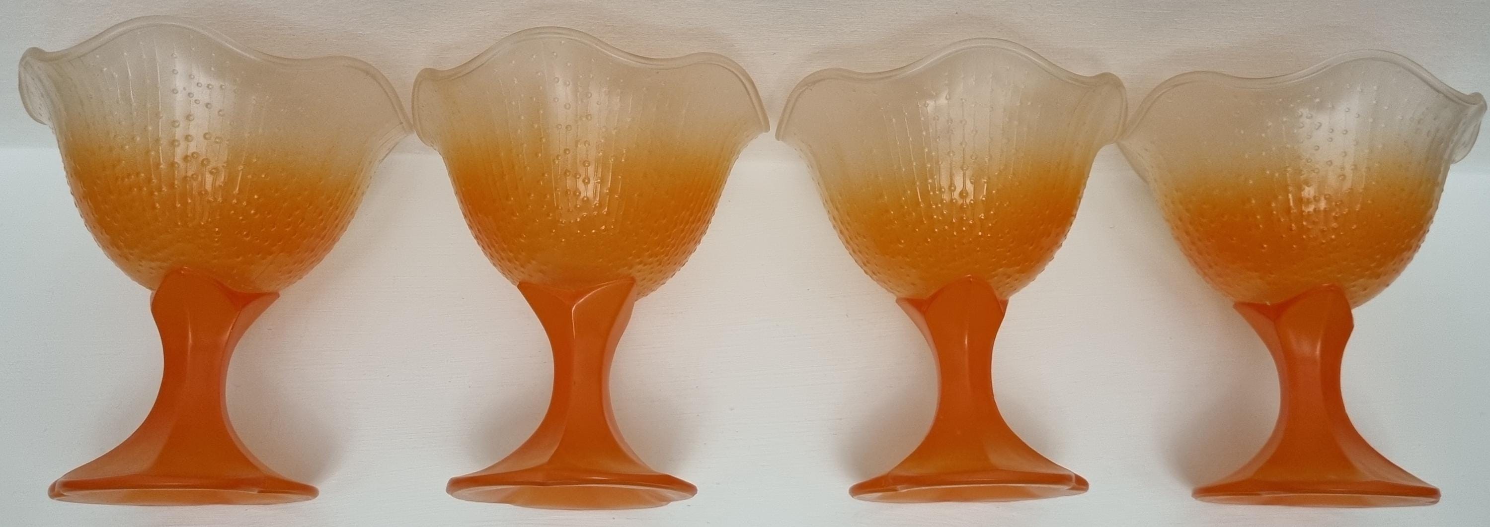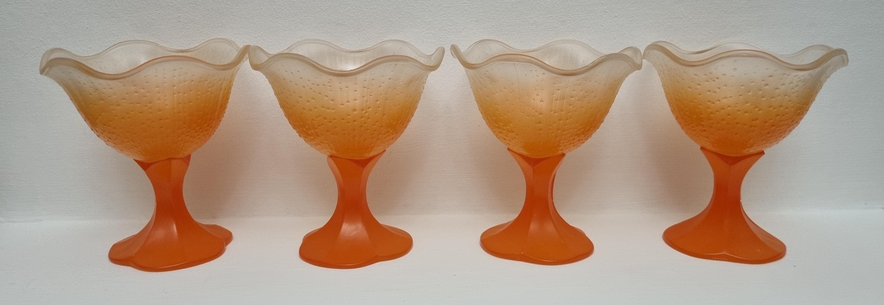 A set of 4 sundae/dessert frosted glass bowls. Made in France.