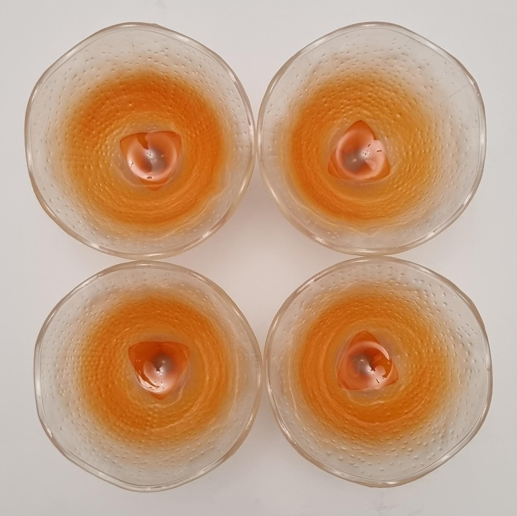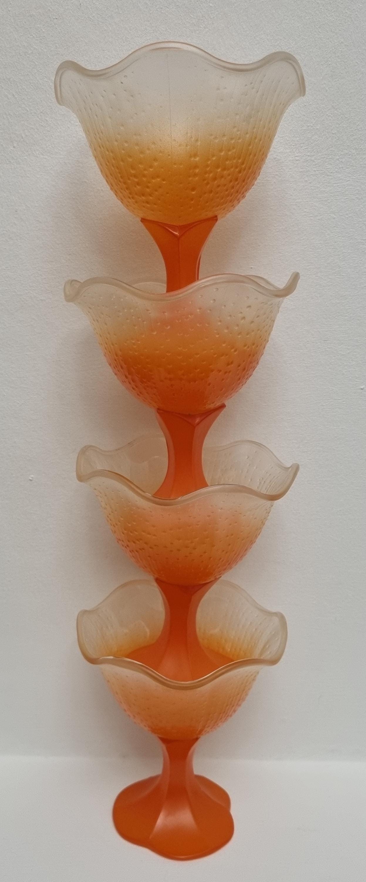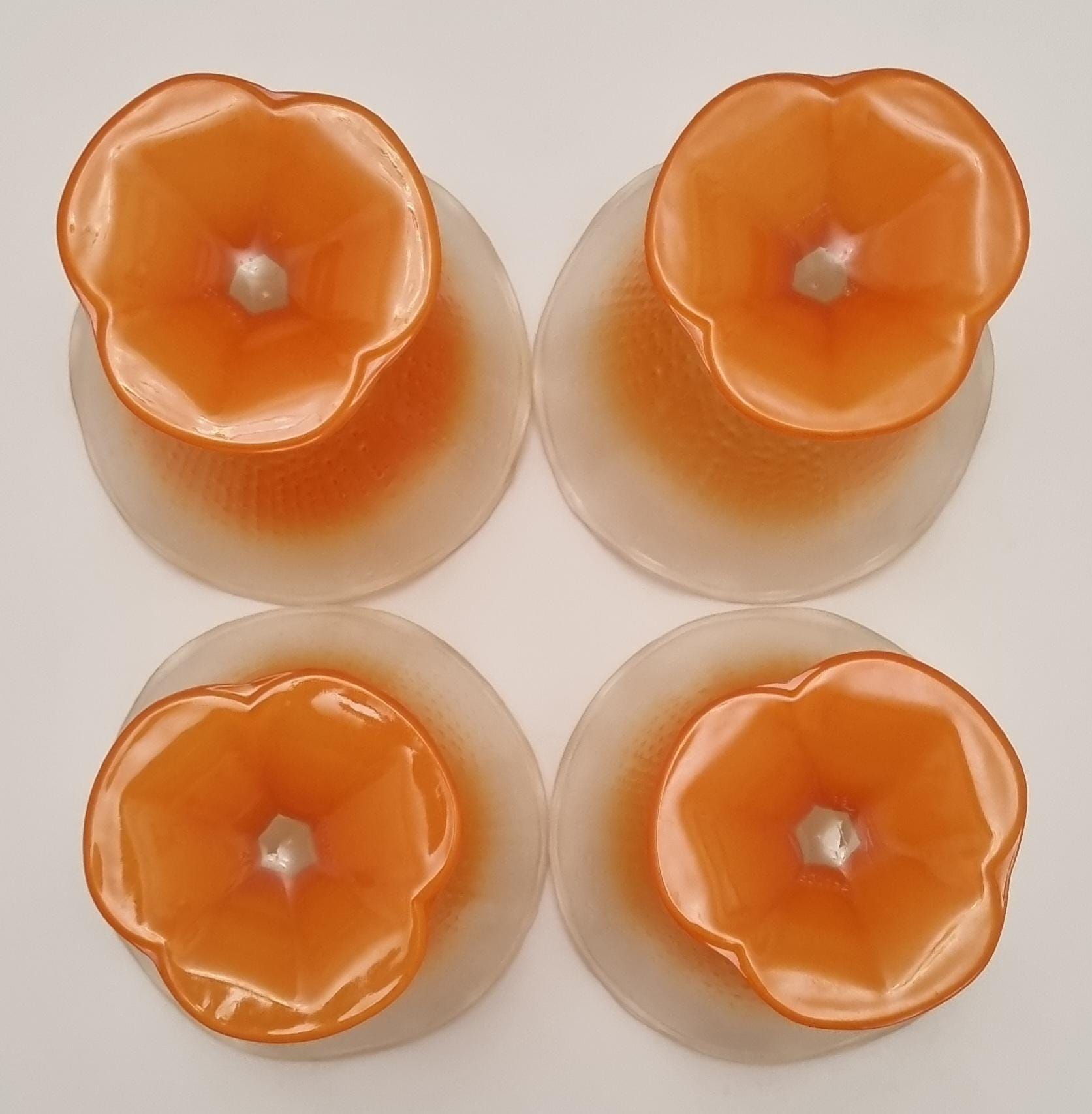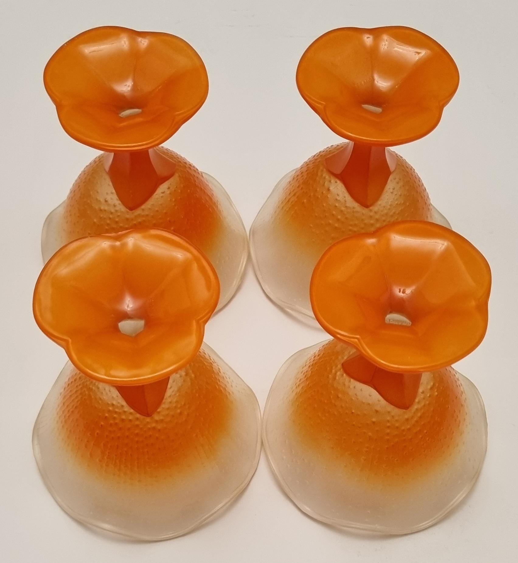 A set of 4 sundae/dessert frosted glass bowls. Made in France.